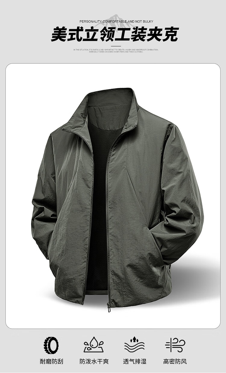JEEP SPIRIT轻商务夹克2025秋季新品耐磨休闲百搭立领外套8988 黑色 XL