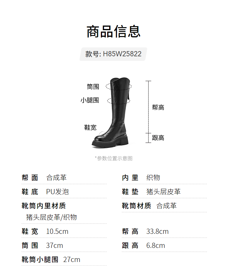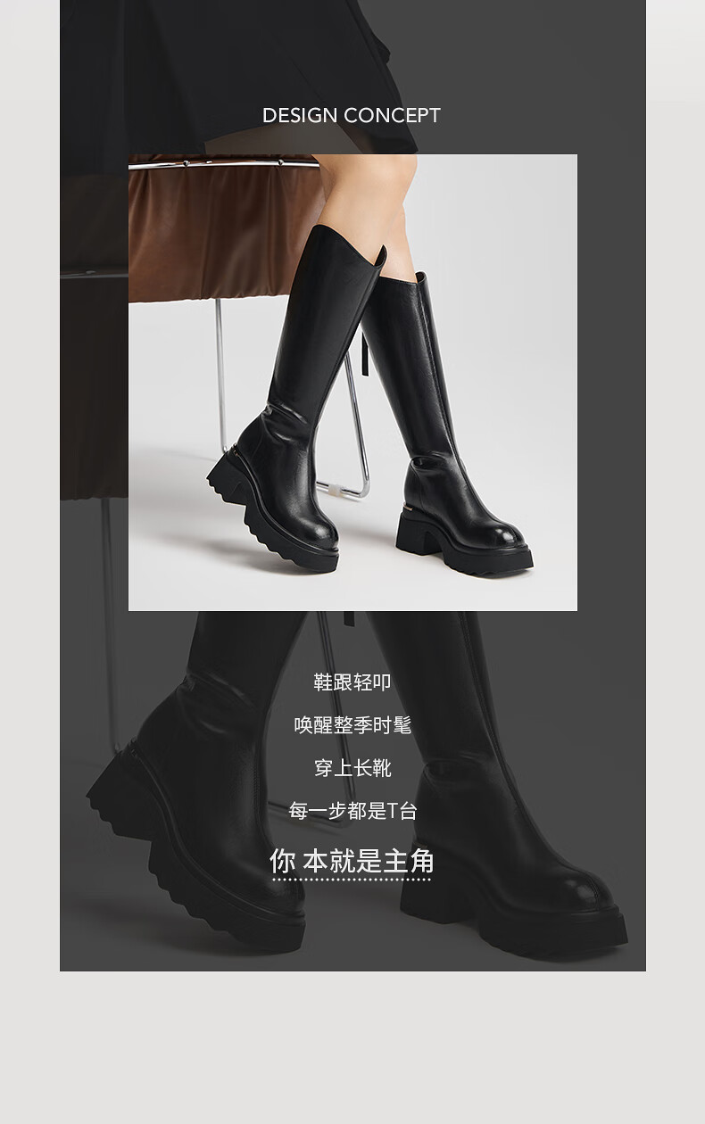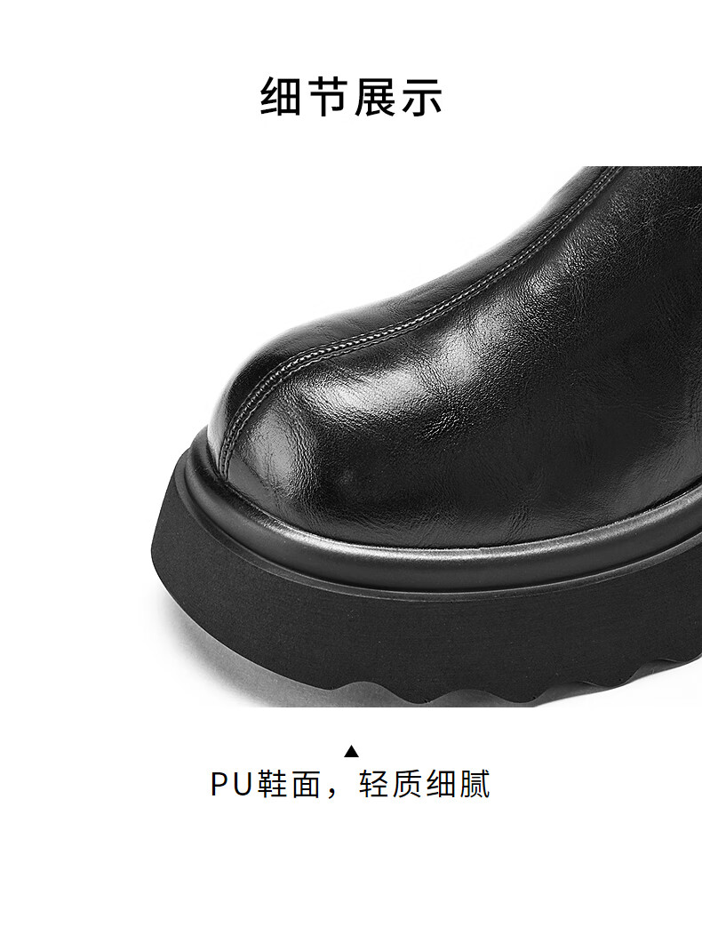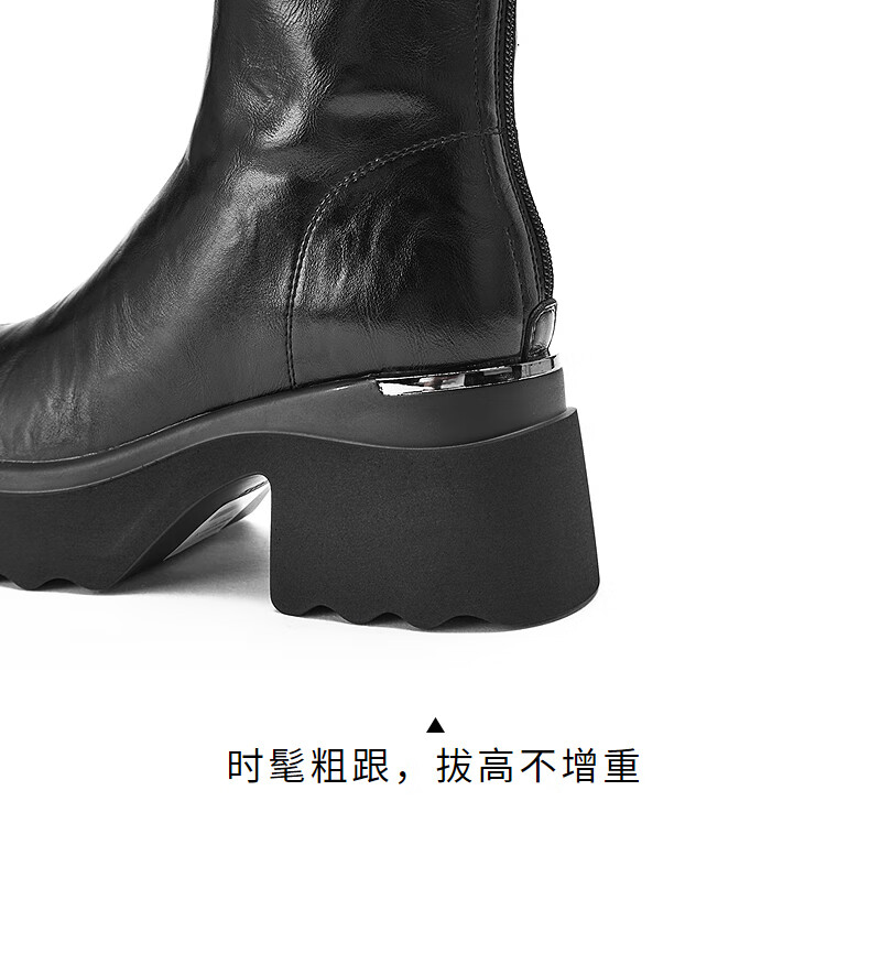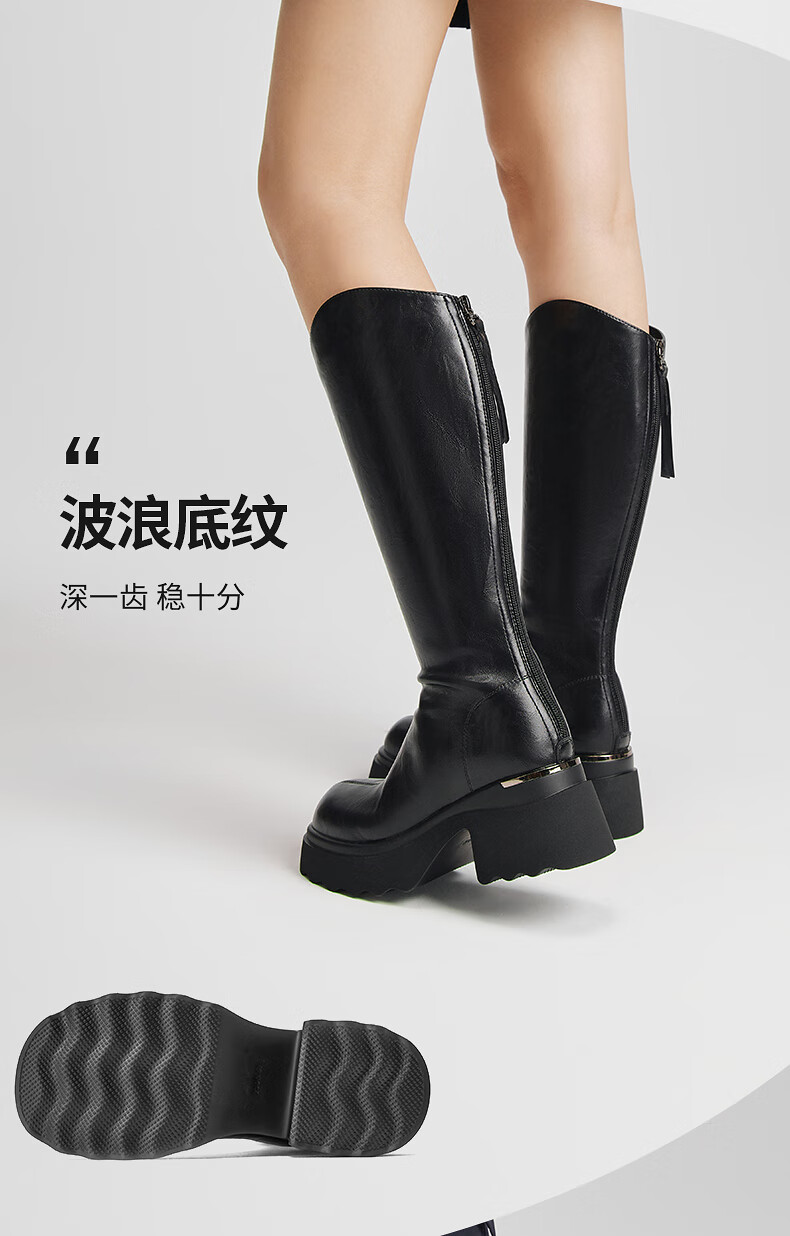 热风厚底长筒靴女2025年冬季新款增高时装靴子复古V口骑士靴女鞋 01黑色 34