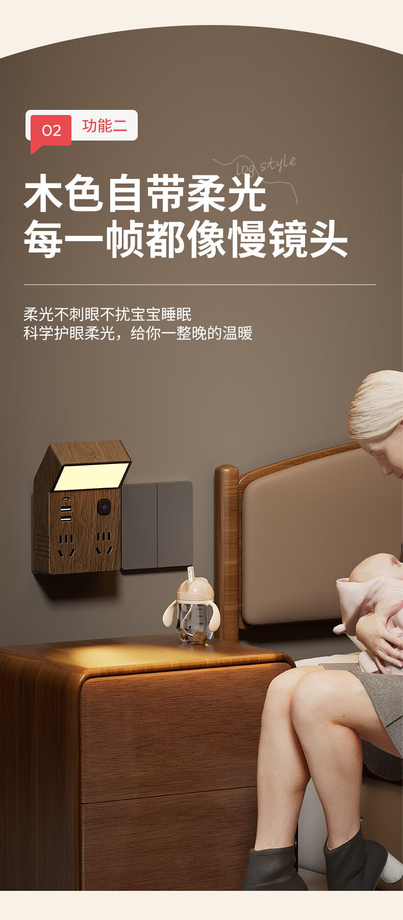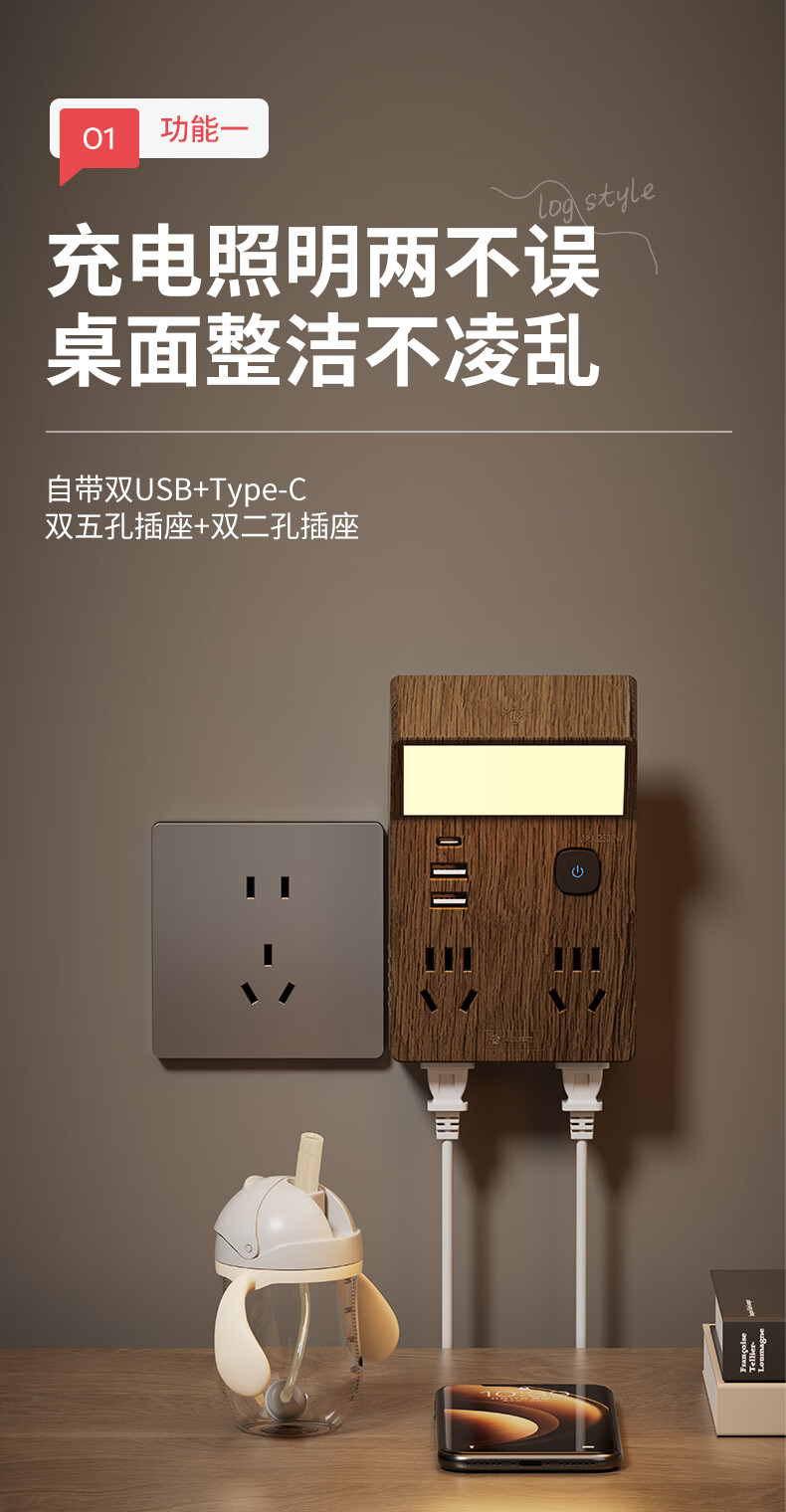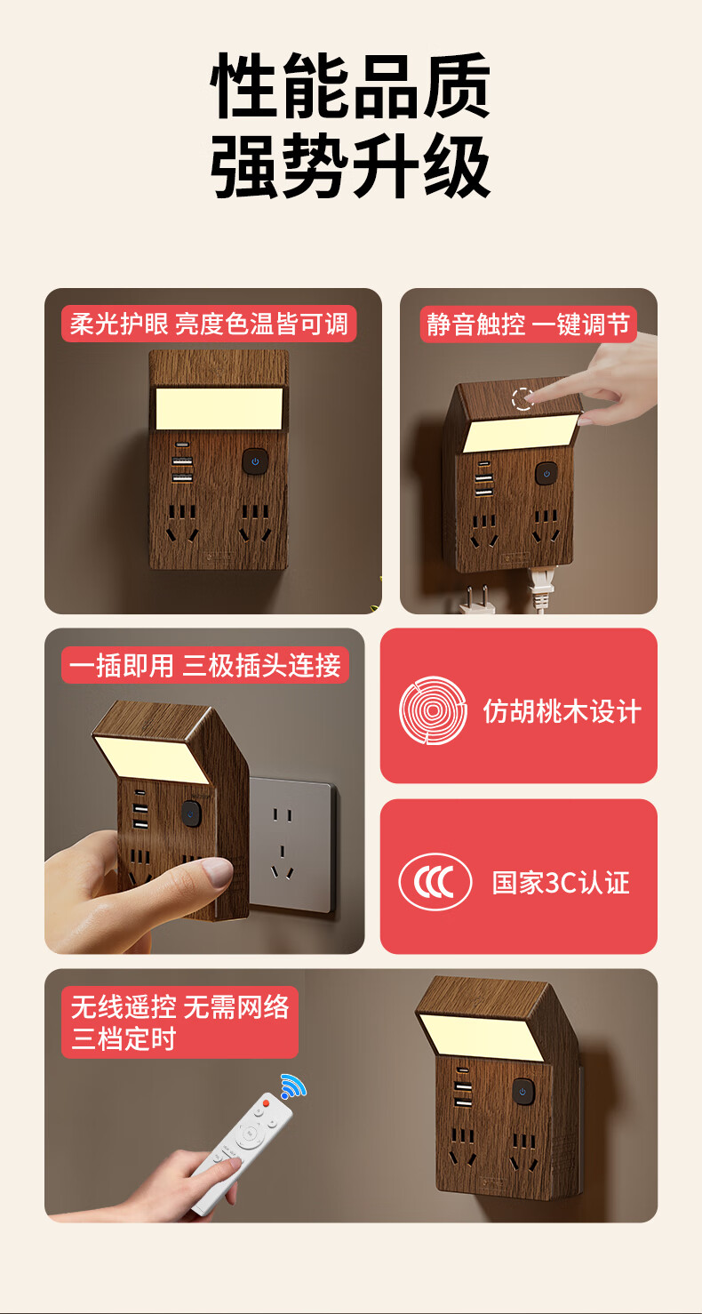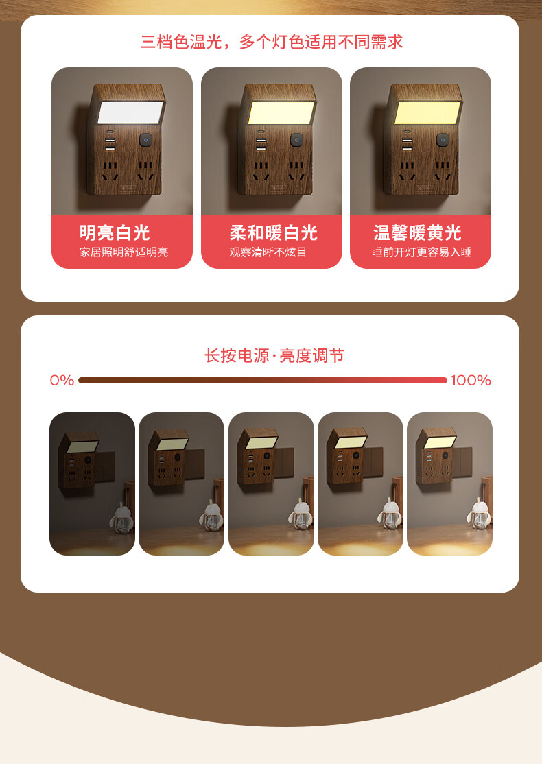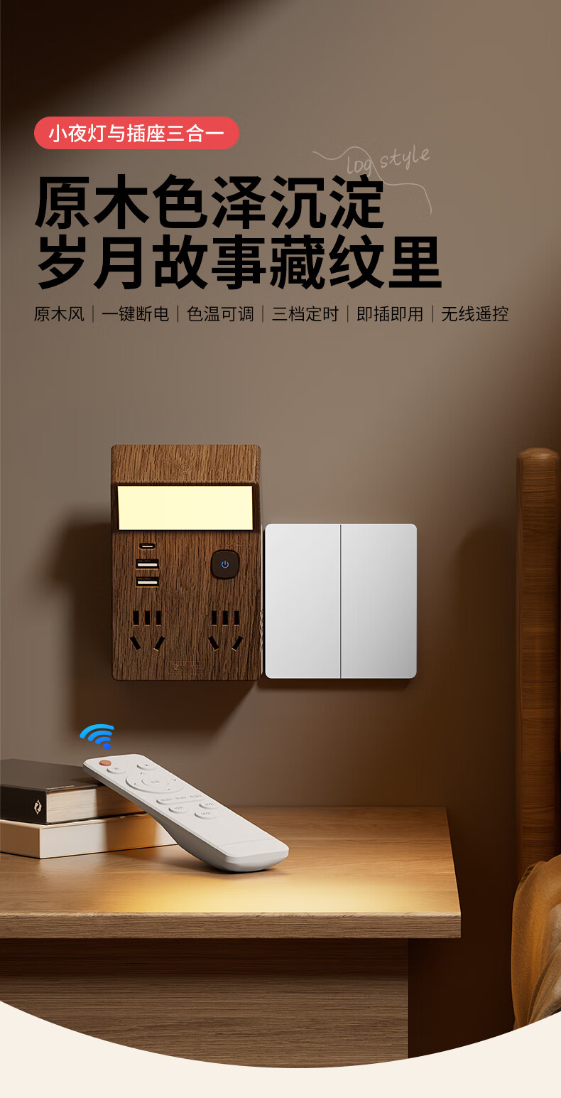 国际电工多功能插座转换器插座86型直插USB带夜灯三色变光可定时拓展插座 一转四【经典款】