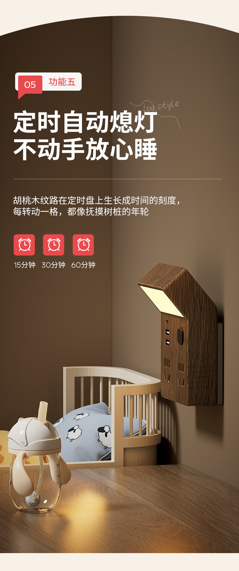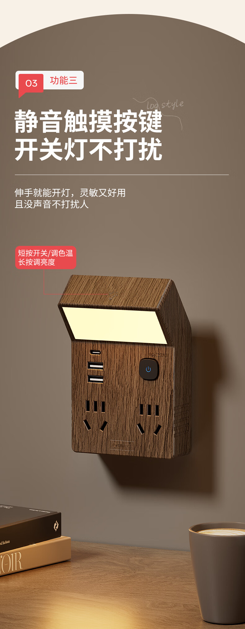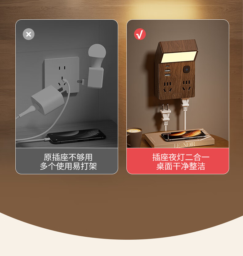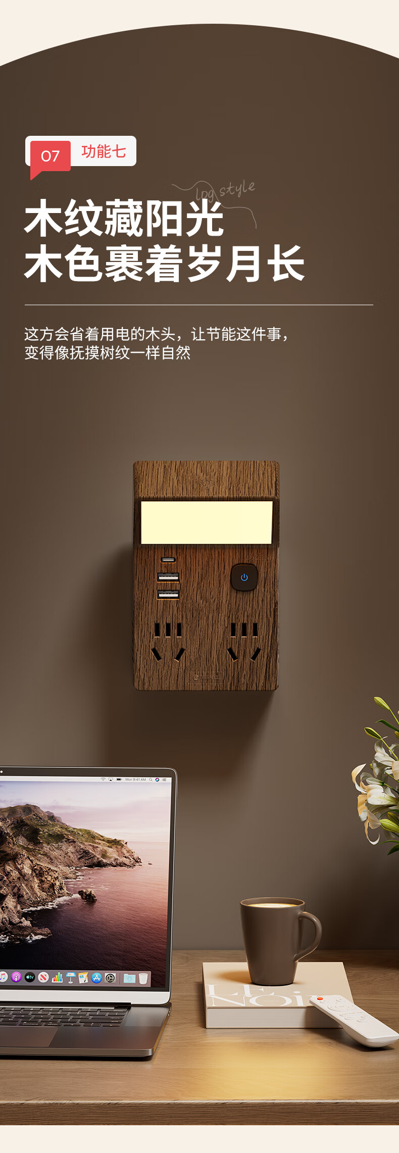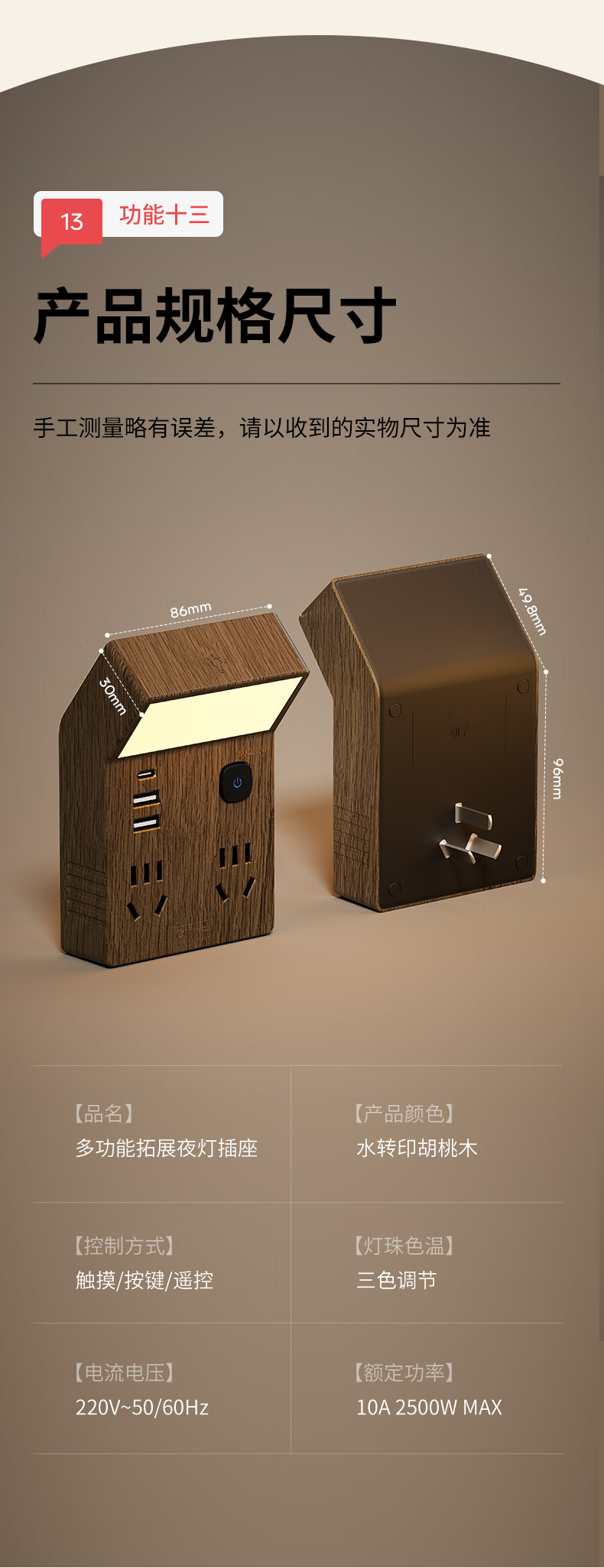 国际电工多功能插座转换器插座86型直插USB带夜灯三色变光可定时拓展插座 一转四【经典款】