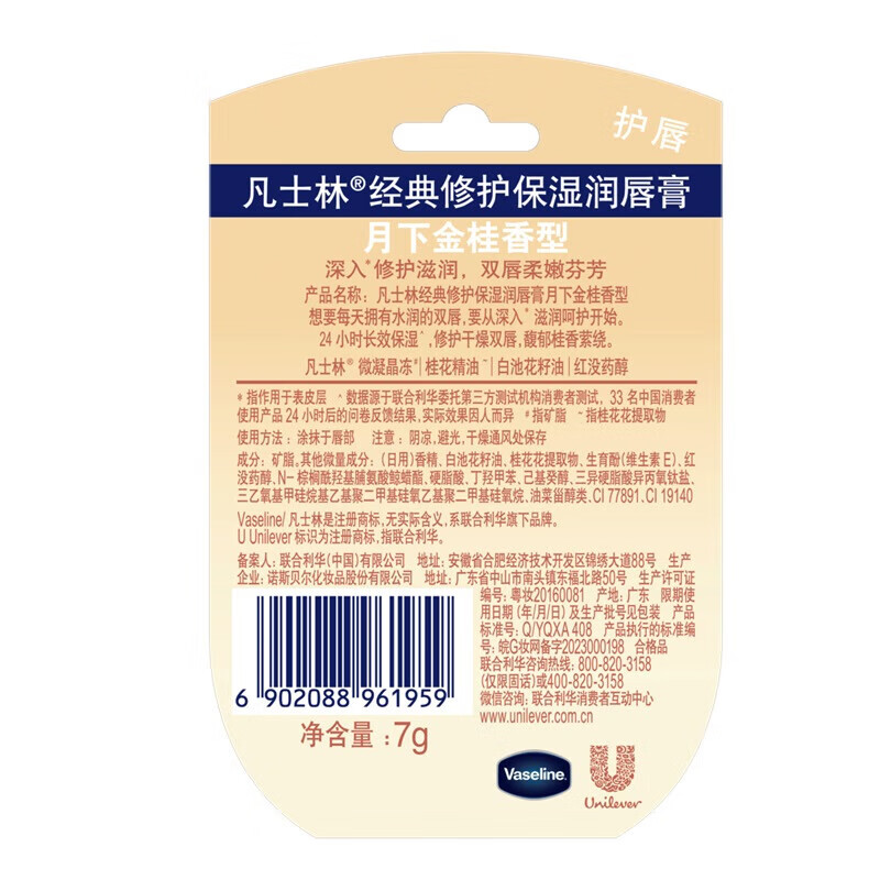 凡士林经典修护保湿润唇膏月下金桂香型7g【临期清仓】