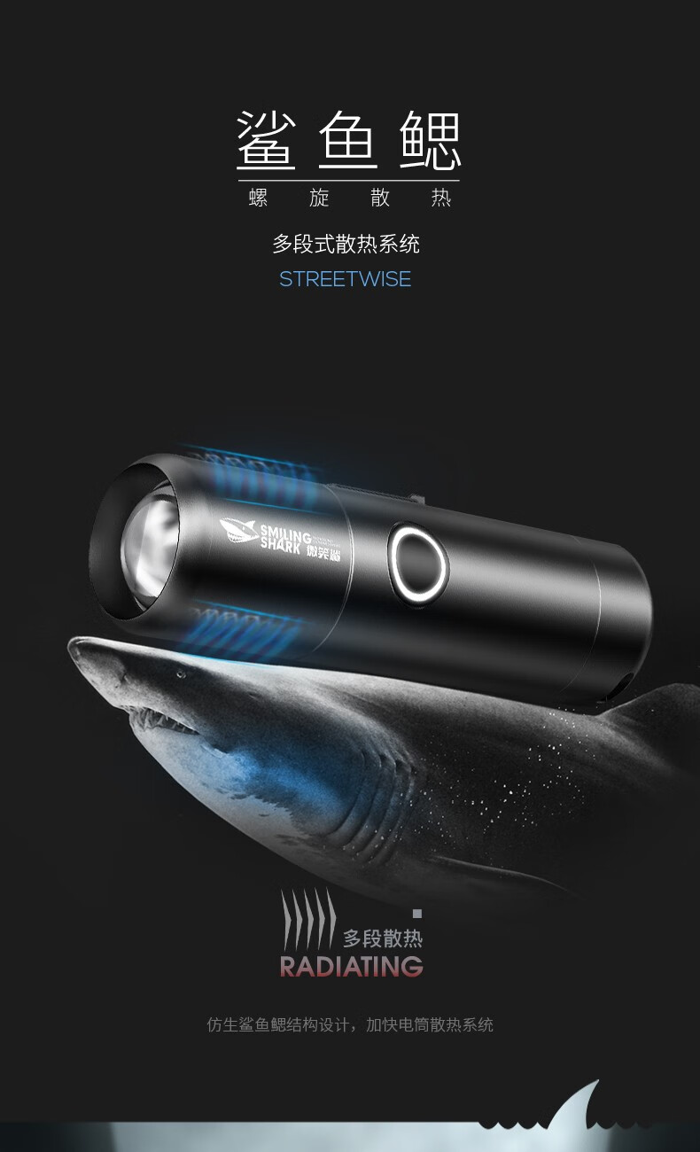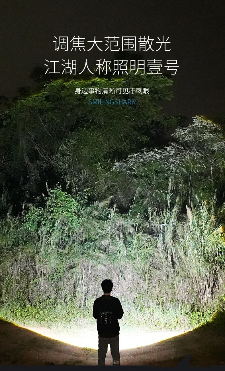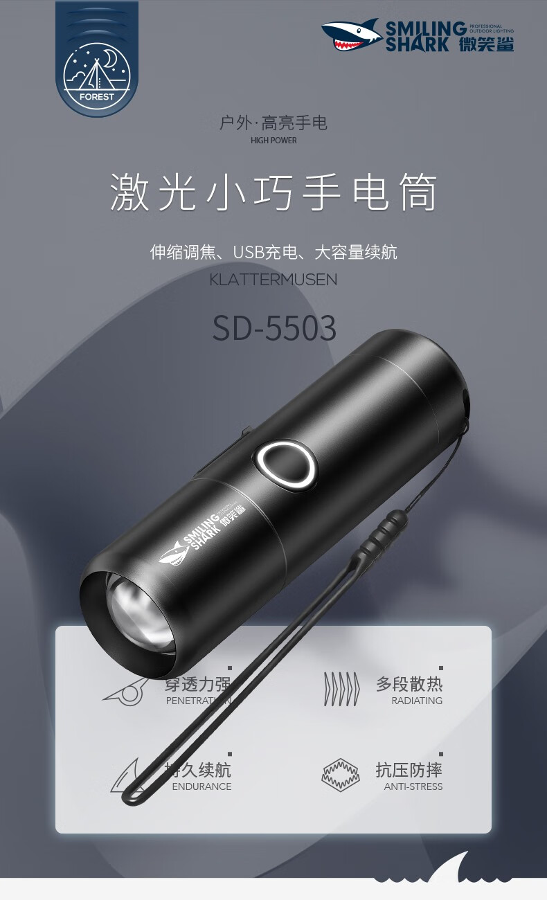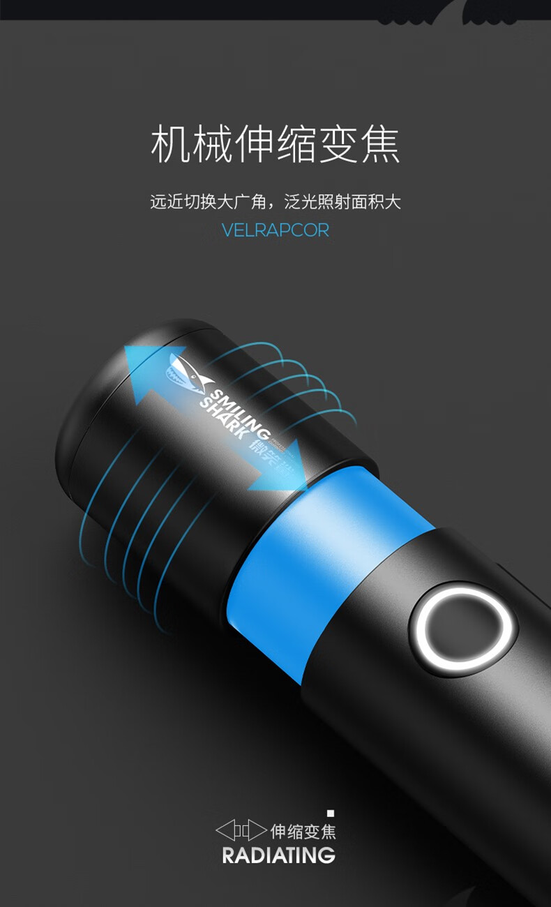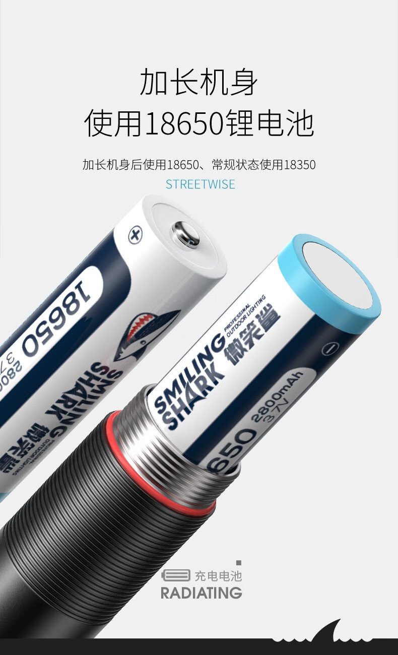 微笑鲨迷你手电筒强光可充电户外远射超亮家用小型便携式多功能激光手电 可拆卸加长款【续航4-6H】
