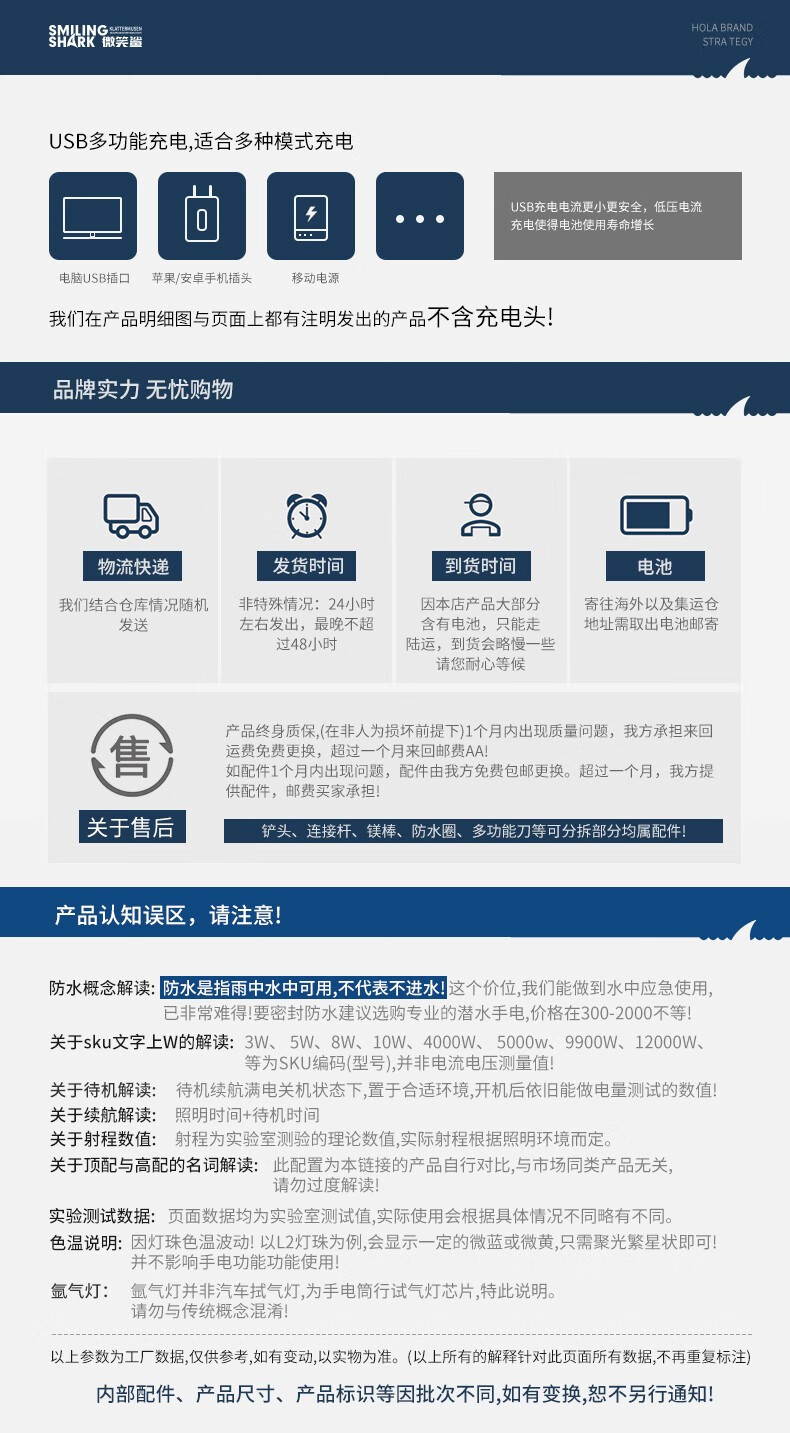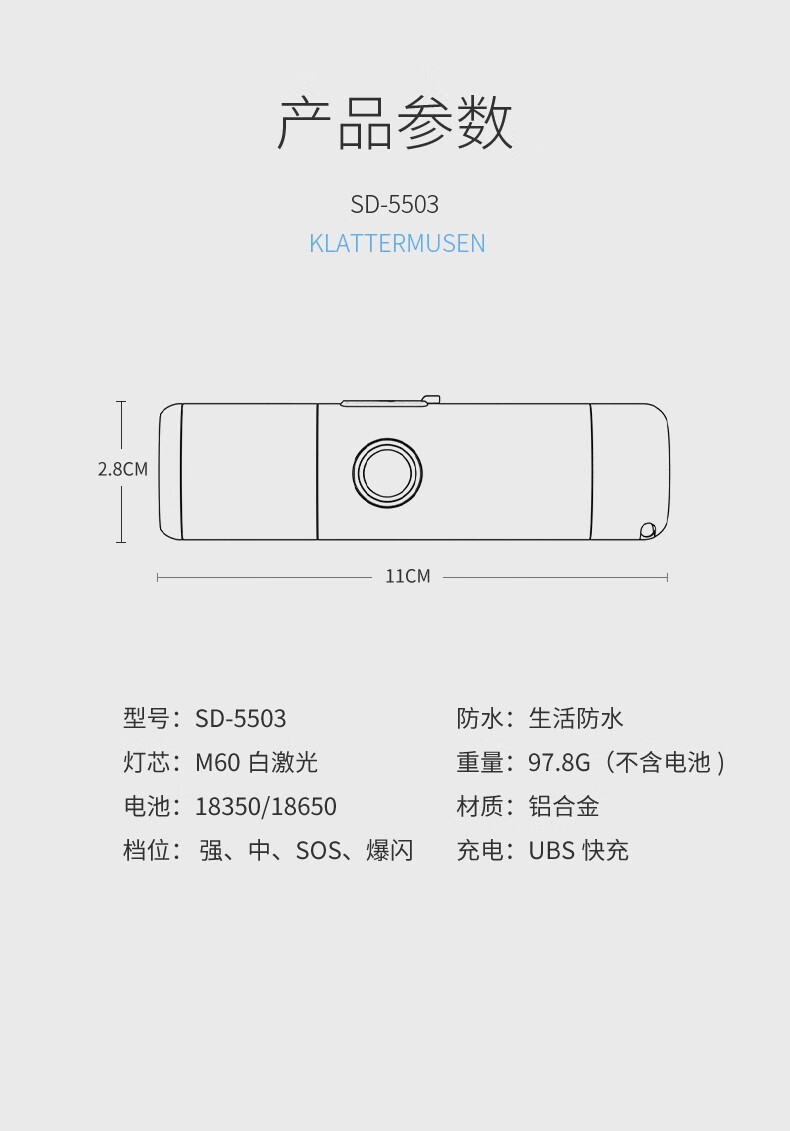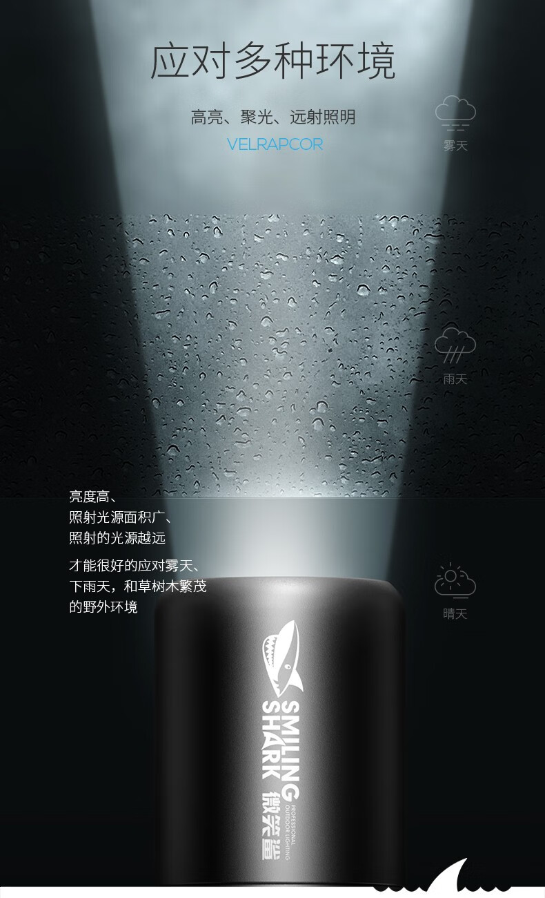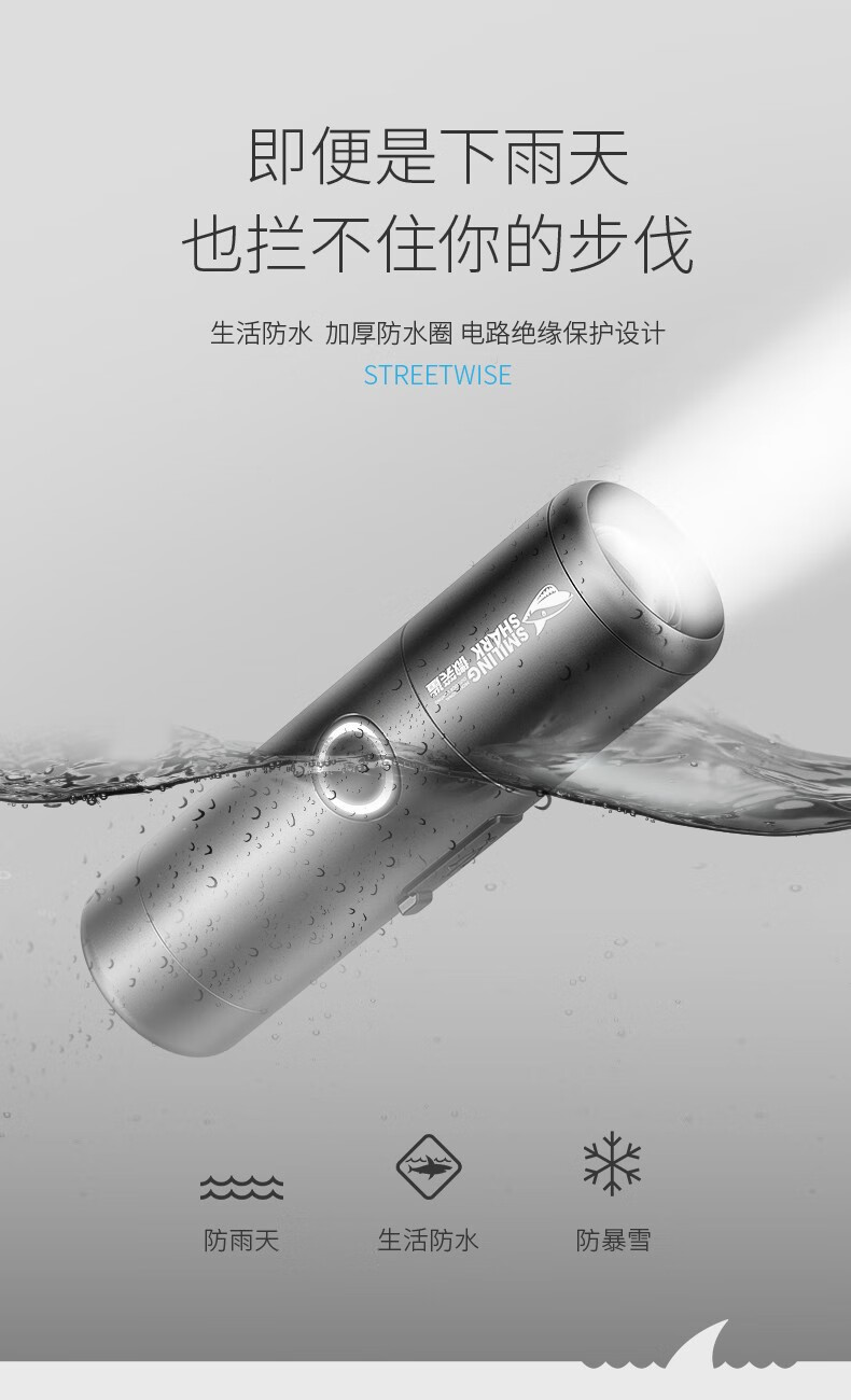 微笑鲨迷你手电筒强光可充电户外远射超亮家用小型便携式多功能激光手电 可拆卸加长款【续航4-6H】