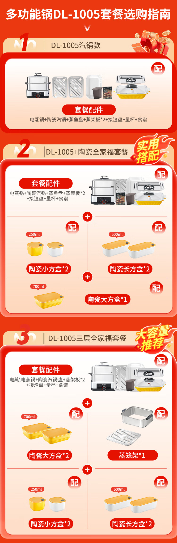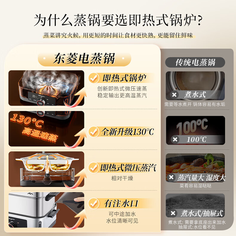 东菱(Donlim)【国家补贴】电蒸锅炖蒸煮一体多功能锅双层12L大容量不锈钢陶瓷汽锅鸡高温速蒸预约保温DL-1005