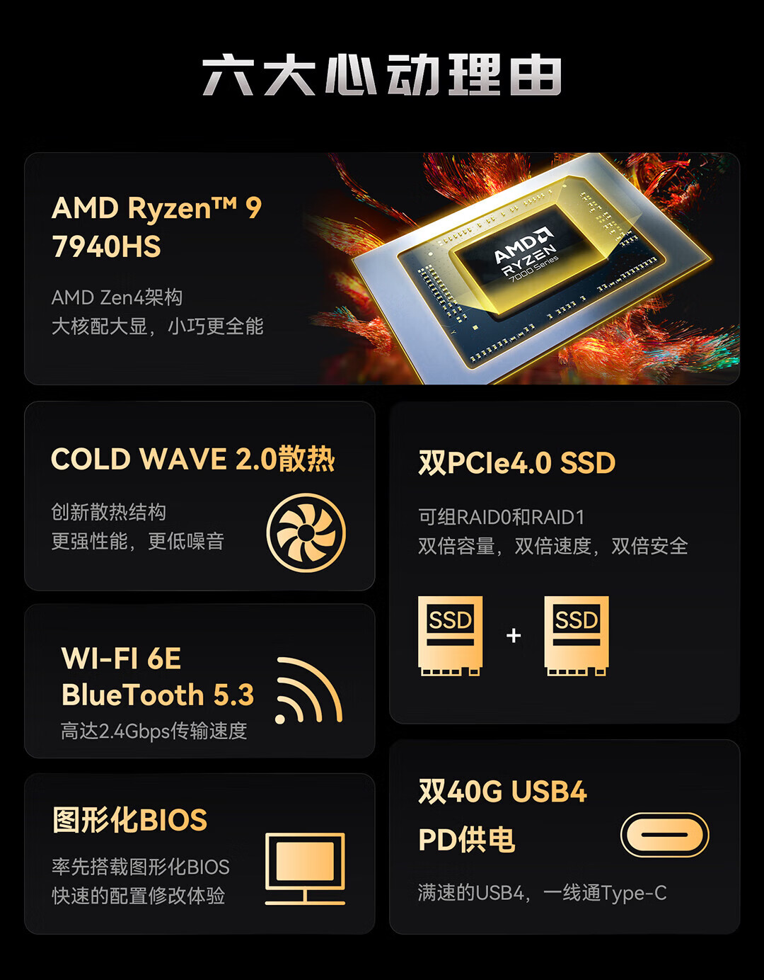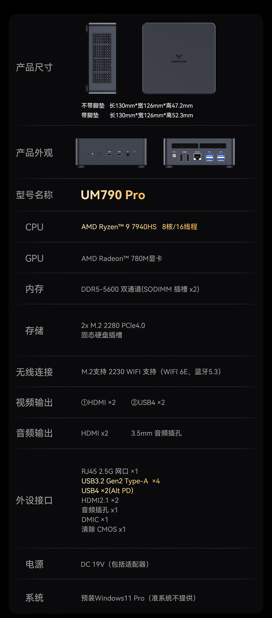 铭凡UM790PRO国家补贴20%锐龙R9-7940HS迷你主机高性能mini主机迷你电脑台式机游戏办公小主机