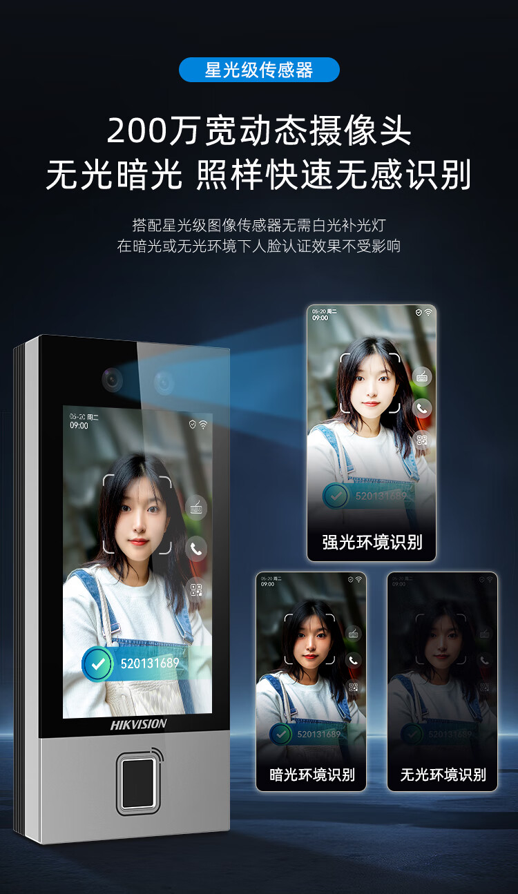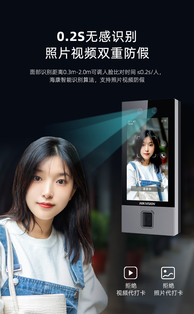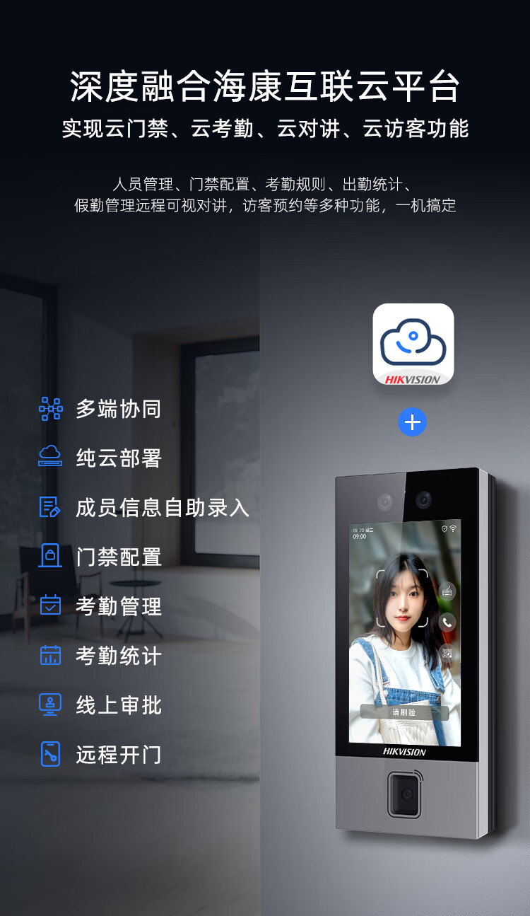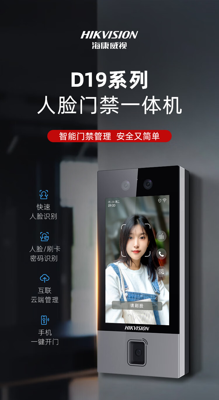 HIKVISION海康威视人脸识别门禁系统一体机企业办公上班刷脸考勤指纹打卡机D19 PLUS