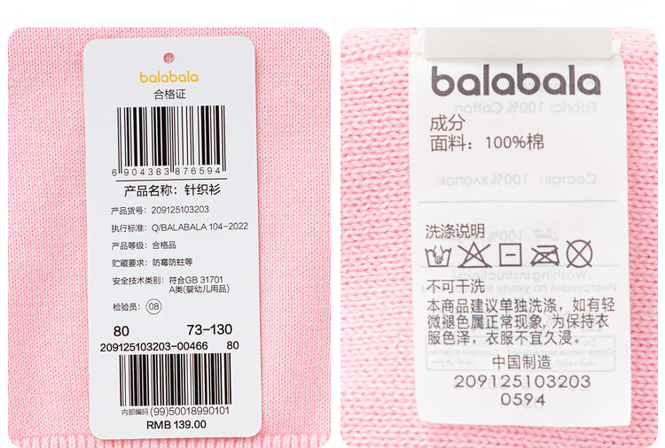 巴拉巴拉童装婴儿针织衫儿童薄开衫宝宝毛衣秋装2025春装209125103203