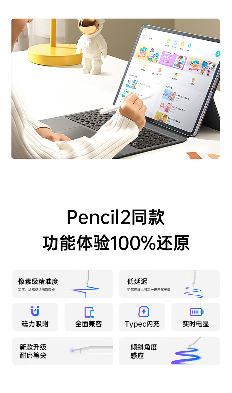 犀狼适用vivo平板触控笔Pencil2s/3电容笔防误触pad5pro/3pro/2pro/Pad3/2/SE/air磁吸手写笔iqoo通用 【升级性能】丝滑不断触|灵敏度提升999% 2025电容笔顶配新款|免费试用送运费险