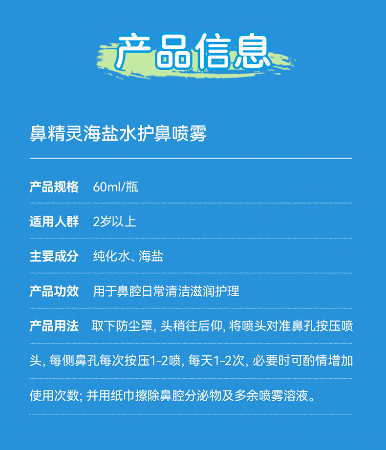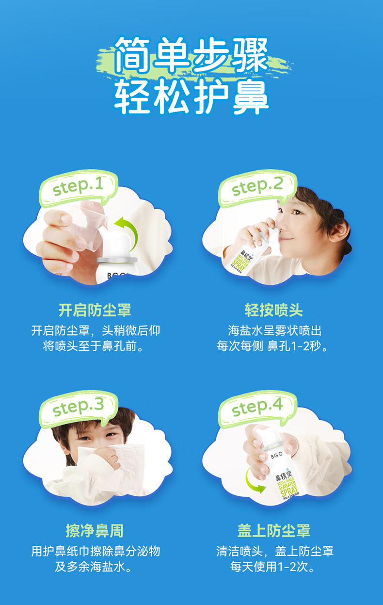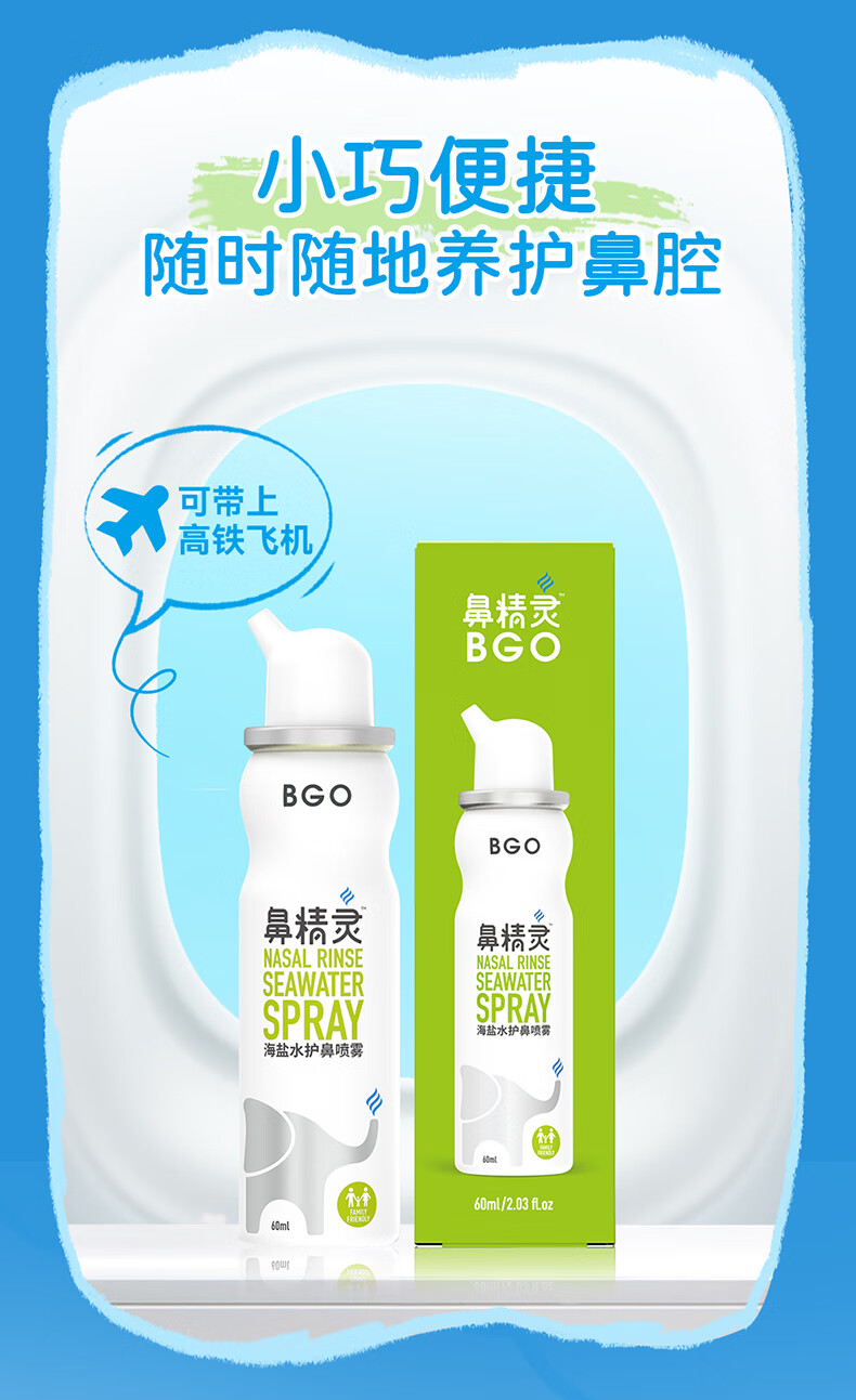 鼻精灵BGO60ml海盐水洗鼻喷雾鼻喷鼻腔滋润儿童成人
