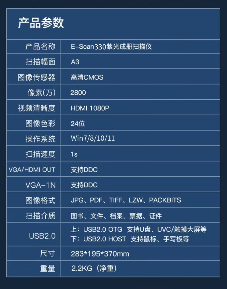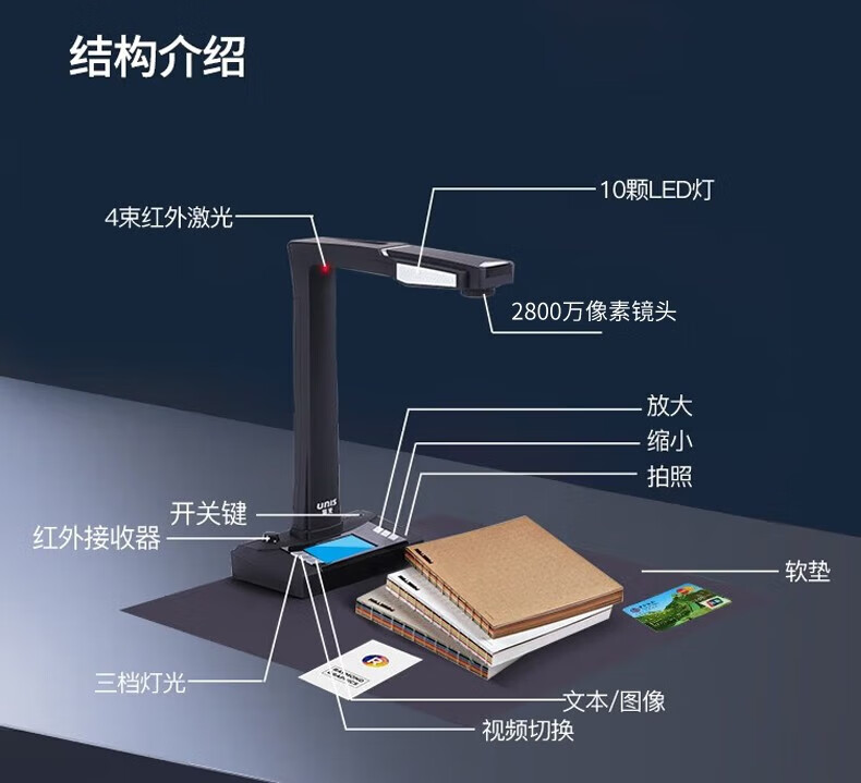 紫光(UNIS)E-Scan330 高拍仪 书籍档案合同免拆扫描 家庭企业成册扫描仪