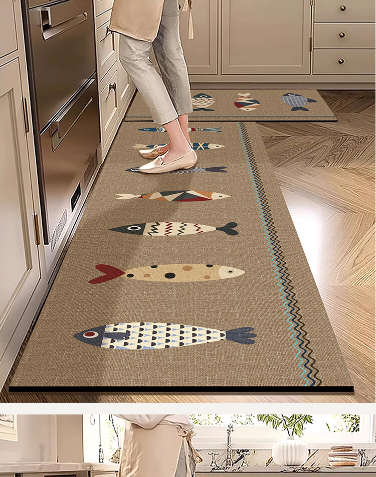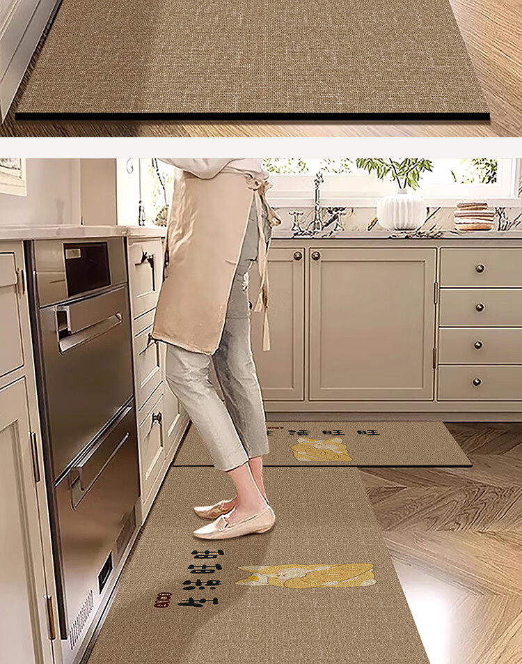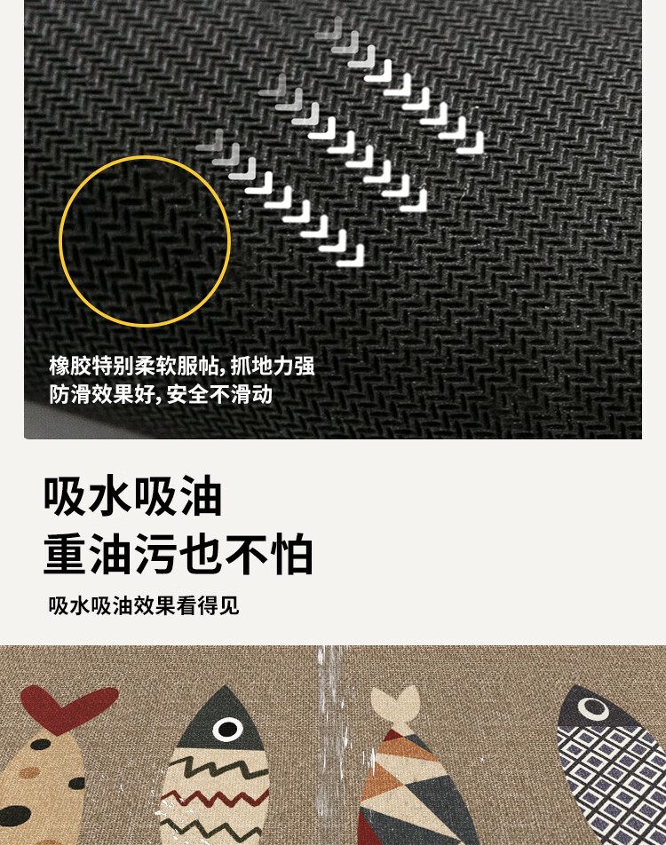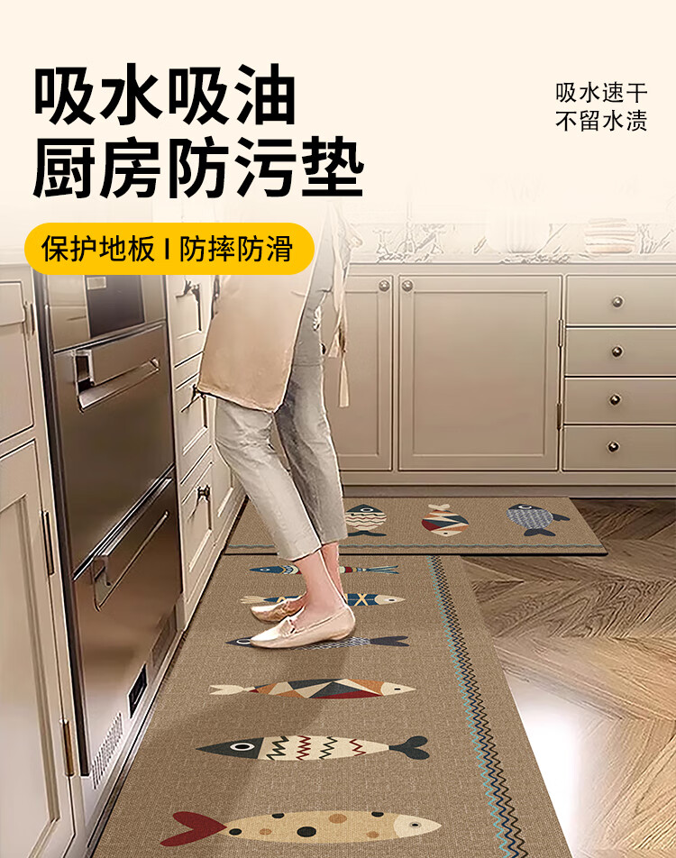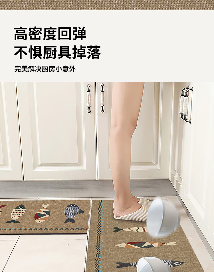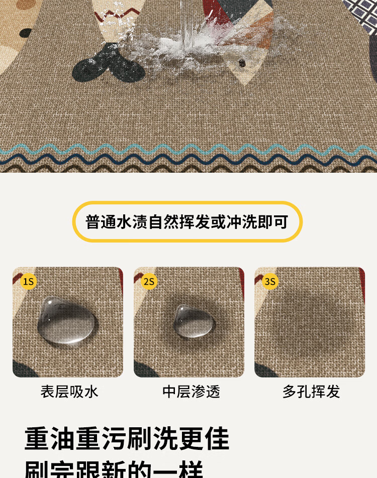 布迪思厨房地垫吸水吸油高弹防摔防滑可裁剪浴室抗污耐脏脚垫可冲洗垫子 小花时 50*80CM+50*150CM【两件装】