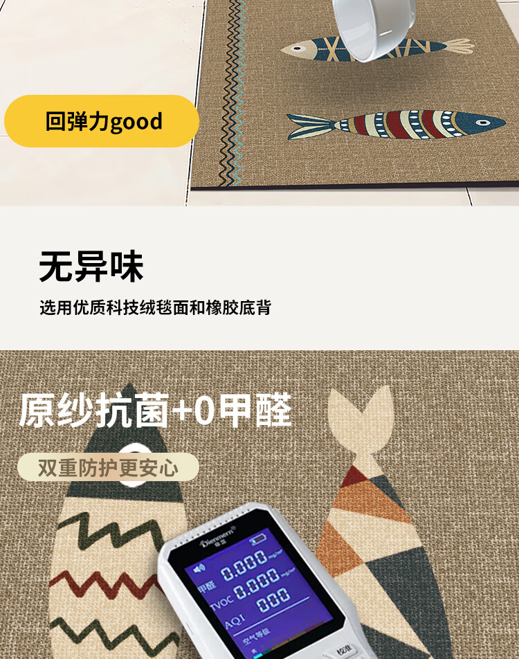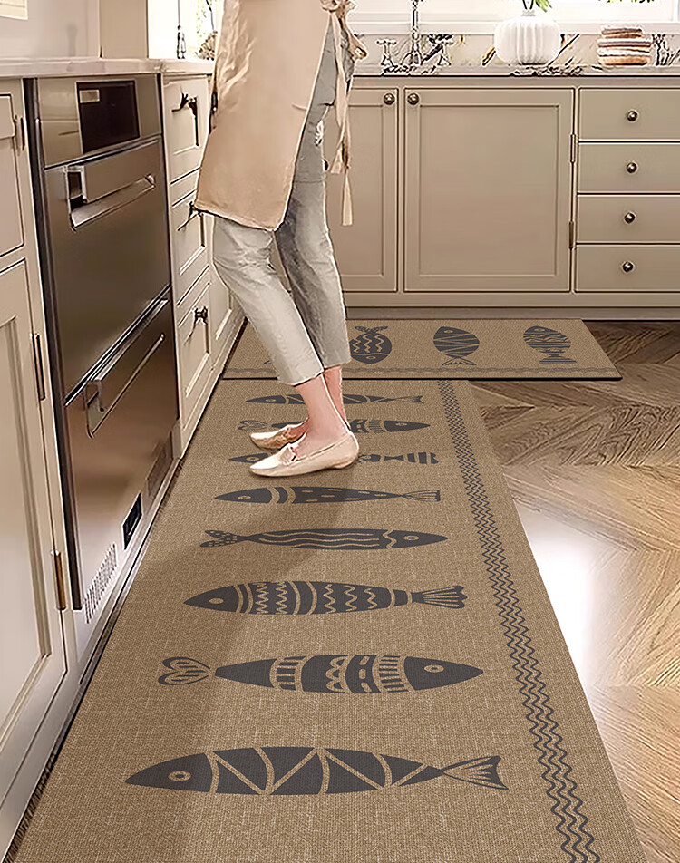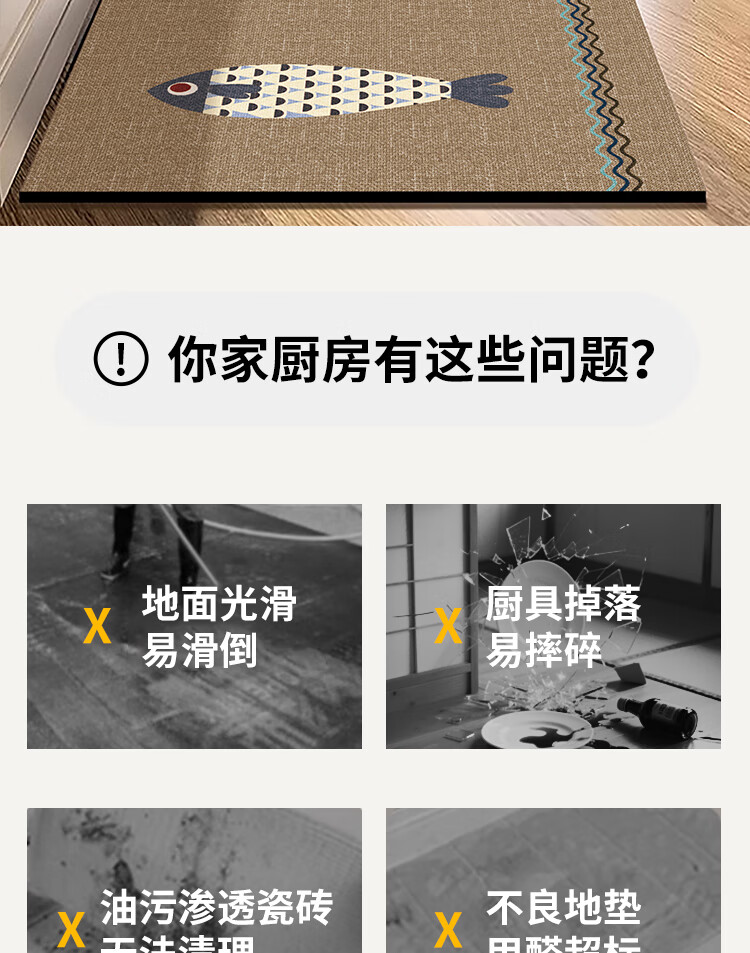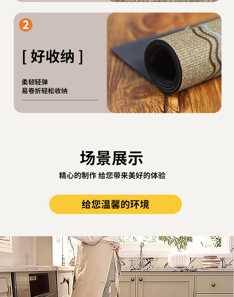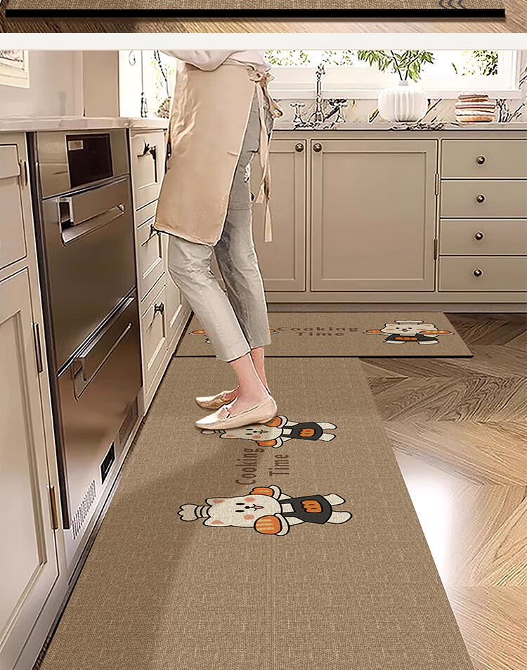 布迪思厨房地垫吸水吸油高弹防摔防滑可裁剪浴室抗污耐脏脚垫可冲洗垫子 小花时 50*80CM+50*150CM【两件装】