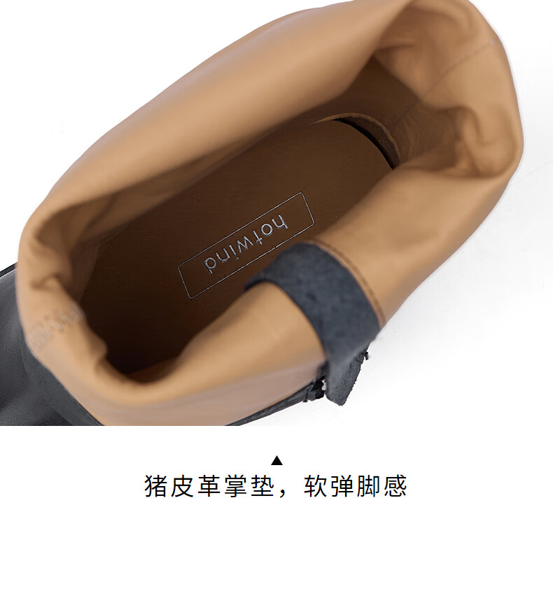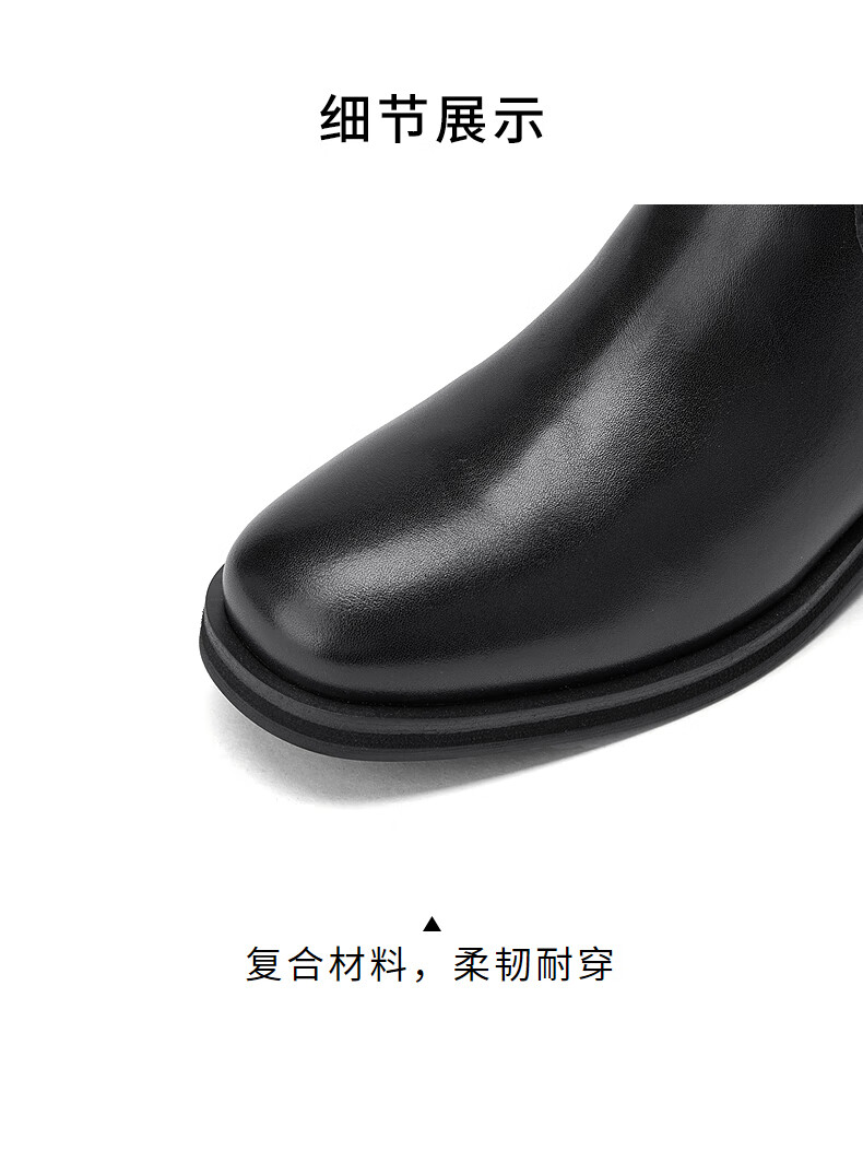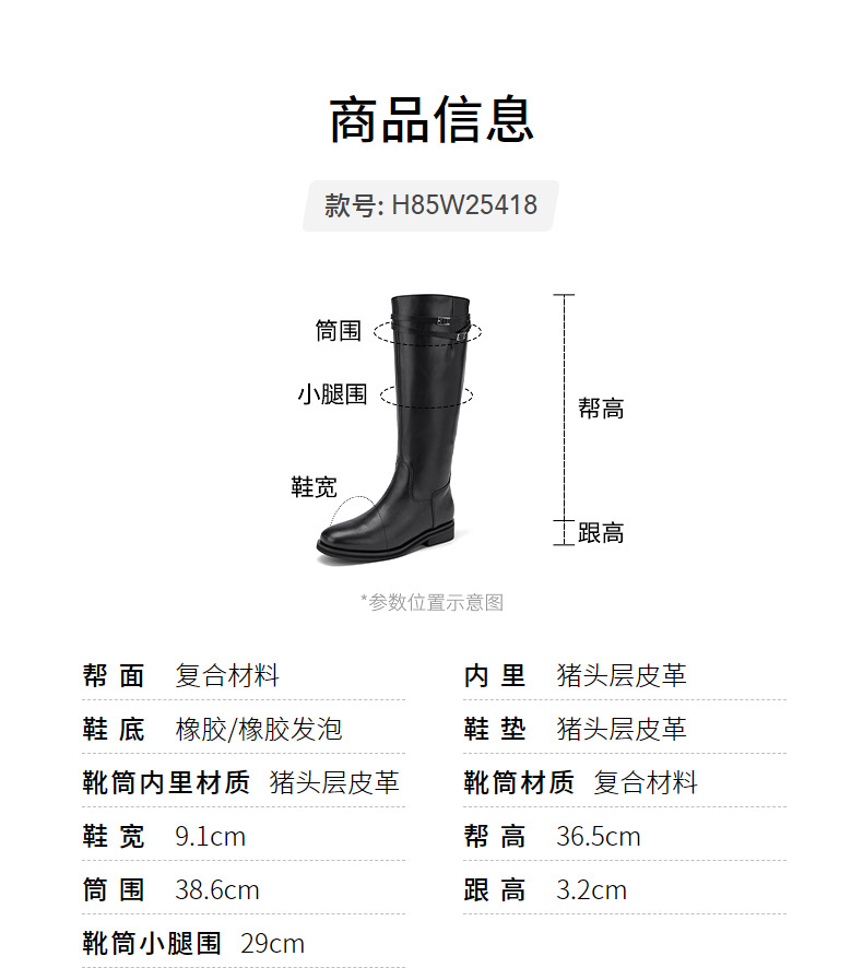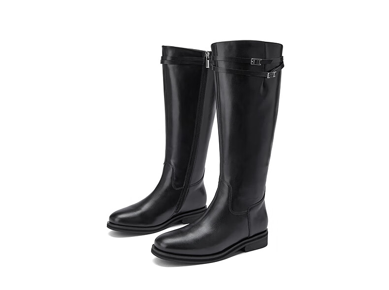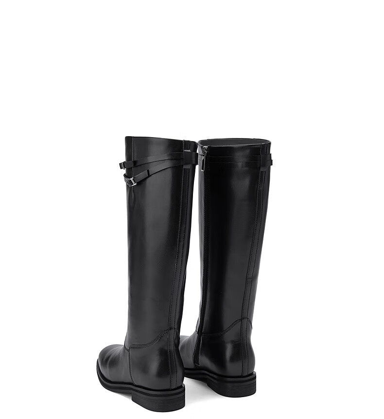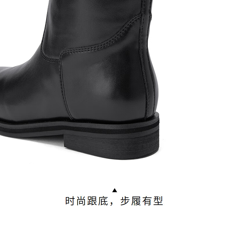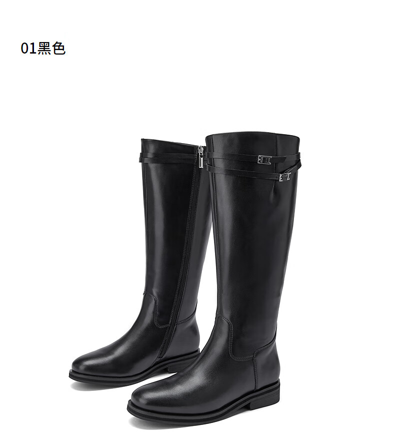 热风(Hotwind)【商场同款】长筒靴女2025年冬季新款复古显瘦高筒骑士靴低跟靴 01黑色 34