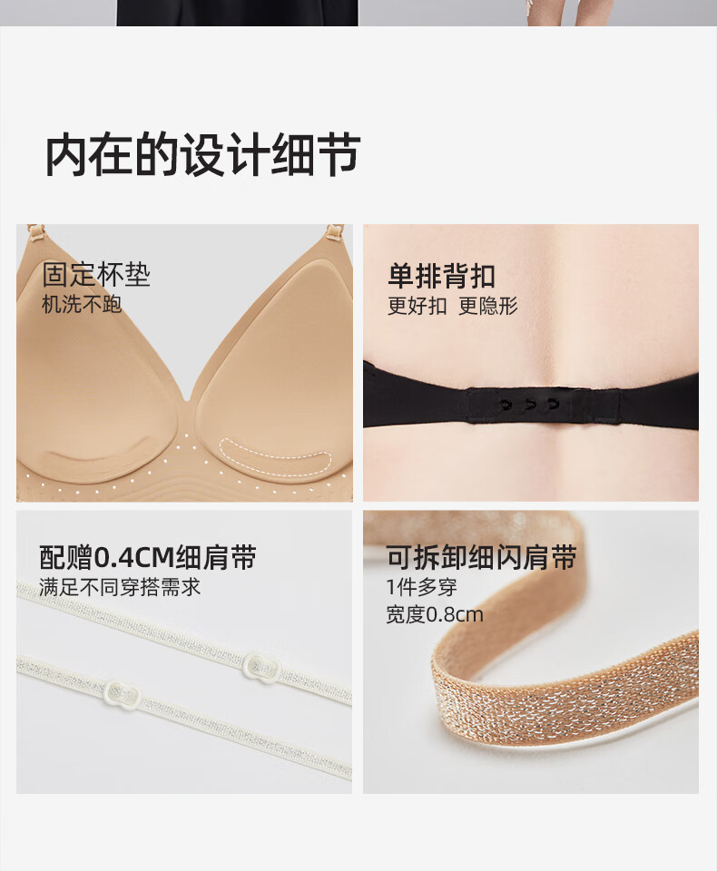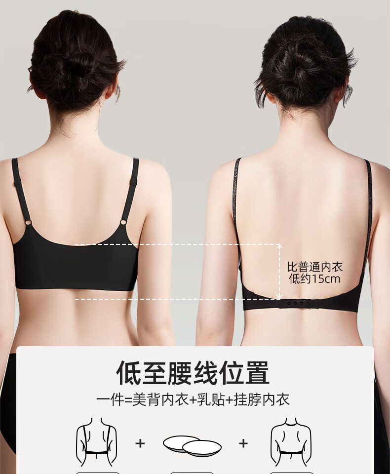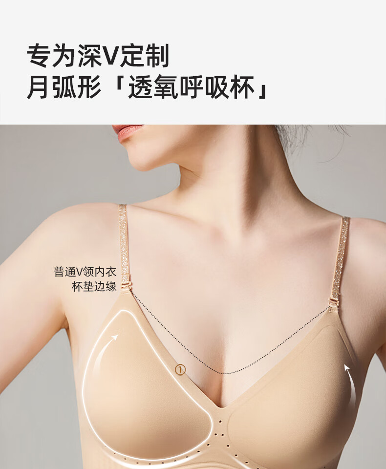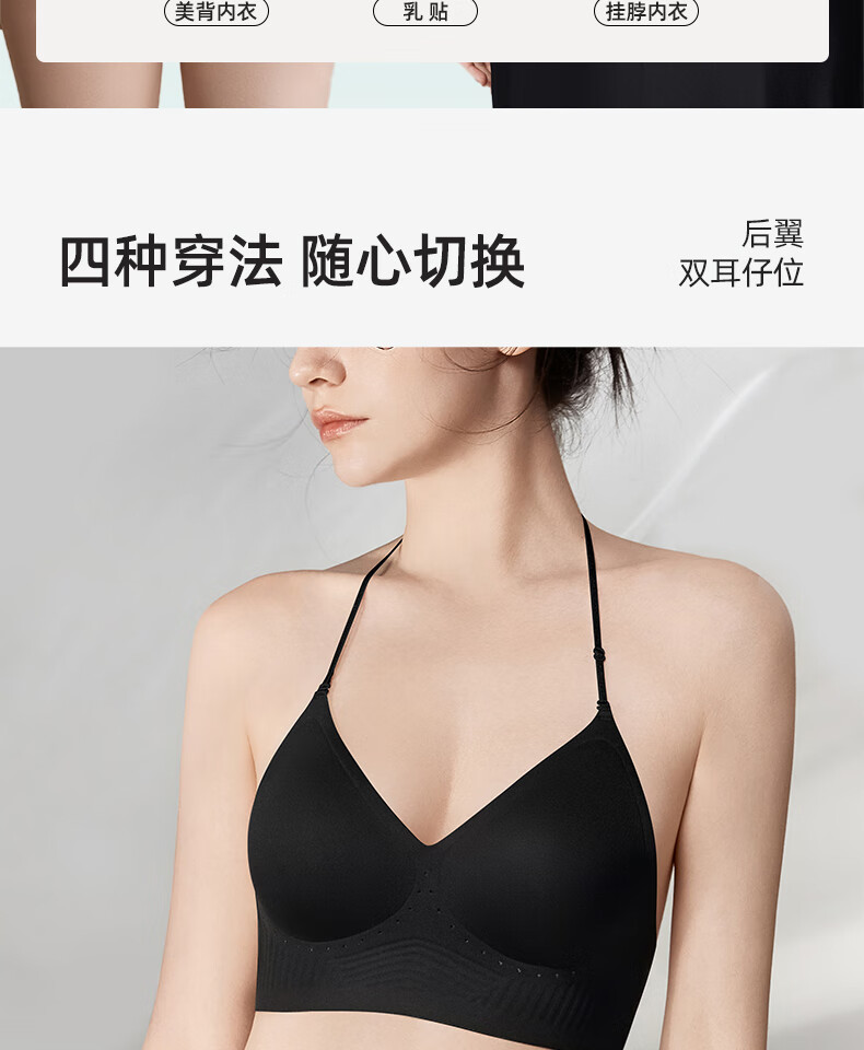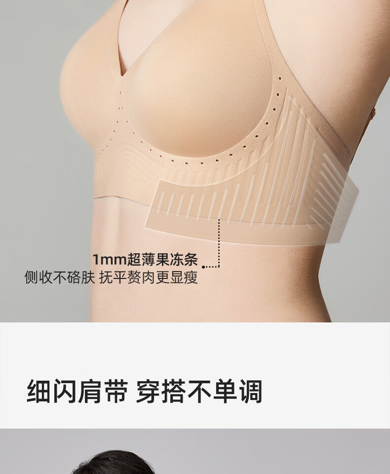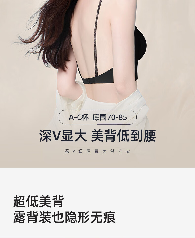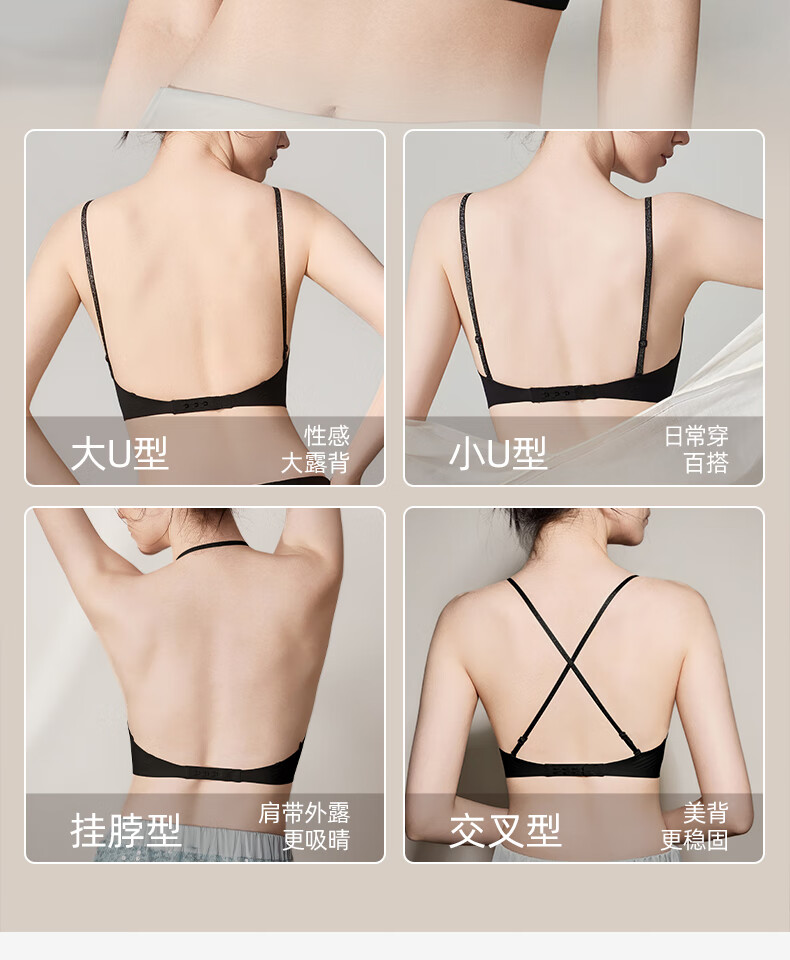 幸棉美背文胸无痕露背聚拢大u型挂脖吊带粉底液细肩带内衣女凉感夏