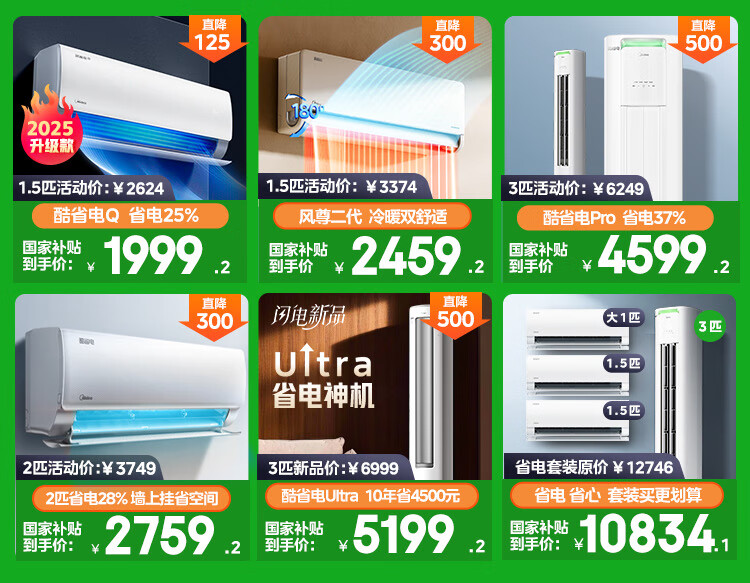 美的空调 爆款推荐 酷省电 新一级能效 变频冷暖 家电国家补贴入口 节能省电家用卧室挂机 以旧换新 大1.5匹 一级能效 酷省电 省电25%