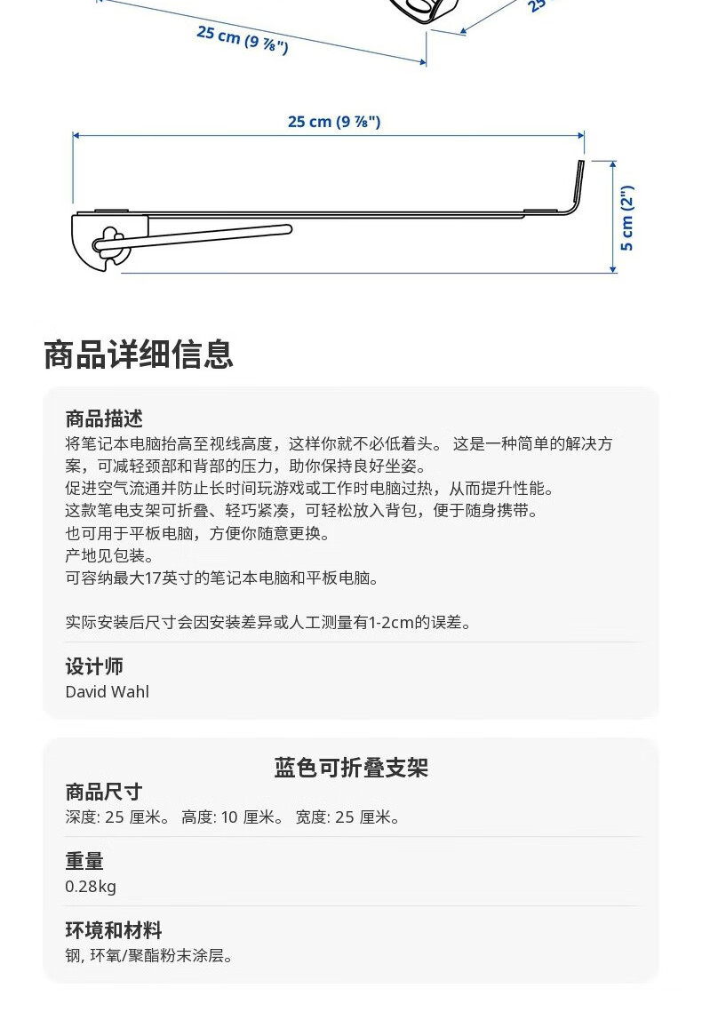 宜家(IKEA)【新品】LANESPELARE洛内斯佩笔记本电脑支架家用 【新品】蓝色可折叠支架