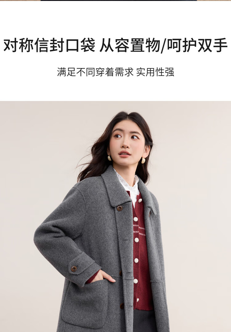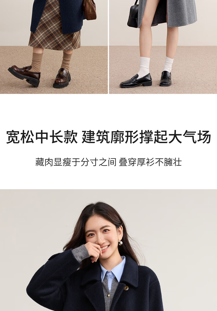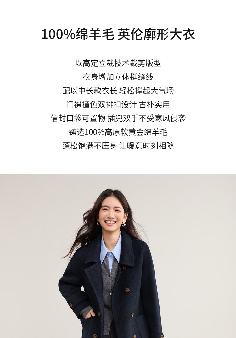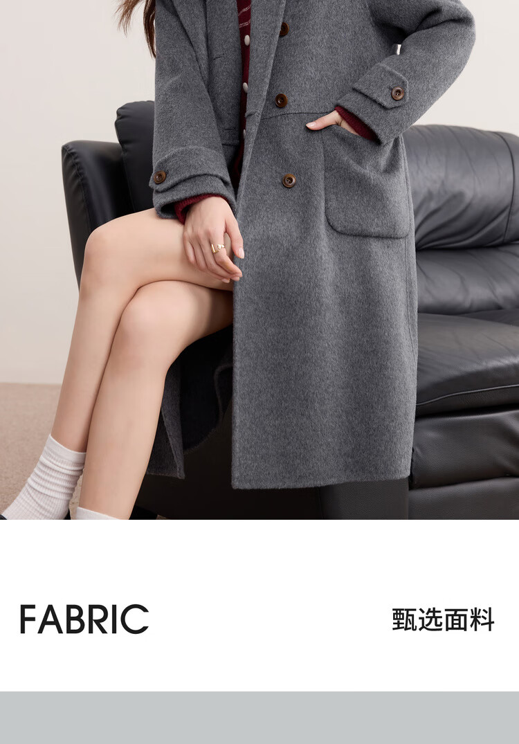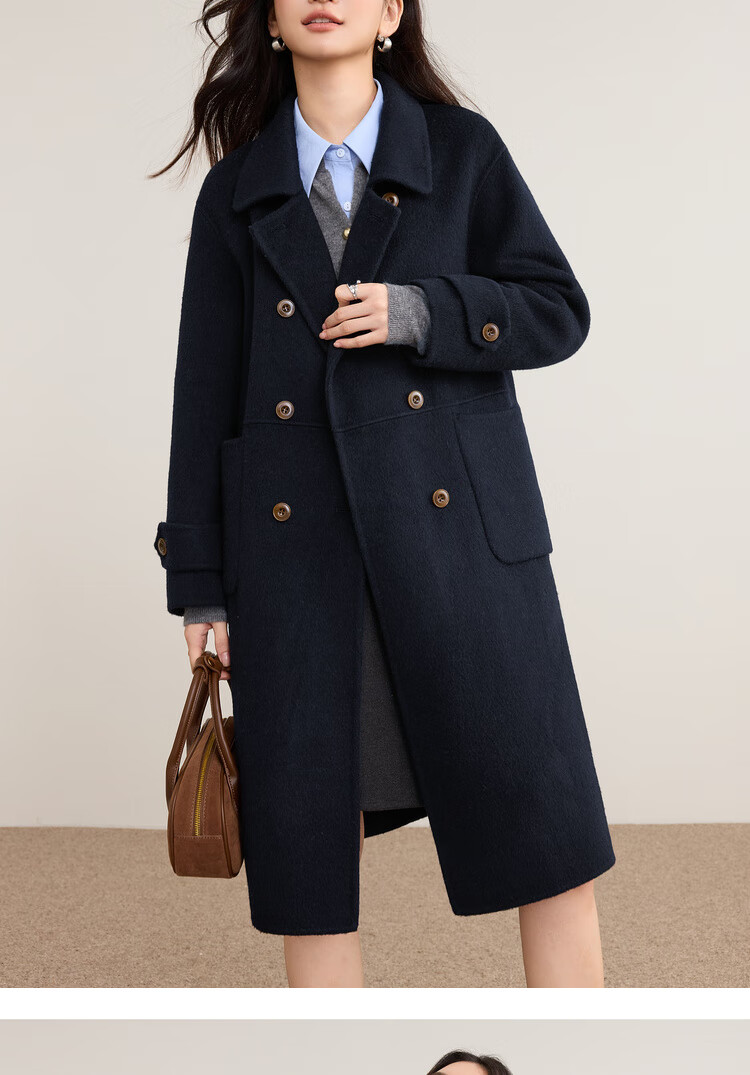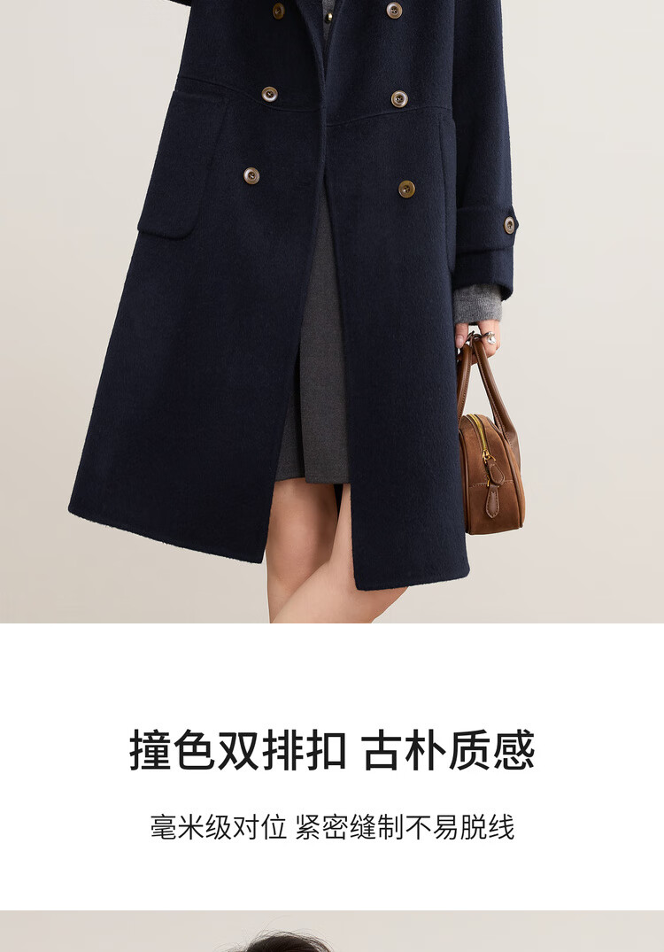 尚都比拉英伦风纯羊毛毛呢大衣女冬季保暖厚款双面呢外套中长翻领宽松大衣