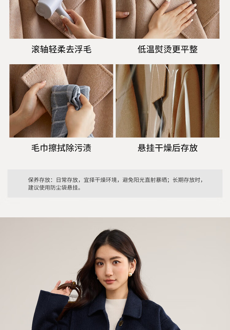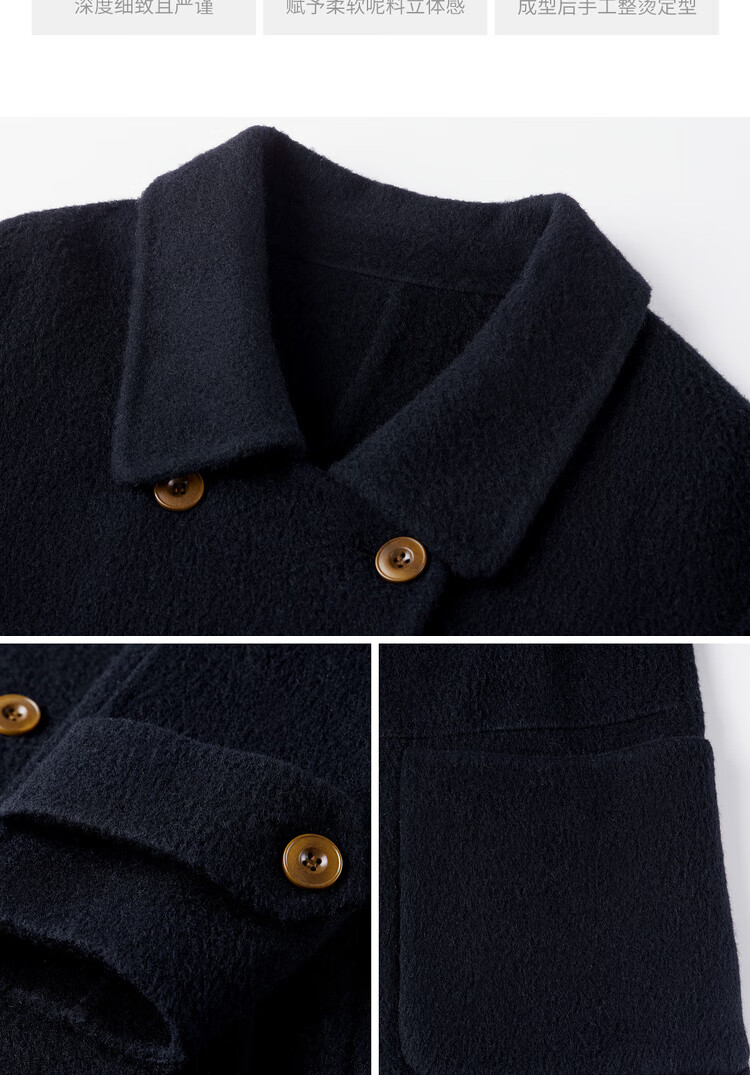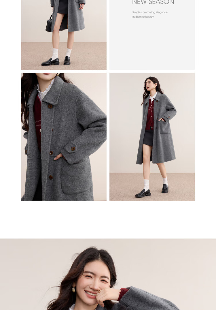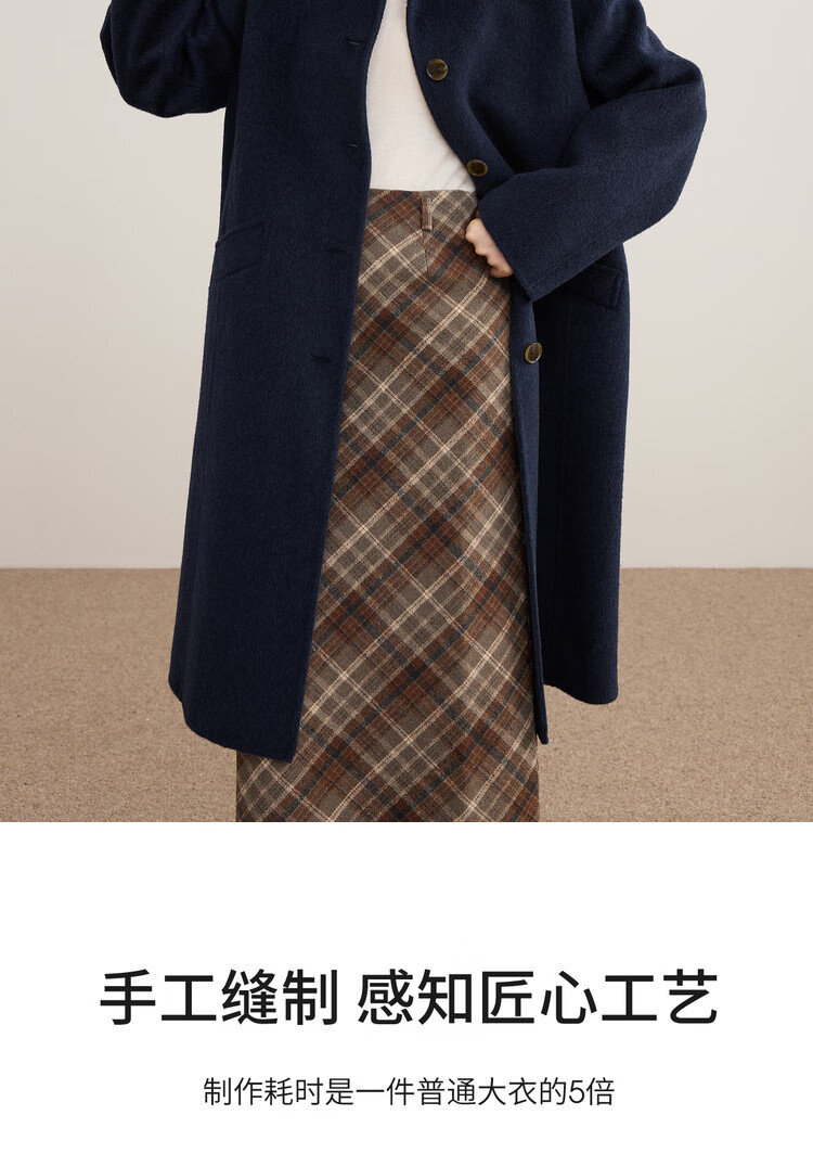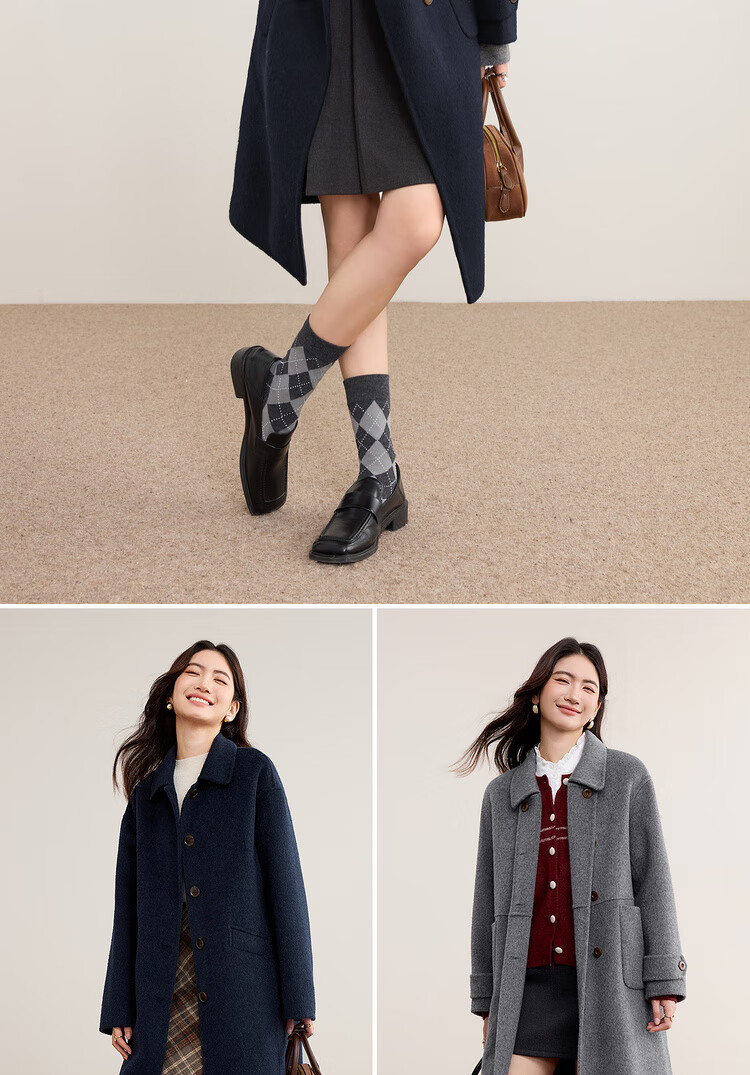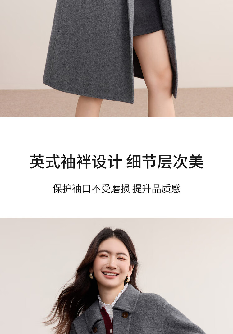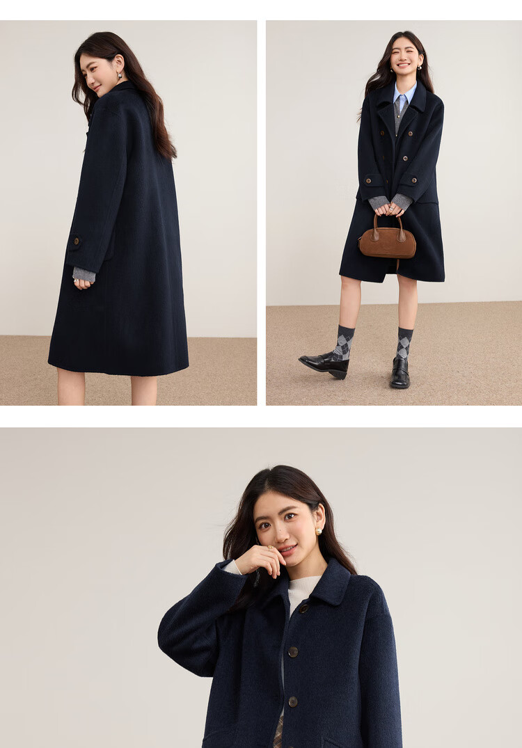 尚都比拉英伦风纯羊毛毛呢大衣女冬季保暖厚款双面呢外套中长翻领宽松大衣