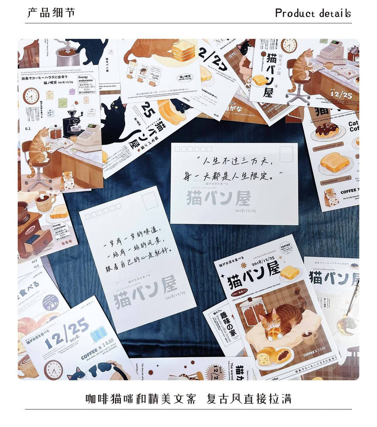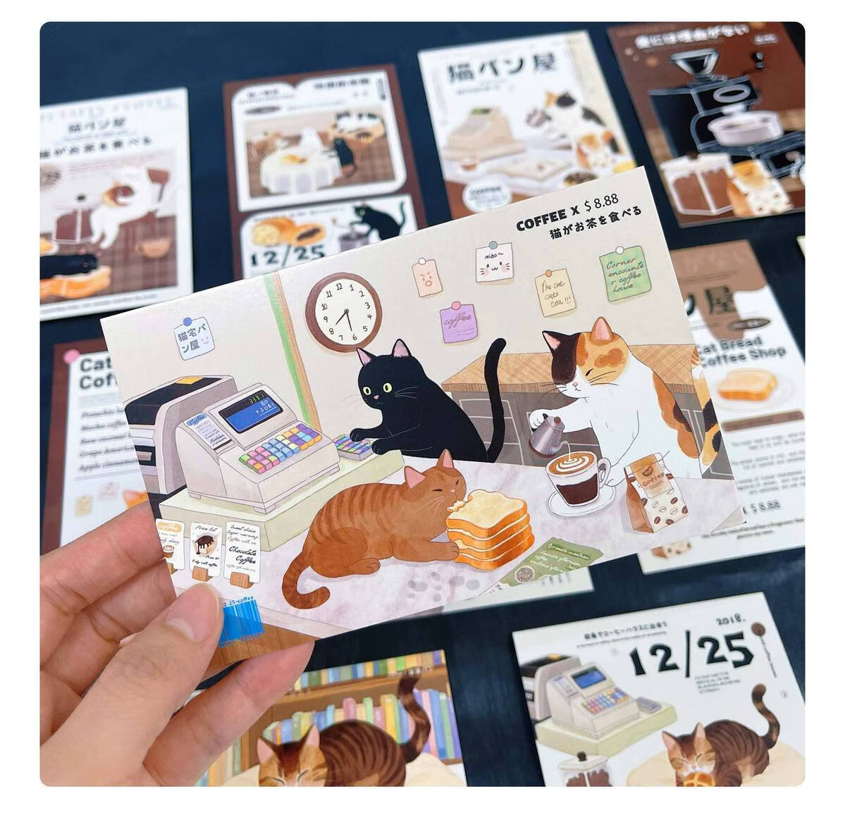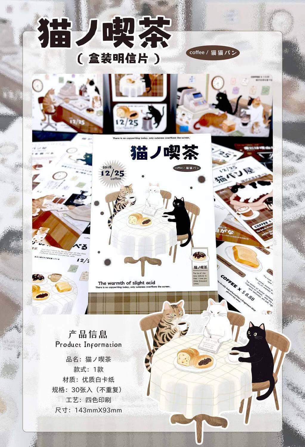 嘟嘟麦高颜值三月纪猫契茶明信片卡通日系可爱猫咪生日礼物手写祝福卡片 【猫契茶】-明信片
