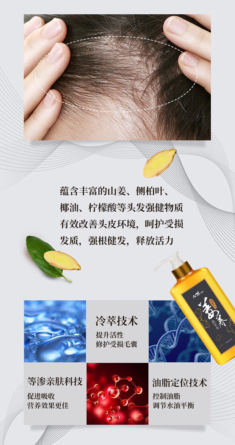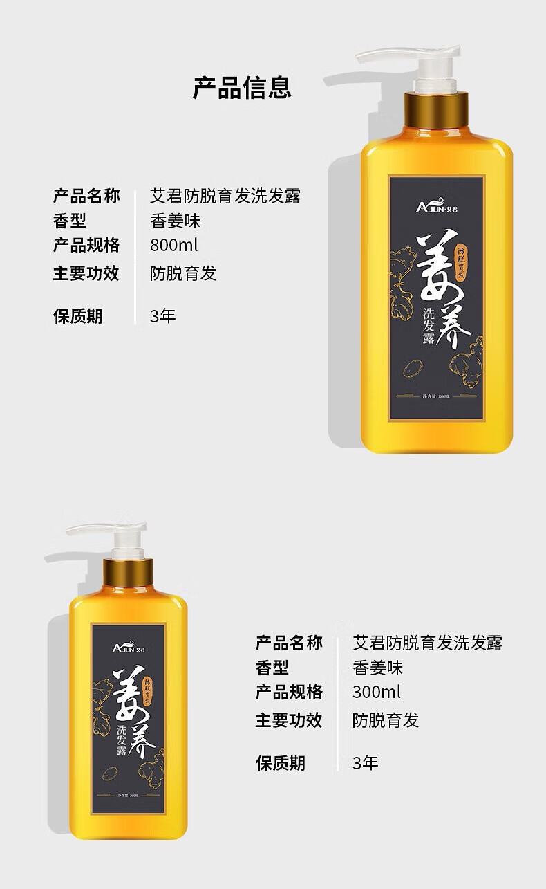 艾君防脱发育发洗发水800ml 男女断发固发生姜洗发水老姜王洗发露