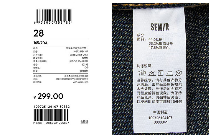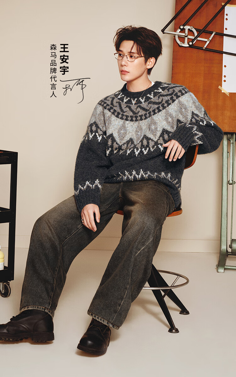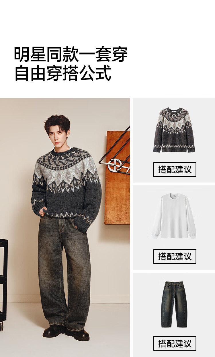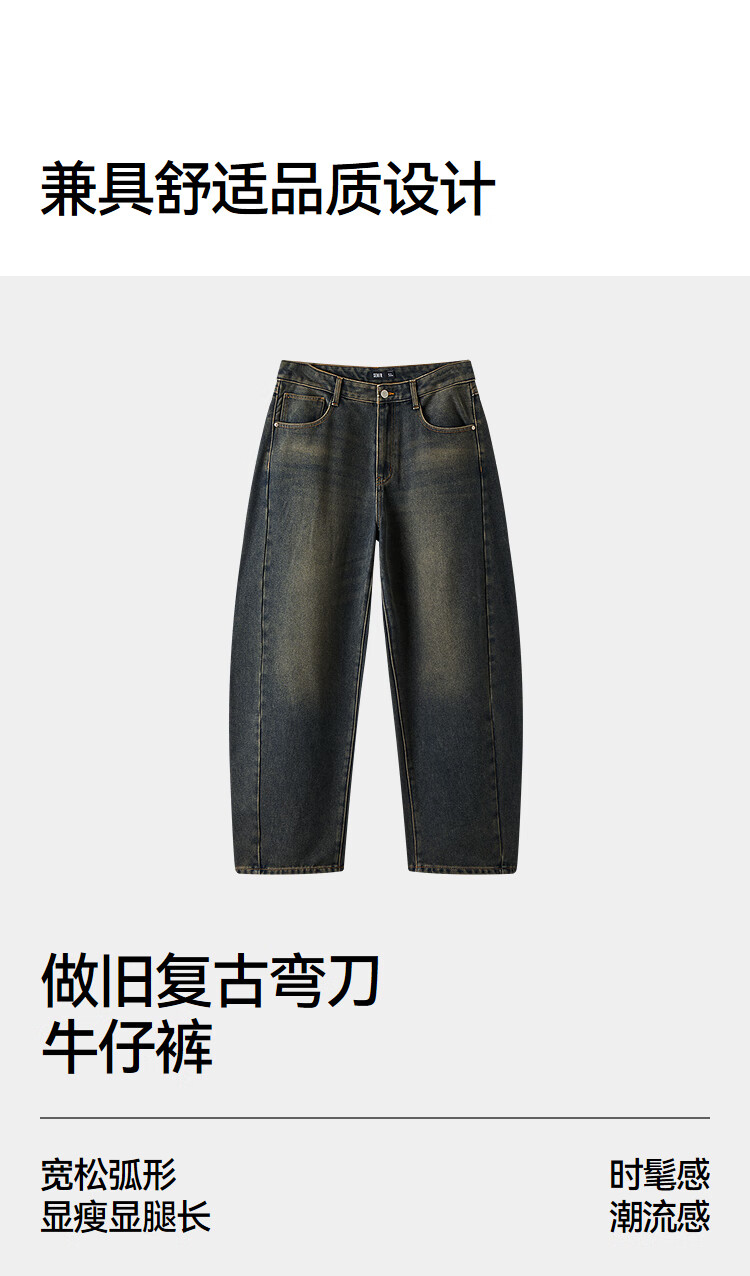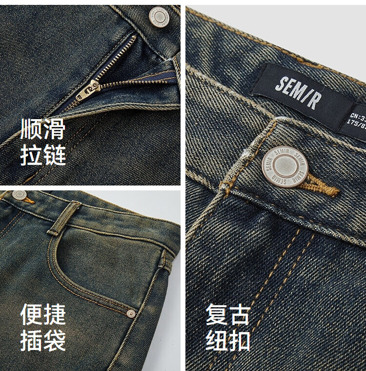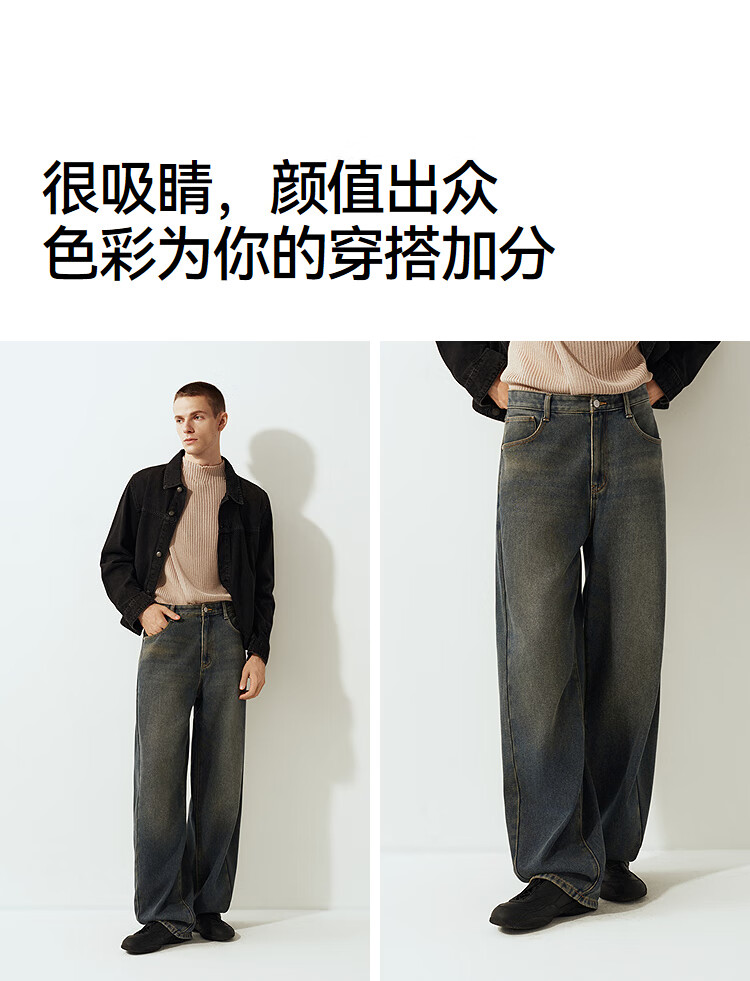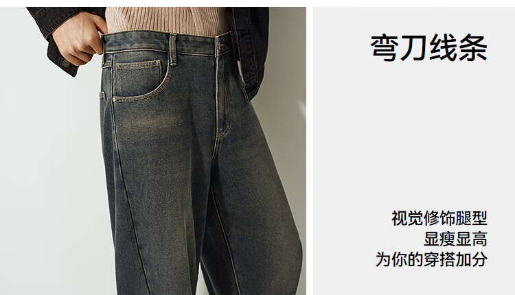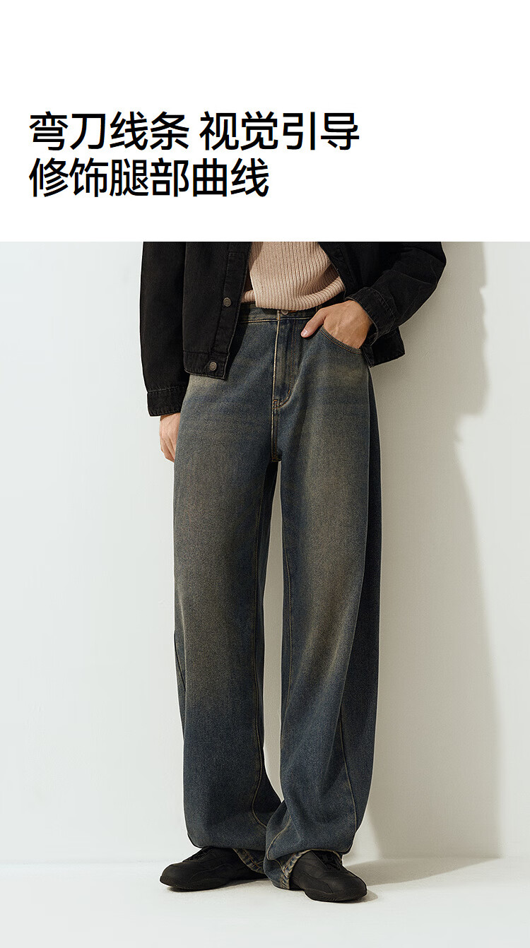 森马(Semir)王安宇同款丨牛仔裤男复古弯刀裤25冬长裤丹宁布裤子109725124107
