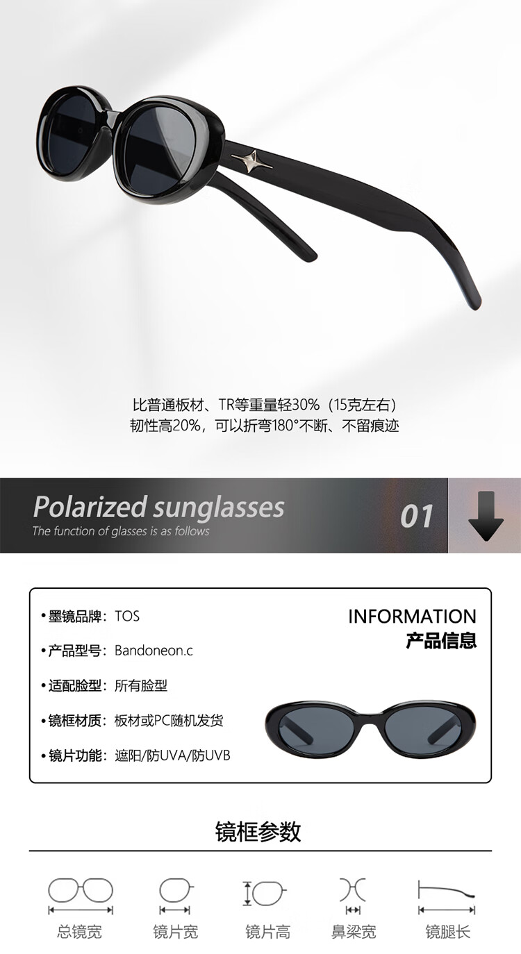 TOS复古猫眼高级感GM墨镜女款潮偏光2024新款眼镜太阳镜 接龙运