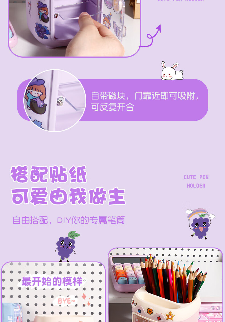 少年伴【全网爆款】笔筒大学高中生学习用品礼物文具学生宿舍一年级多功能办公桌高颜值收纳大容量生日蓝