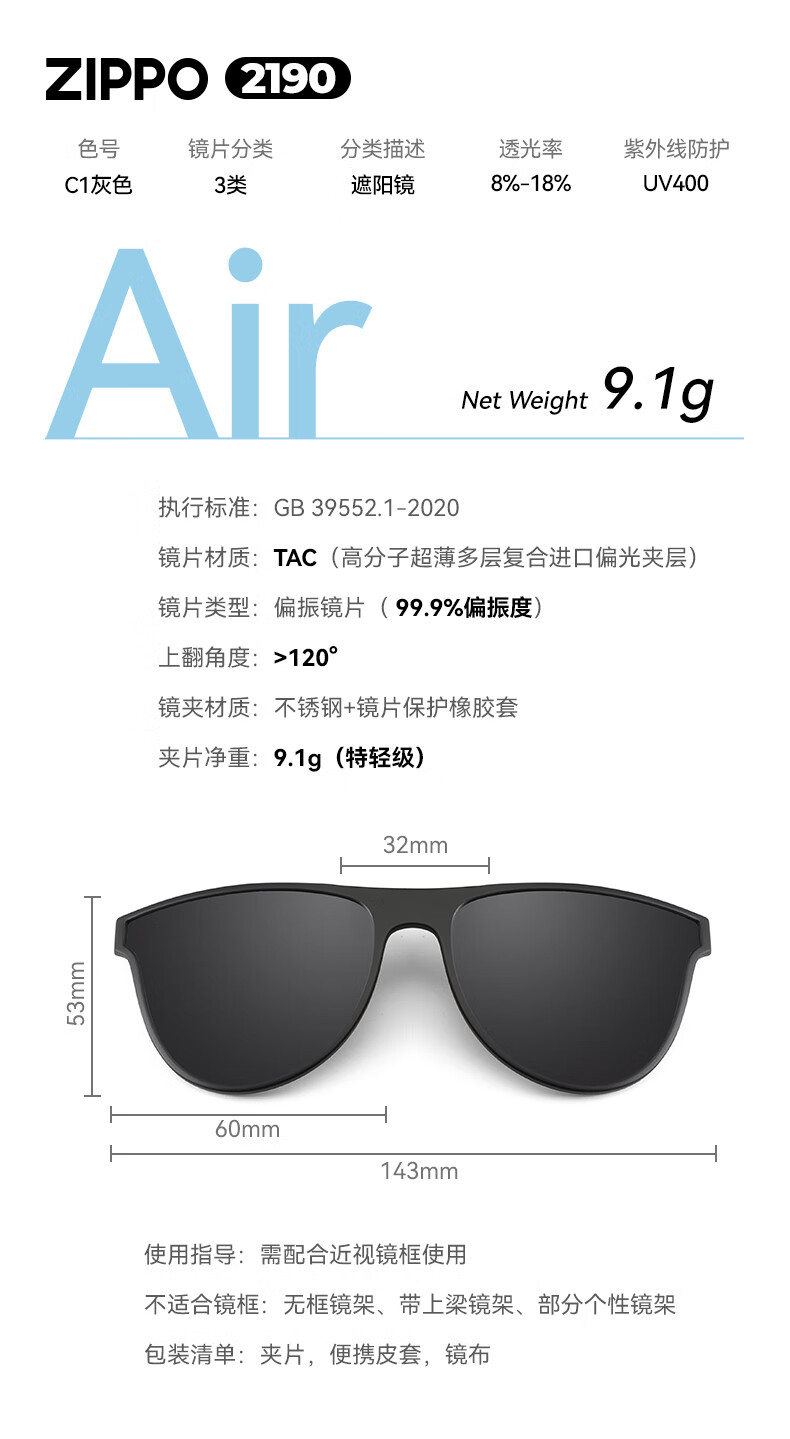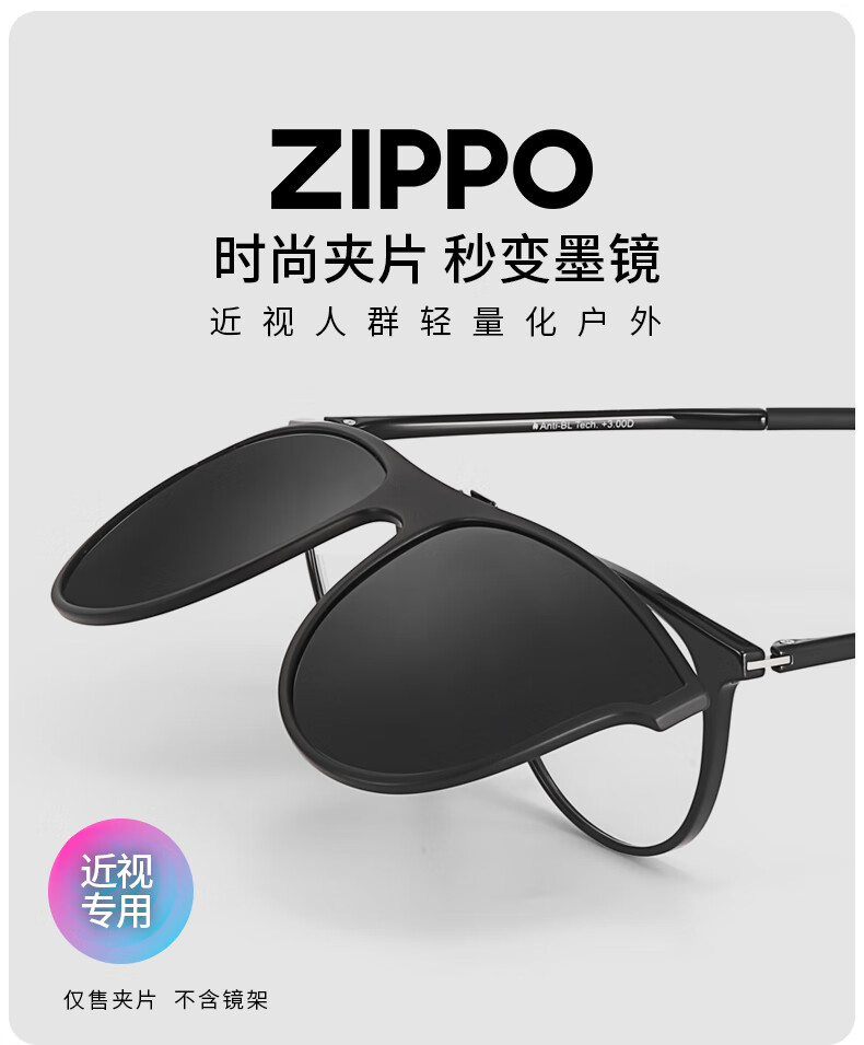 ZIPPO美国近视专用偏光太阳镜夹片开车安全驾驶防强光便携墨镜2190新