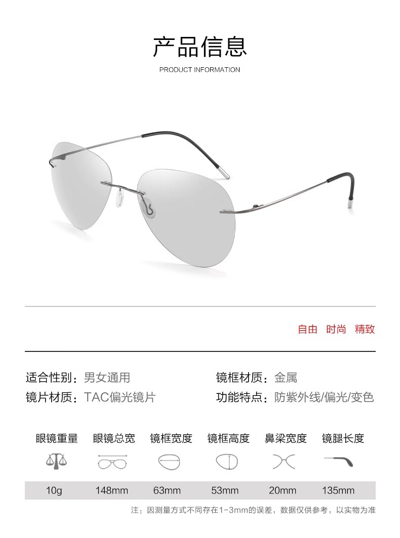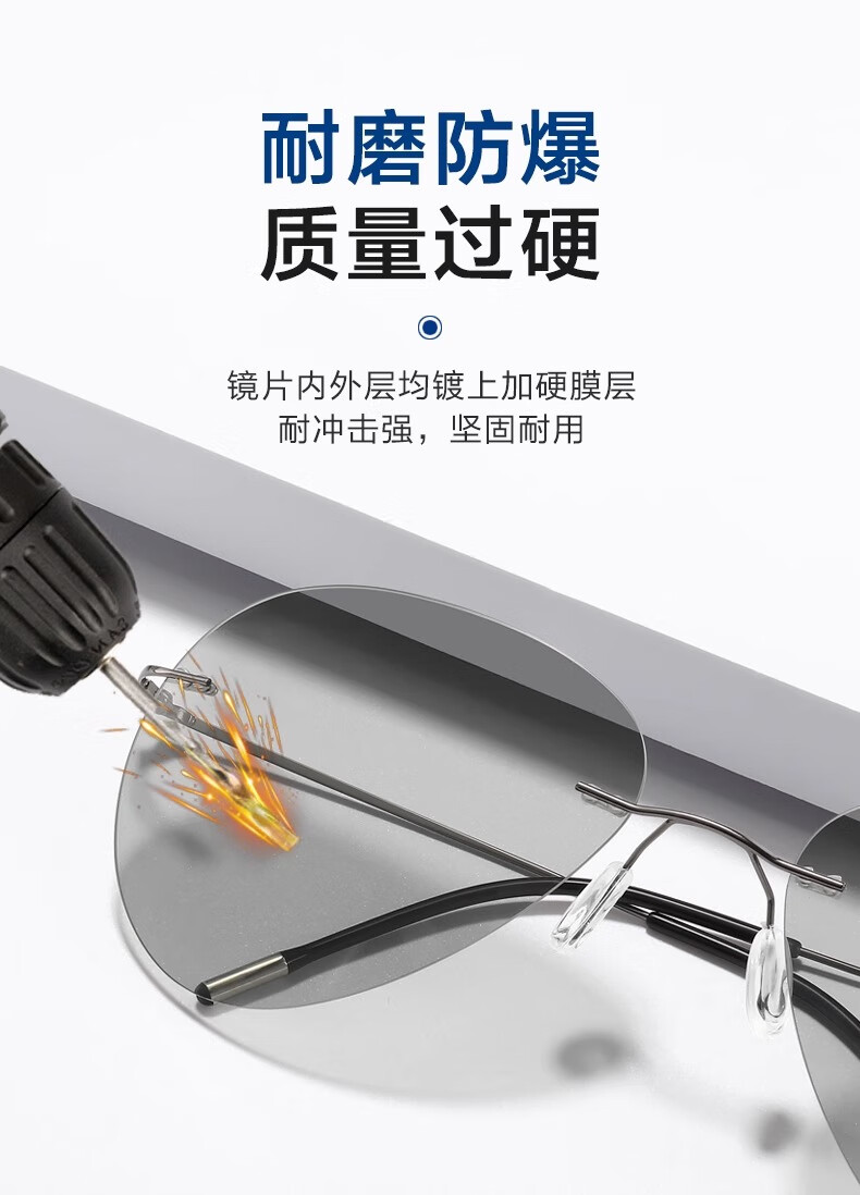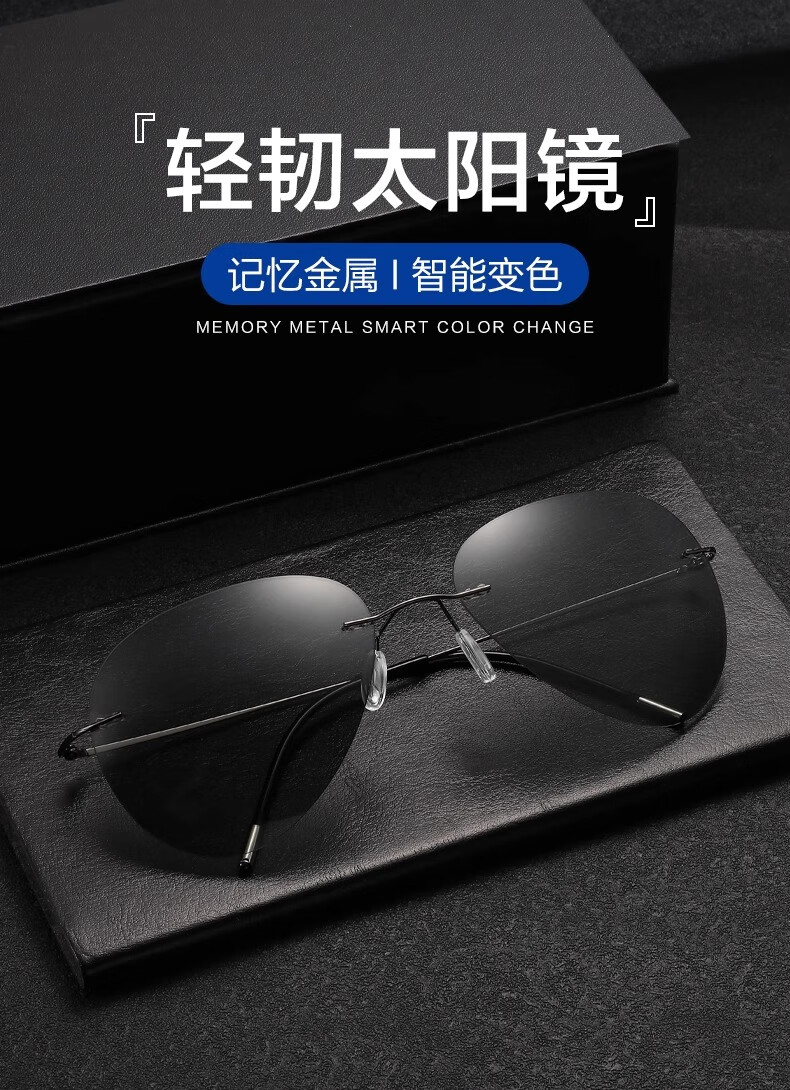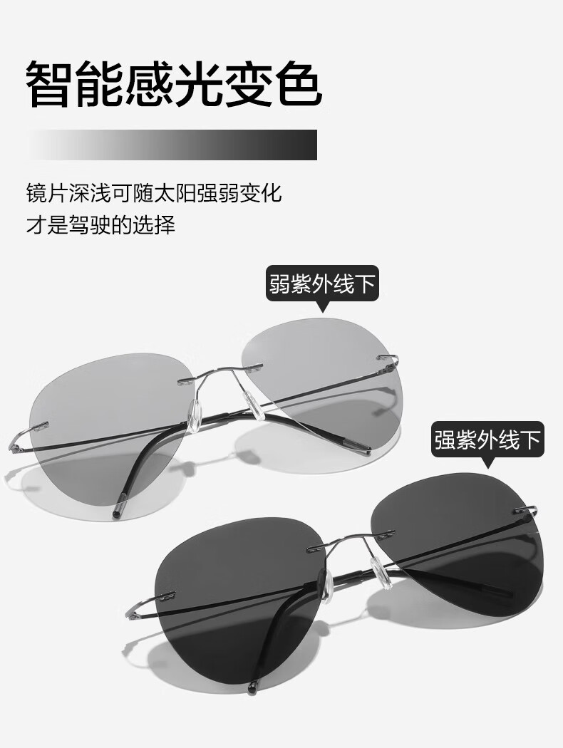 GOGOSOON无框墨镜男士款偏光驾驶飞行员蛤蟆镜超轻太阳镜开车专用变色眼镜