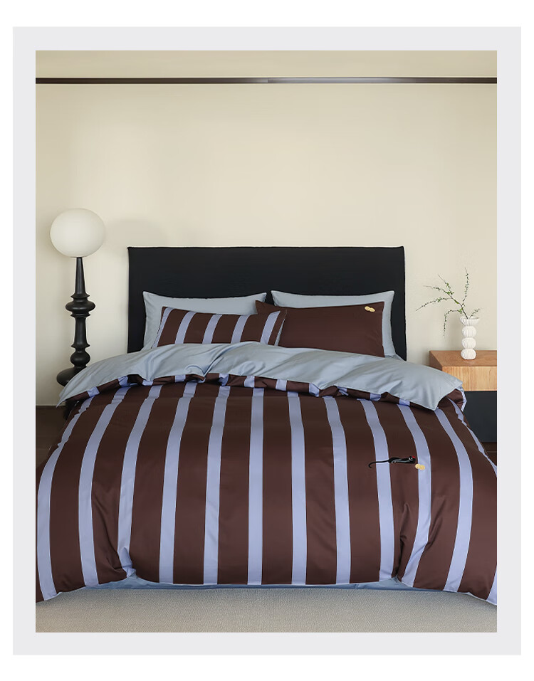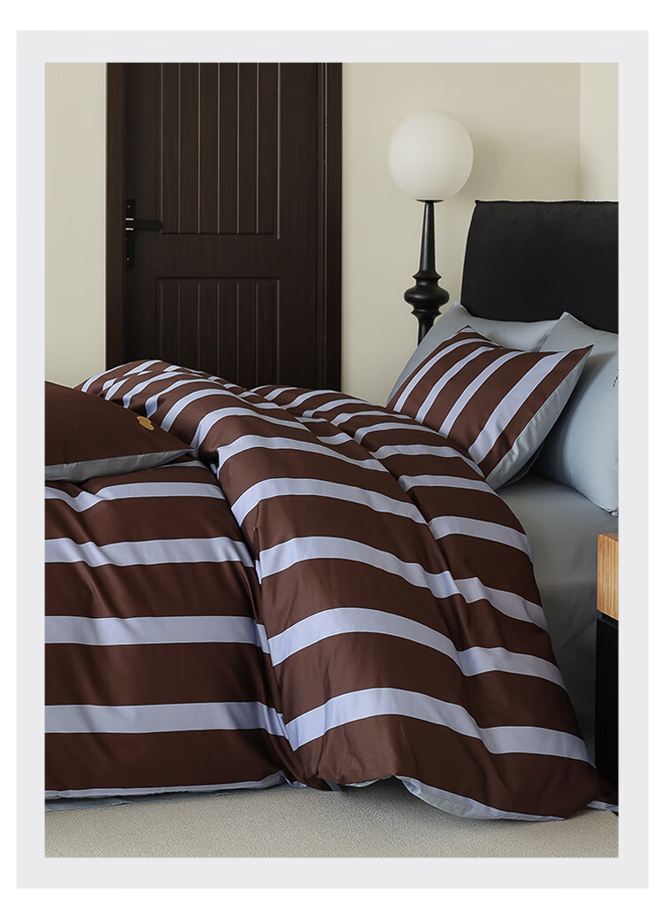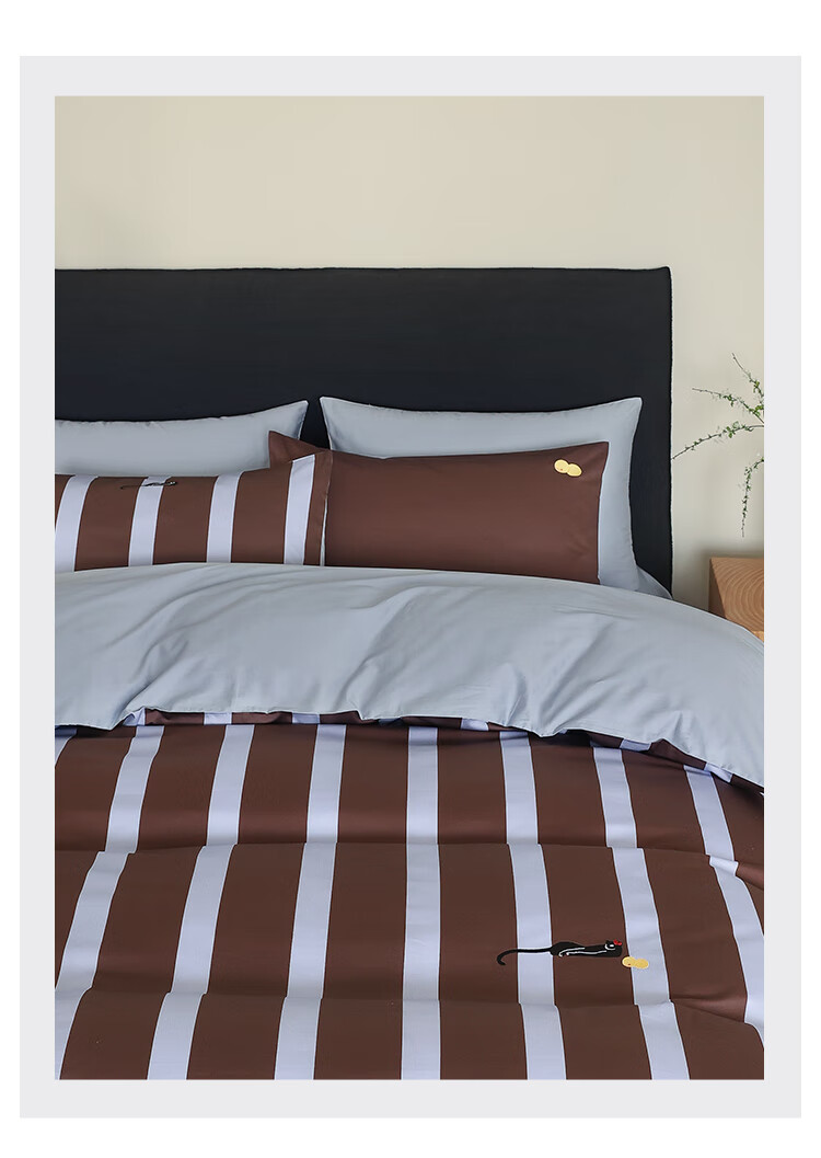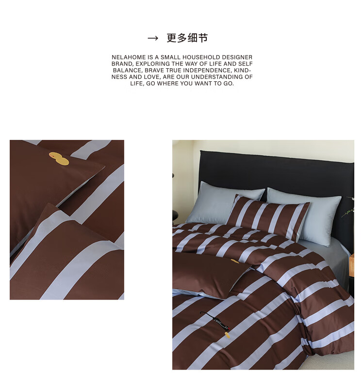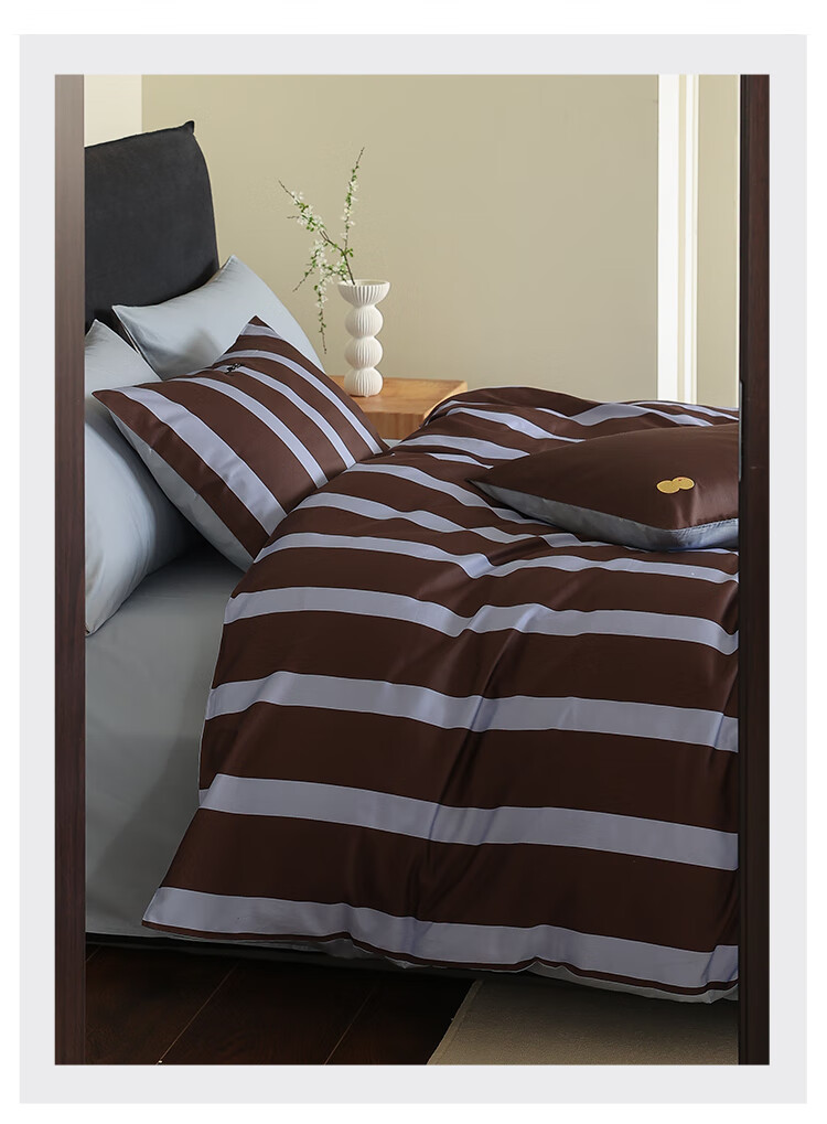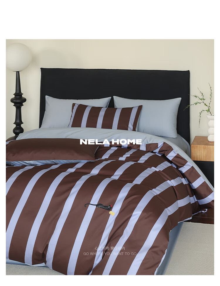 向内穿行A类长绒棉100全棉条纹刺绣床上四件套纯棉被套床品家居馆 只因柚你1.5m床单款