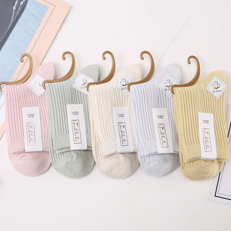 袜子女士秋冬纯加厚棉袜中长筒夏季船袜双针全黑色男防臭运动袜E 女款混搭装双针长袜 5双 均码