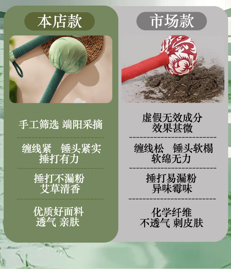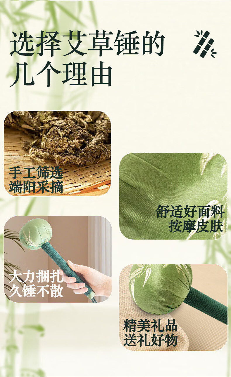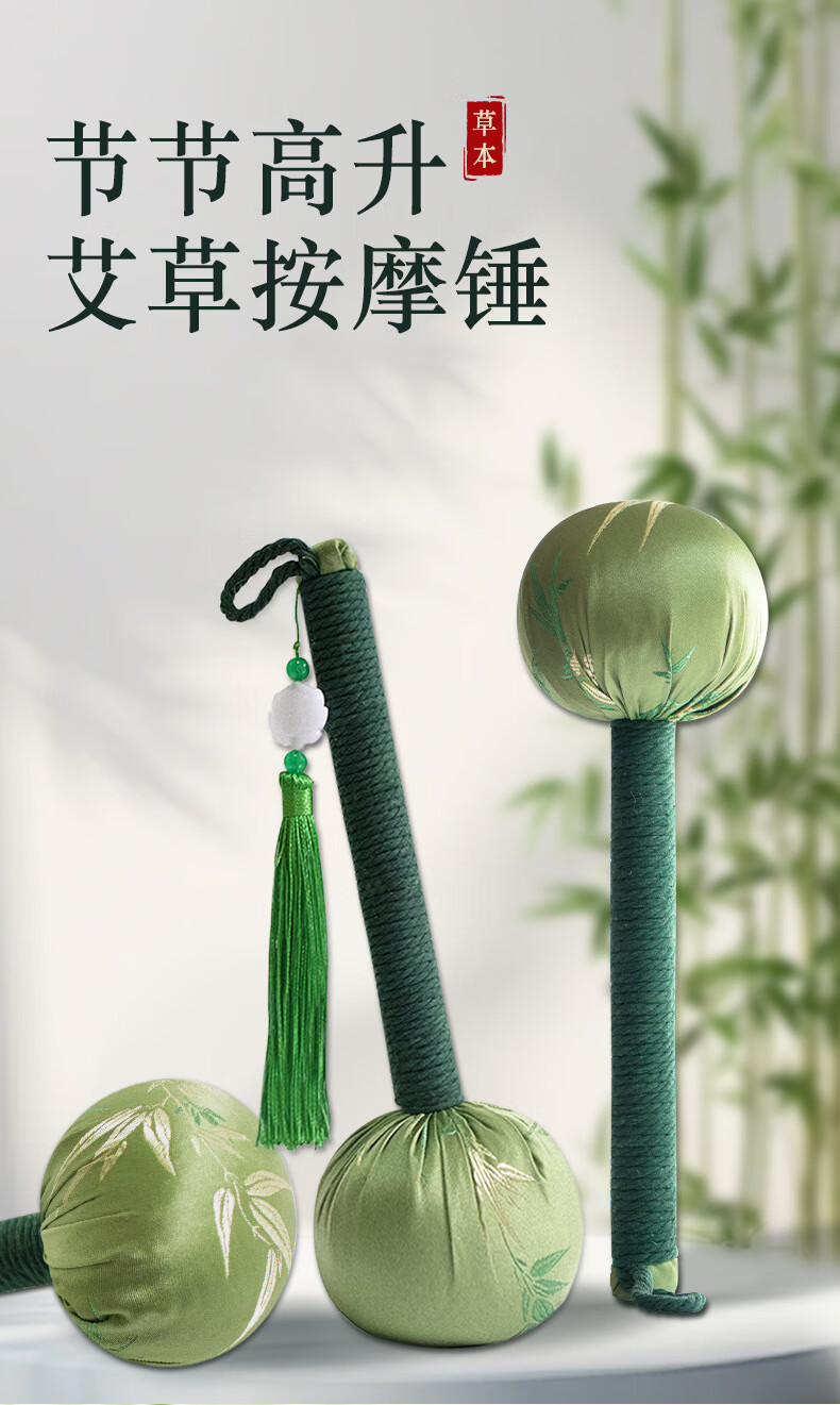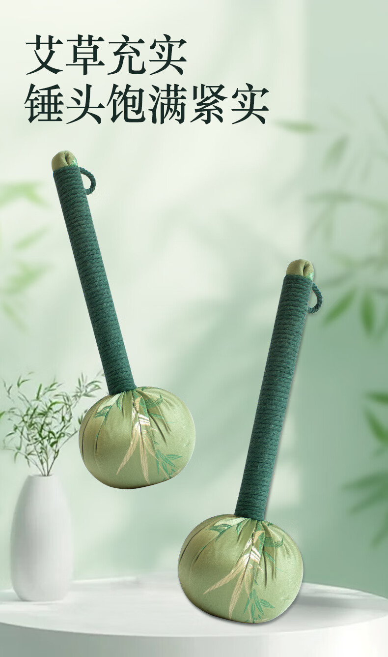 【优选】艾草养生锤按摩敲打锤节节高升艾草锤家用肩颈拍打棒端午 节节高升缎面艾草锤20CM*1(1个装)