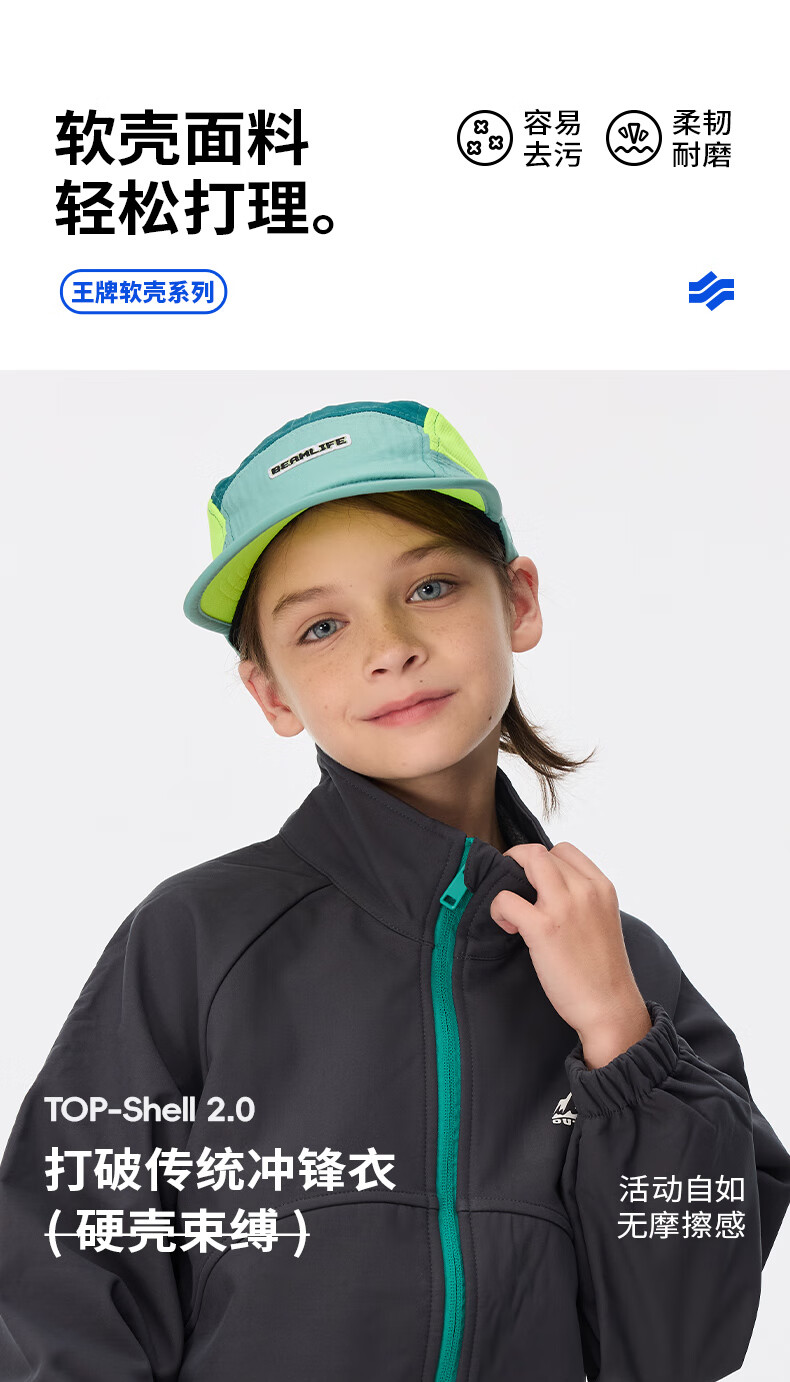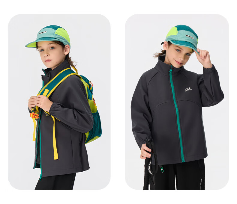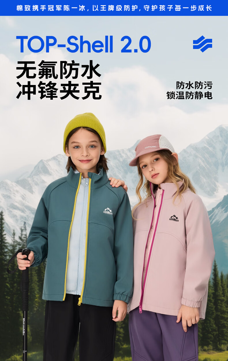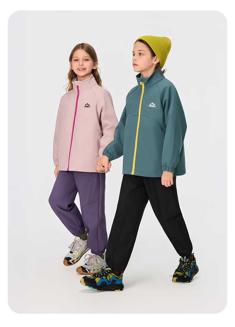 棉致【科技三防】2025秋季儿童无氟防水户外立领轻量软壳三防中大童衣 黑色 160