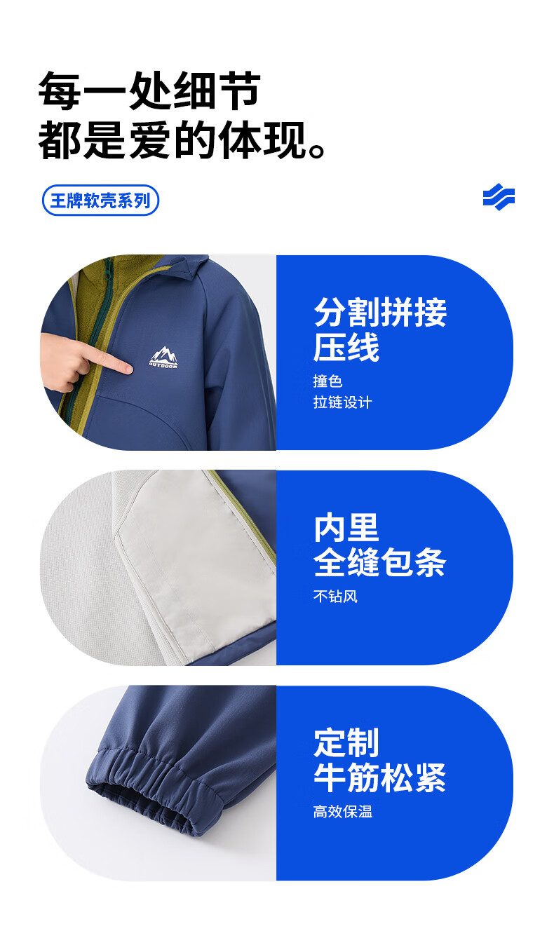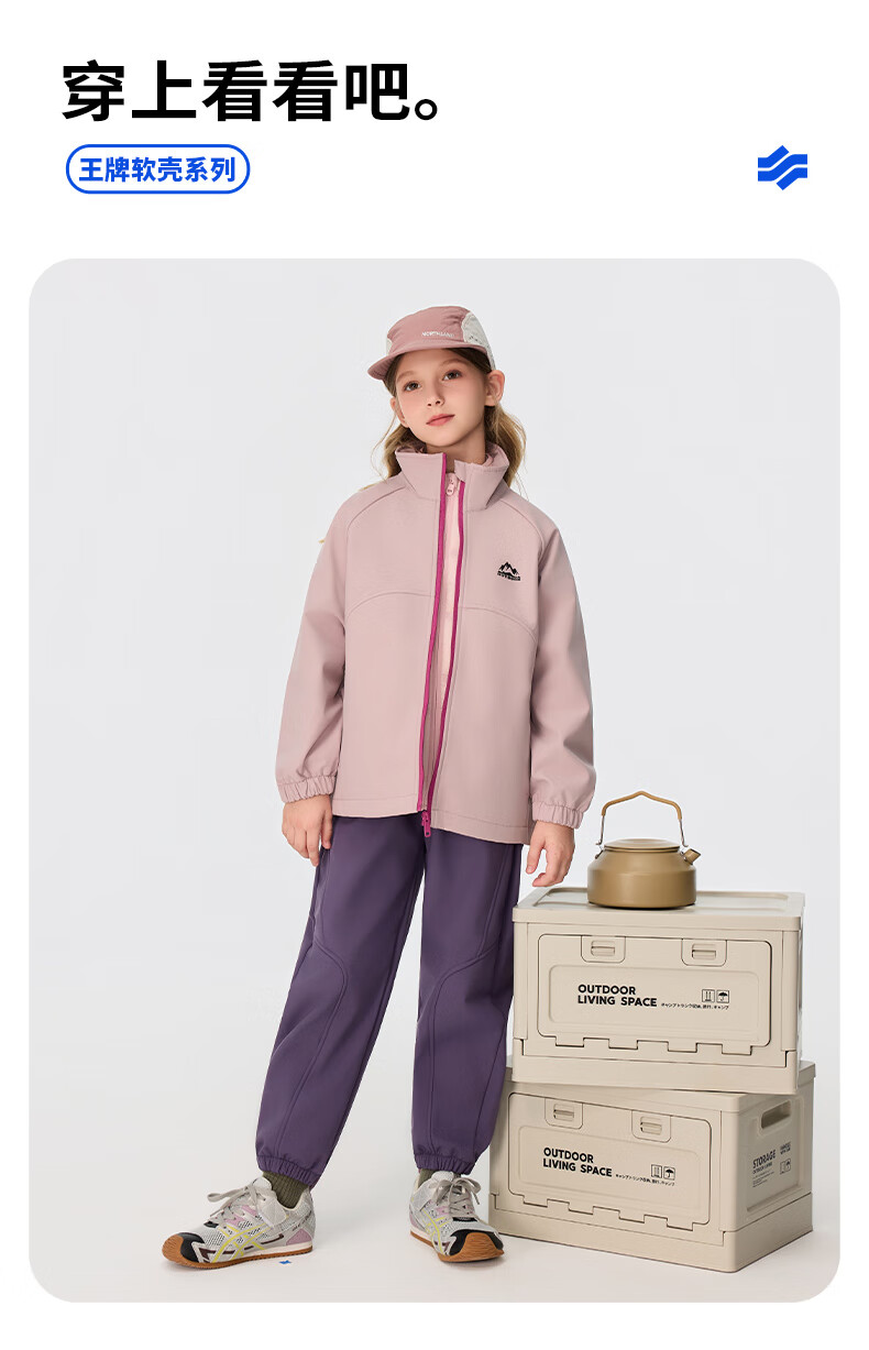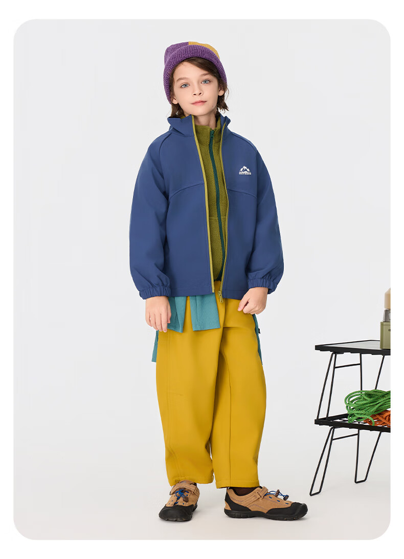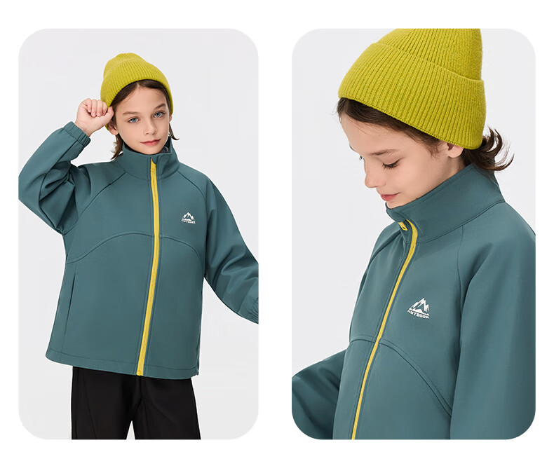 棉致【科技三防】2025秋季儿童无氟防水户外立领轻量软壳三防中大童衣 黑色 160