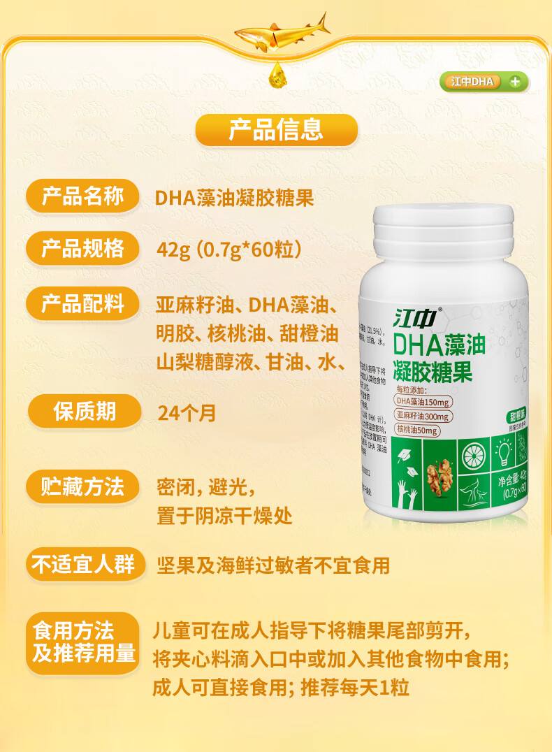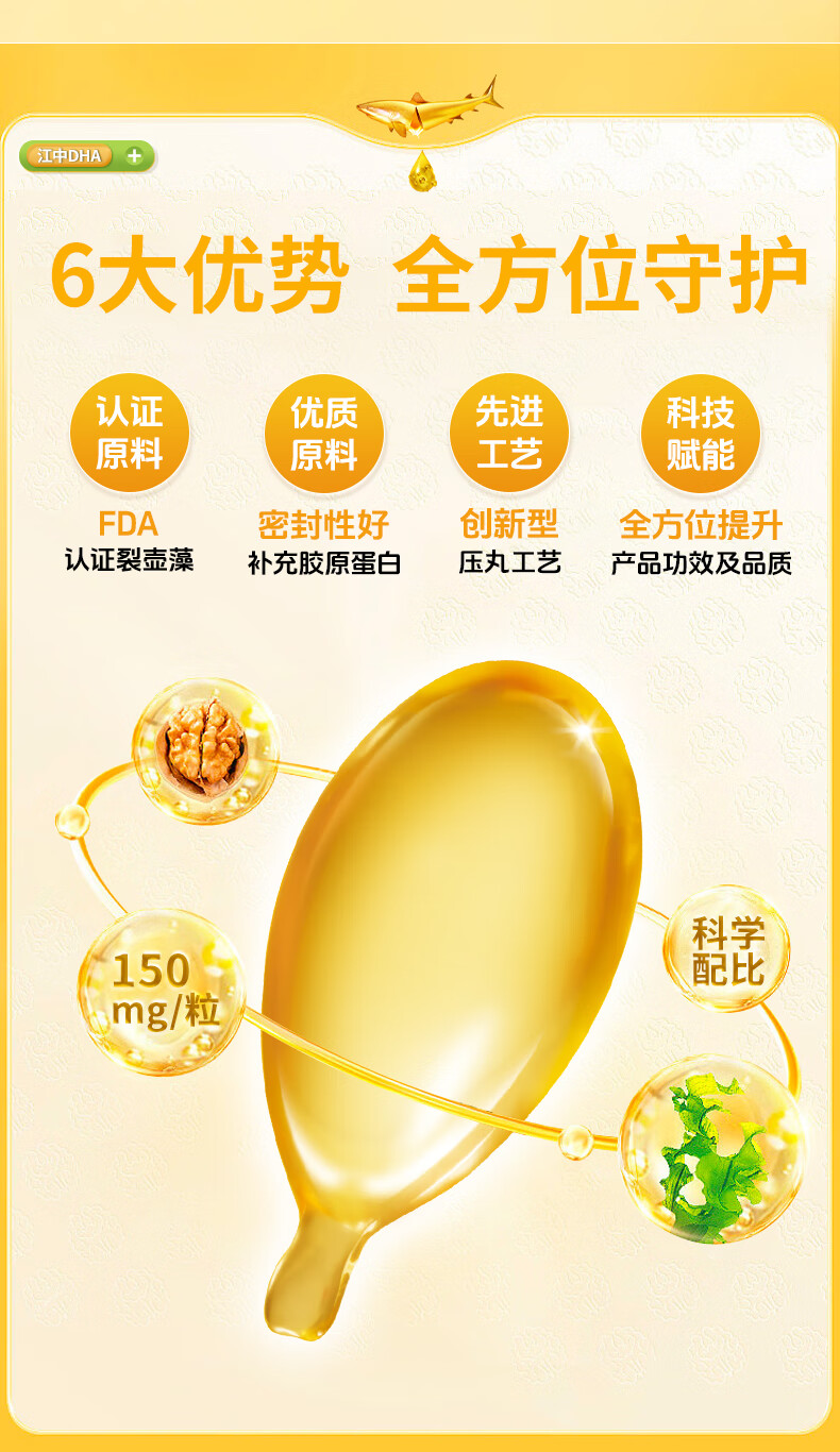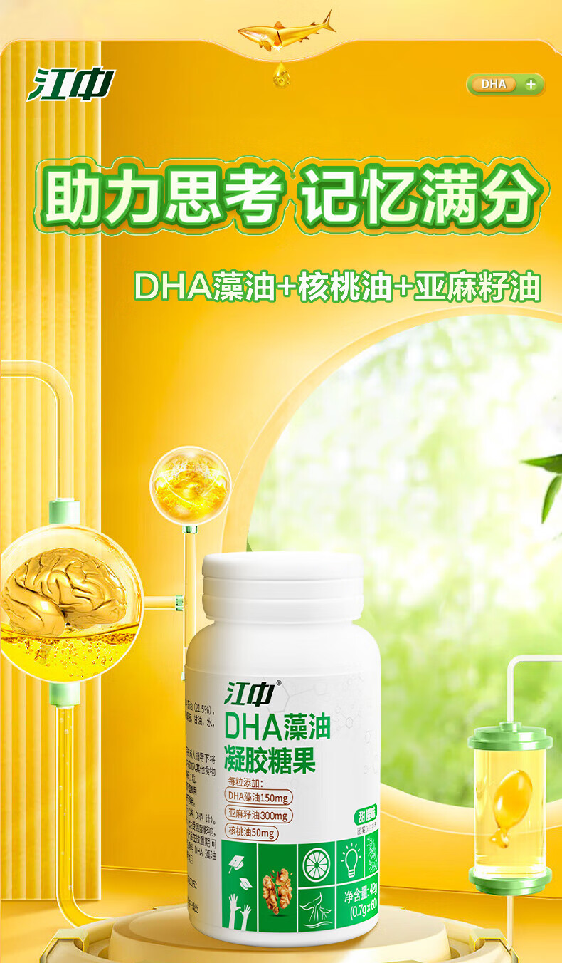 江中dha 3瓶装 藻油核桃油学生鱼油补脑记忆dha专注力青少年儿童孕妇