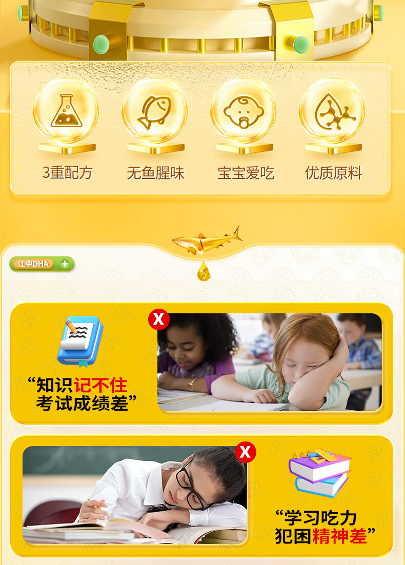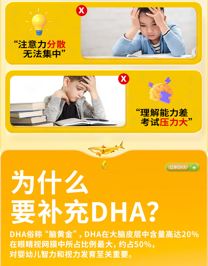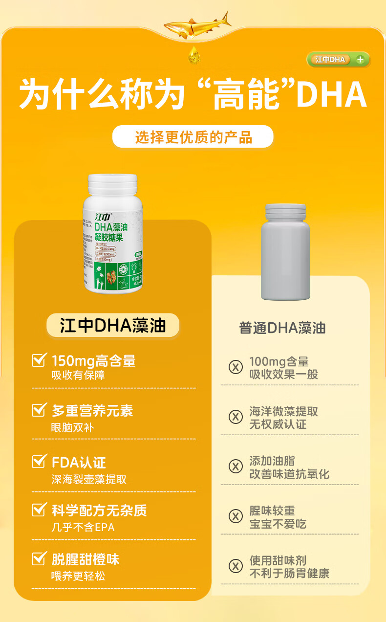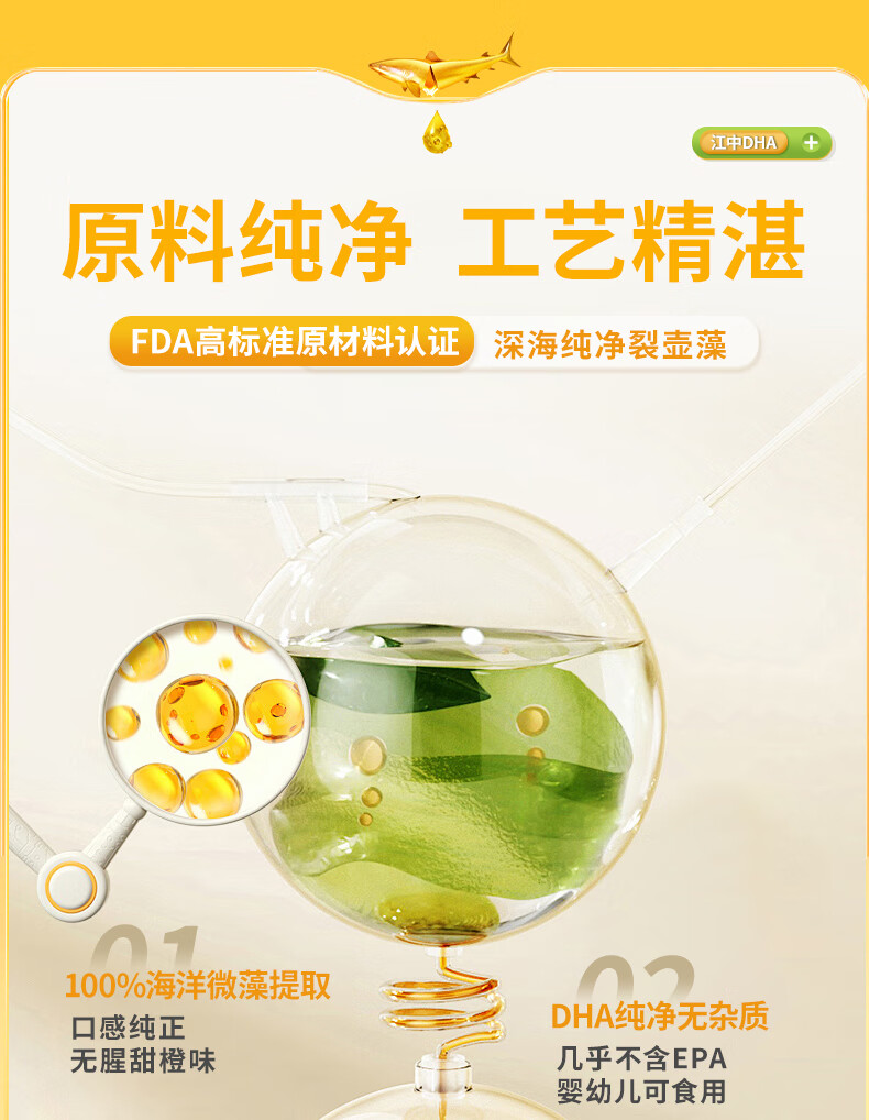 江中dha 3瓶装 藻油核桃油学生鱼油补脑记忆dha专注力青少年儿童孕妇