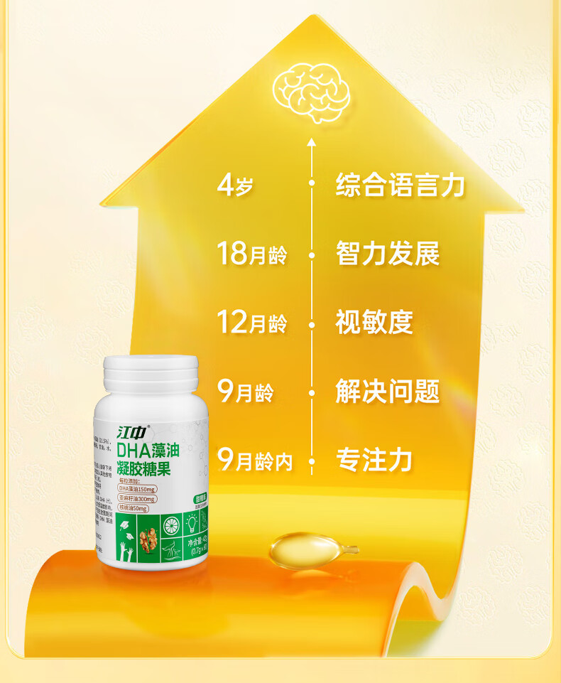 EZZ进口神经酸dha学生补脑专注记忆力脑力素藻油 60粒