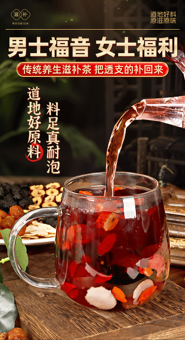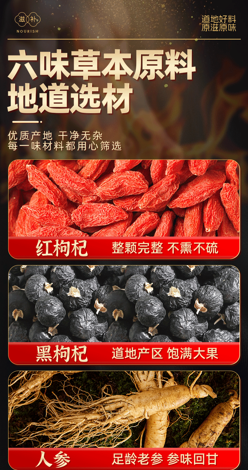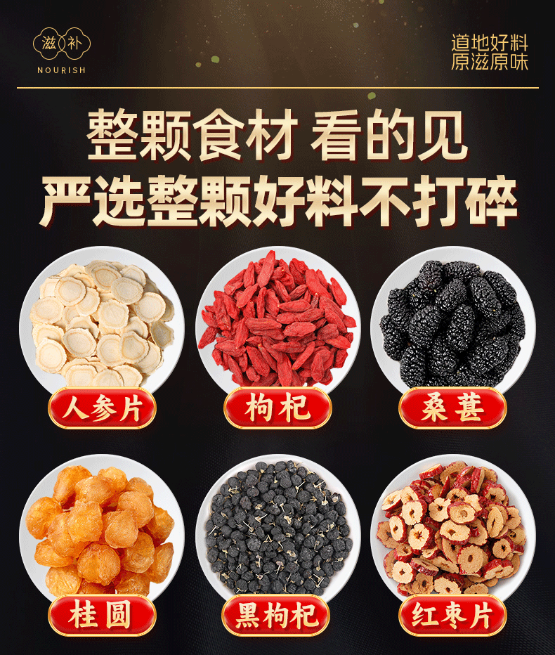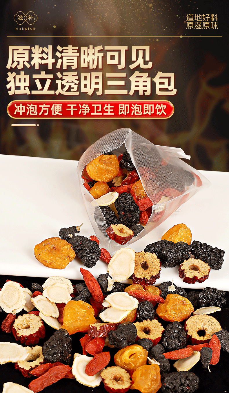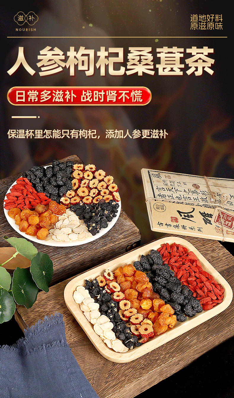 善固益人参桑葚黑枸杞红枸杞养生红枣茶枸杞桑葚黑枸杞红枣桂圆茶男性养生滋补阳壮肾补六宝茶