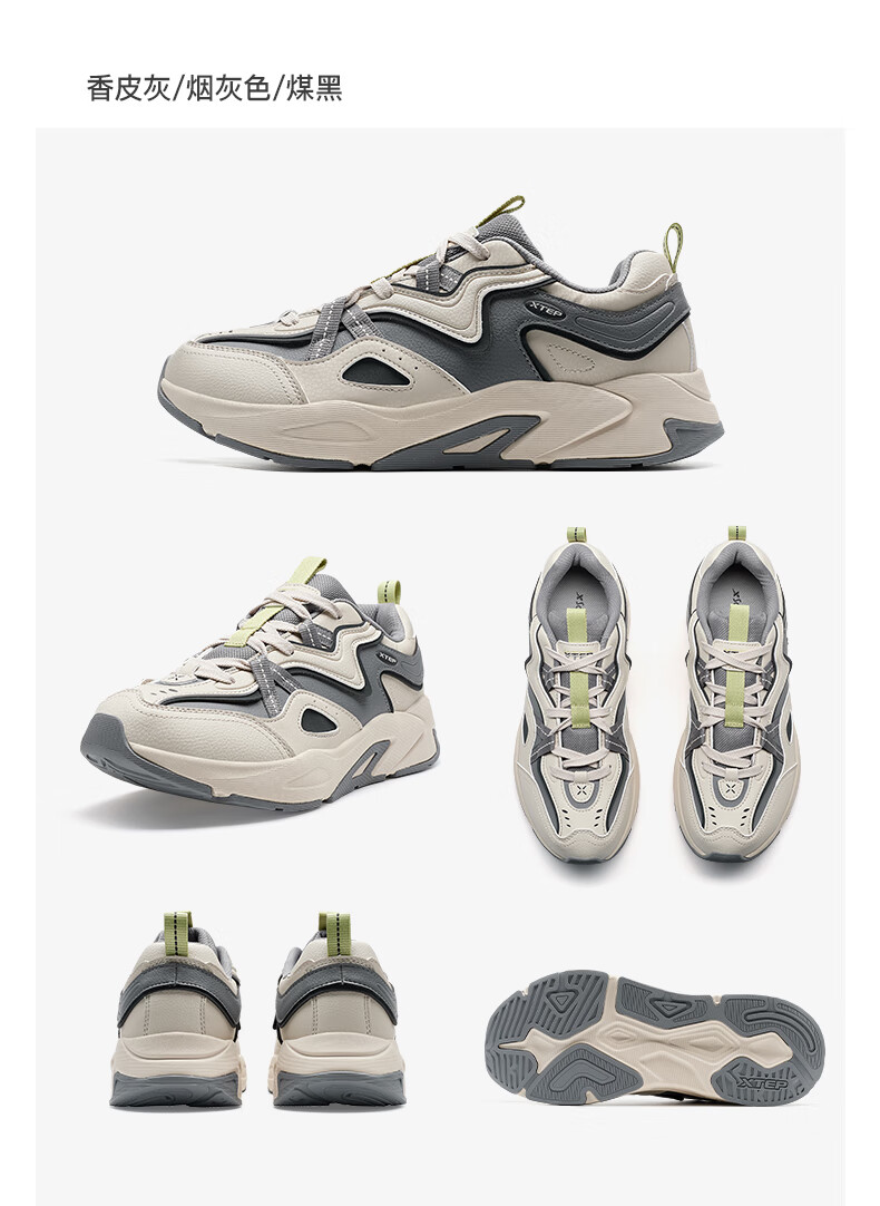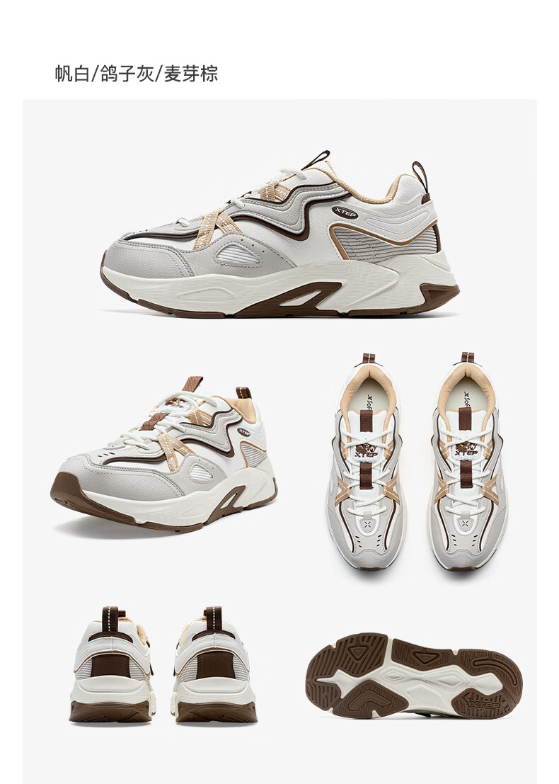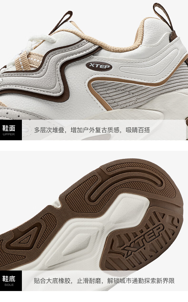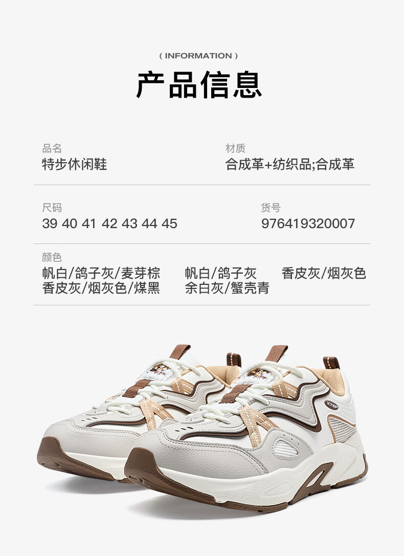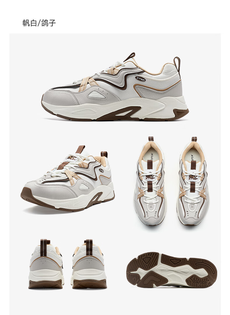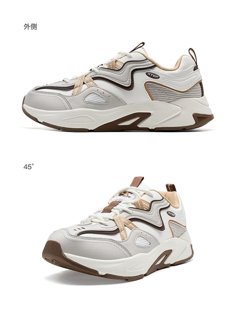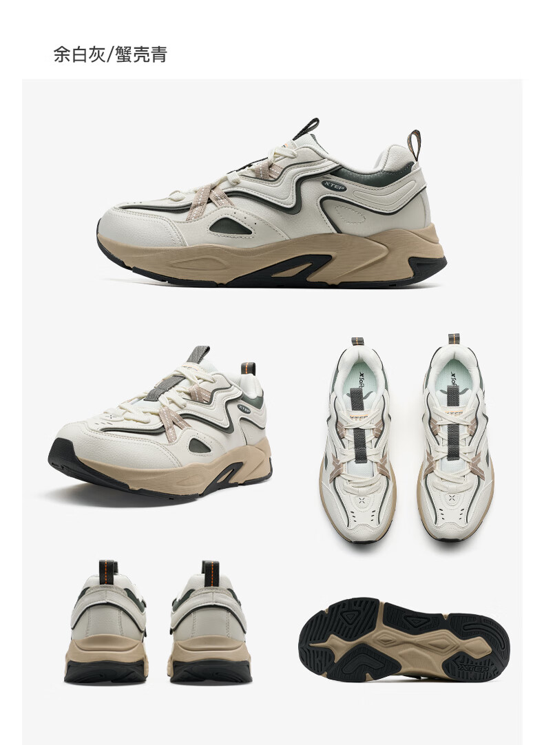 特步男鞋赤壁3.0冬季保暖户外运动休闲鞋老爹鞋 帆白/鸽子灰 42码