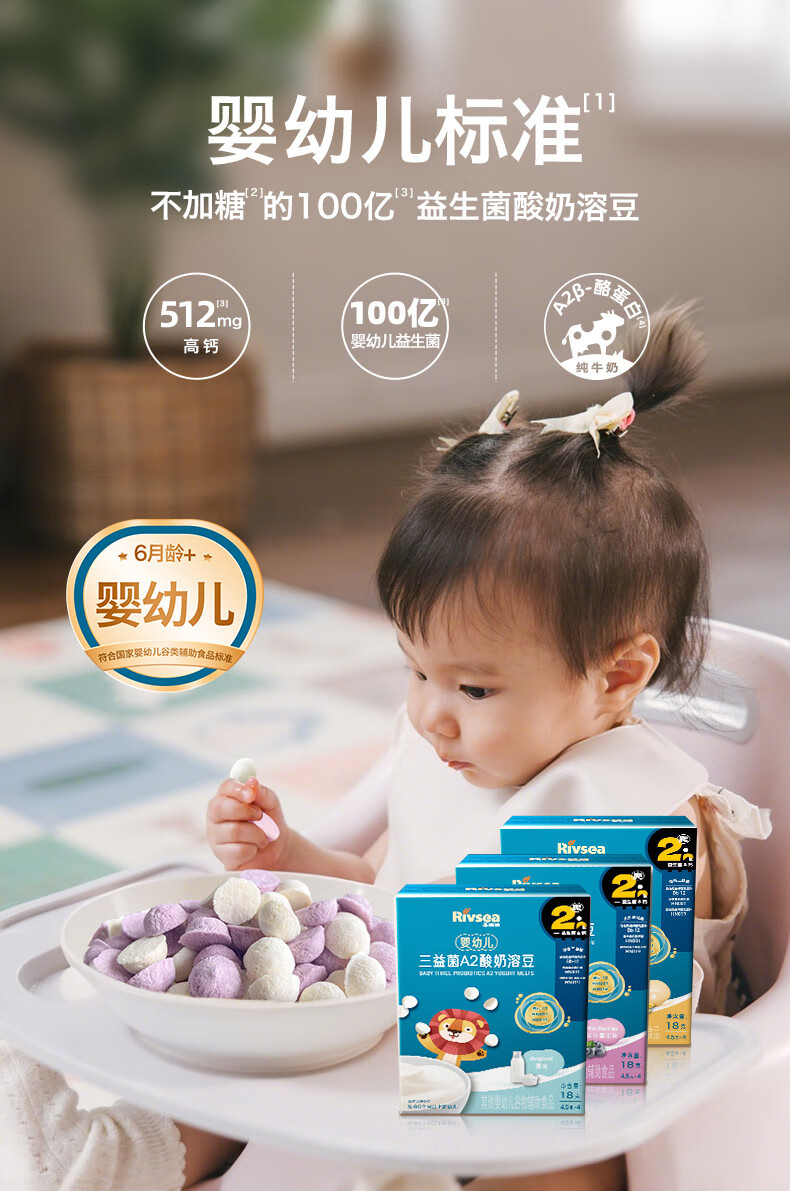 禾泱泱婴幼儿A2益生菌酸奶溶豆 无添加白砂糖 6个月以上婴儿零食溶溶豆 婴幼儿三益菌A2酸奶溶豆香蕉味