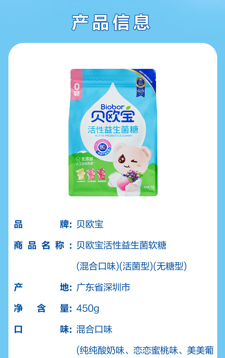 贝欧宝 活性益生菌软糖 450g 无糖 营养糖果 休闲零食 结婚伴手礼 喜糖