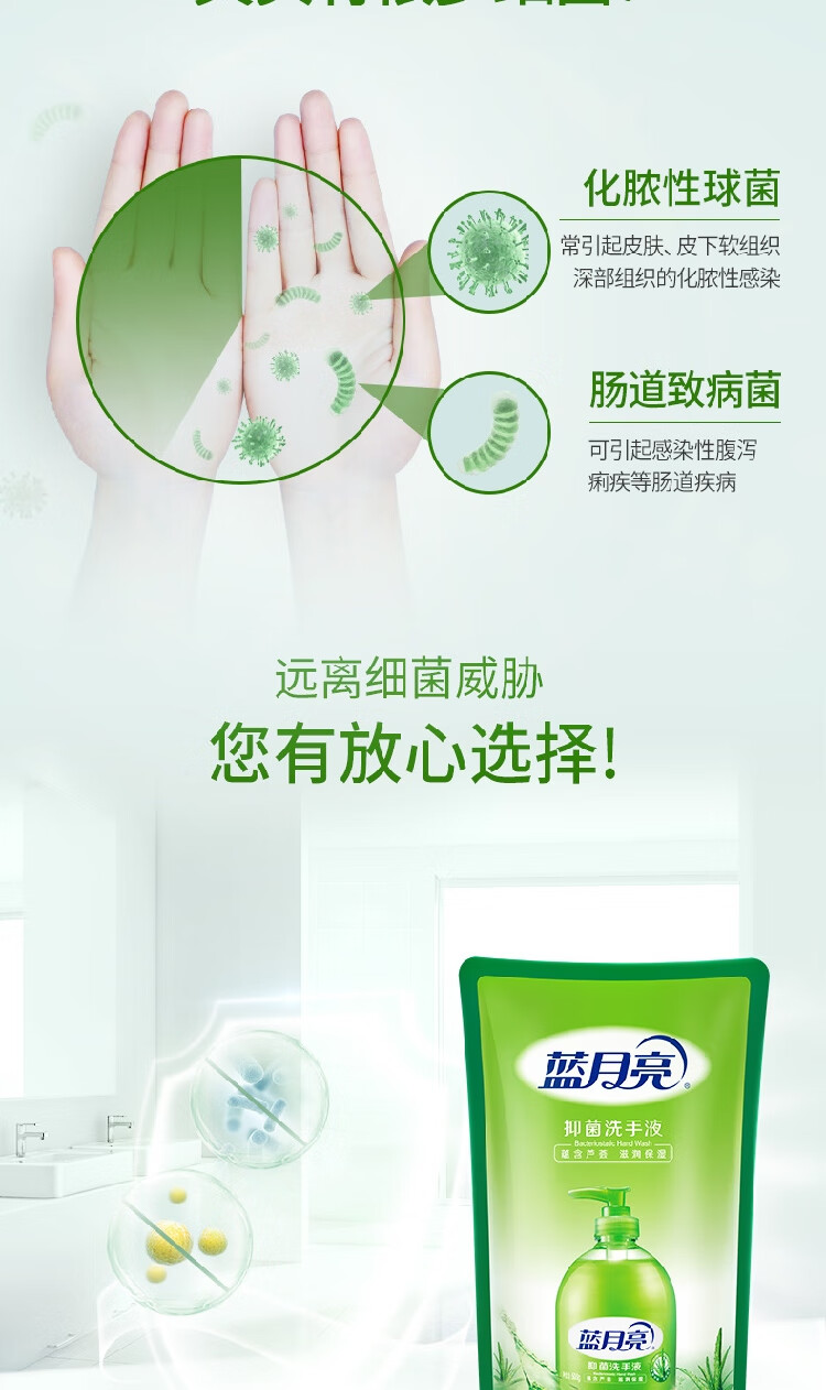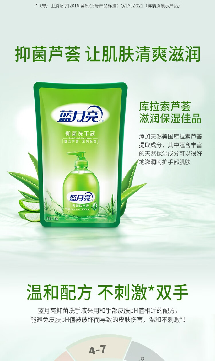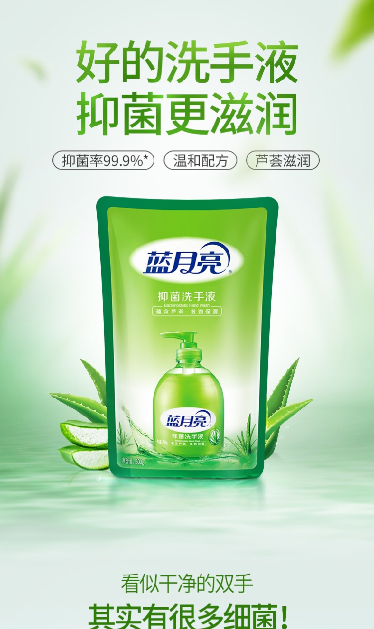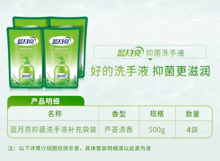 蓝月亮 芦荟抑菌洗手液袋装补充装500g*4袋 原液补充装 家庭学生适用