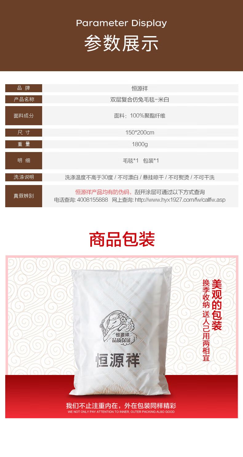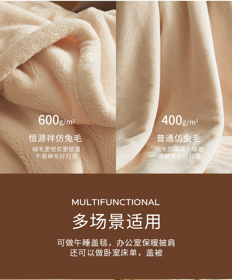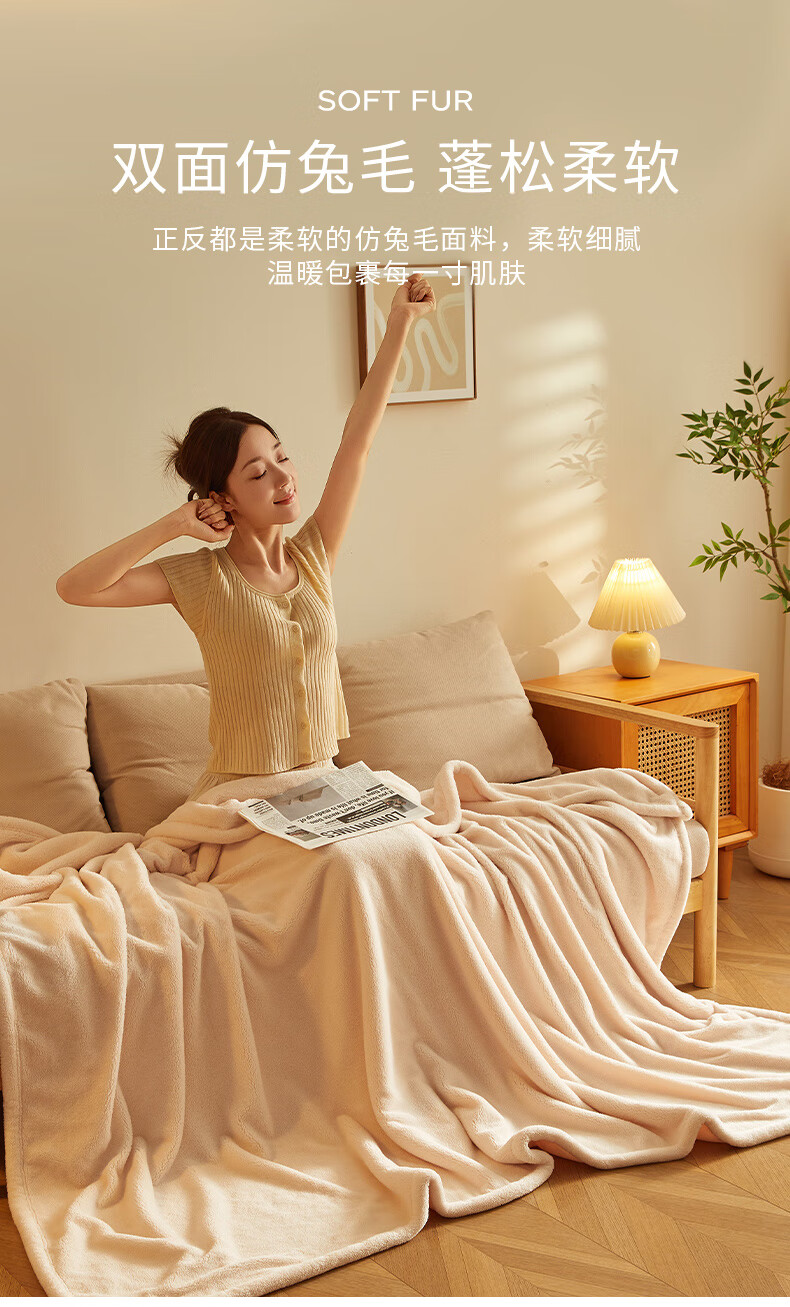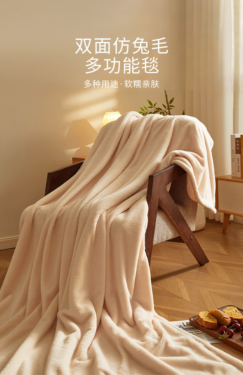 恒源祥双层复合仿兔毛毯冬季加厚盖毯沙发毯子午睡毯办公室珊瑚绒宿舍 双层复合仿兔毛毯 150*200cm