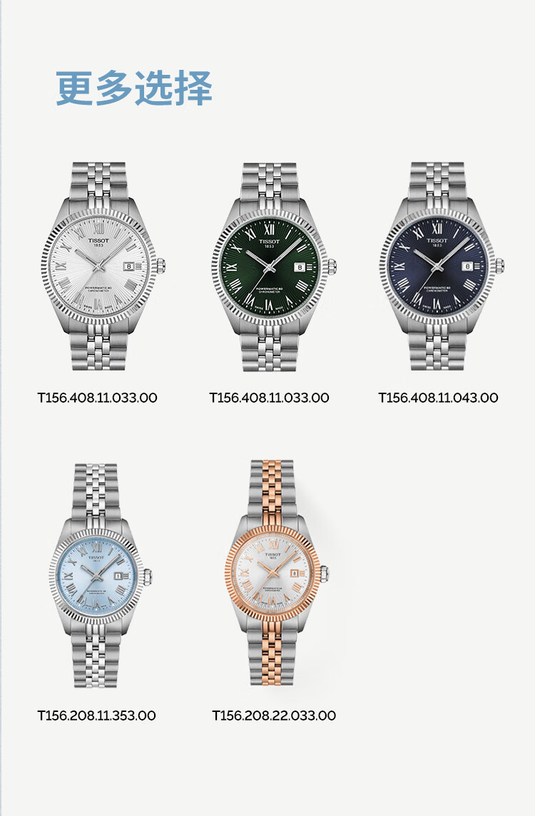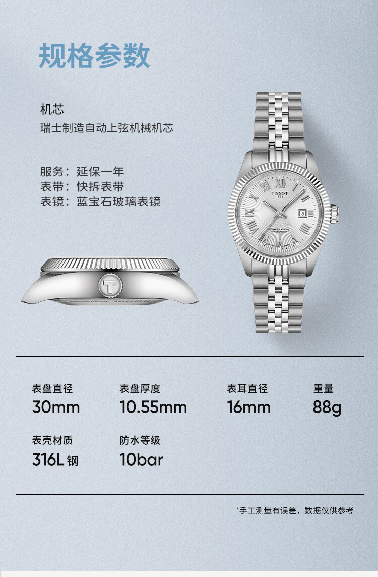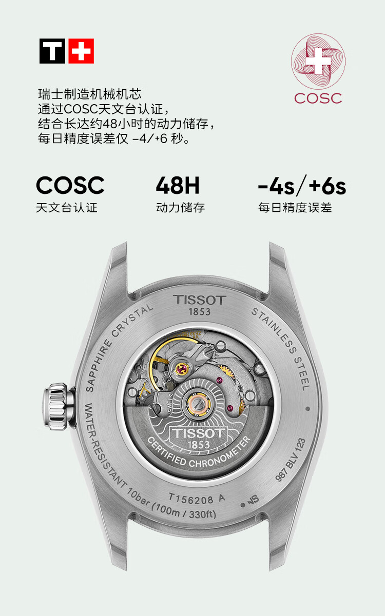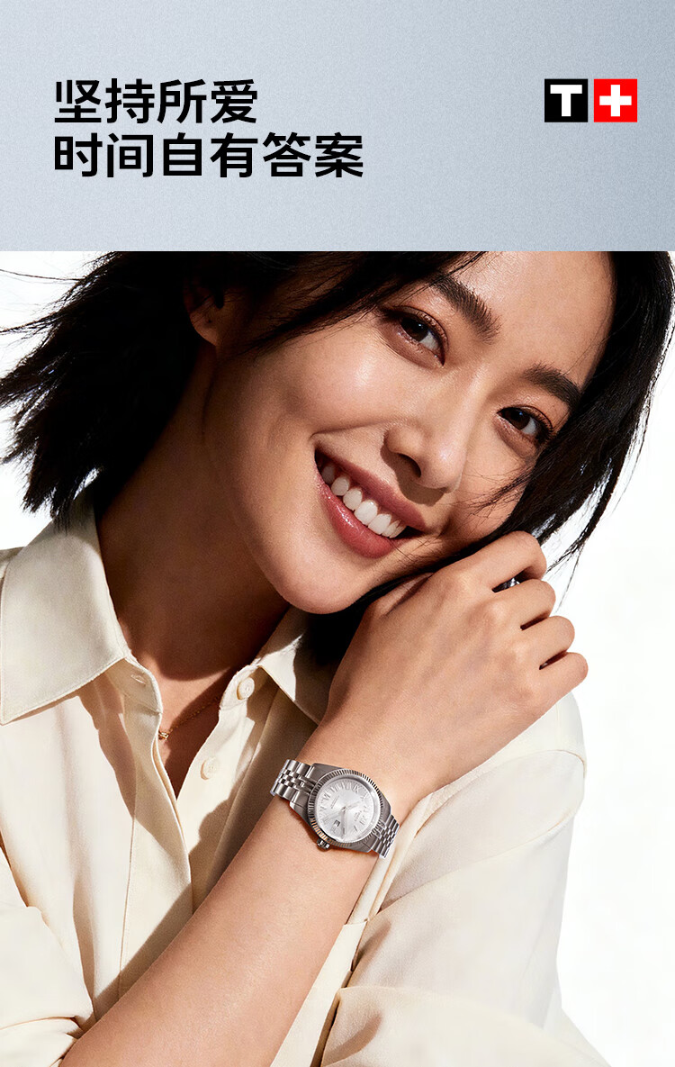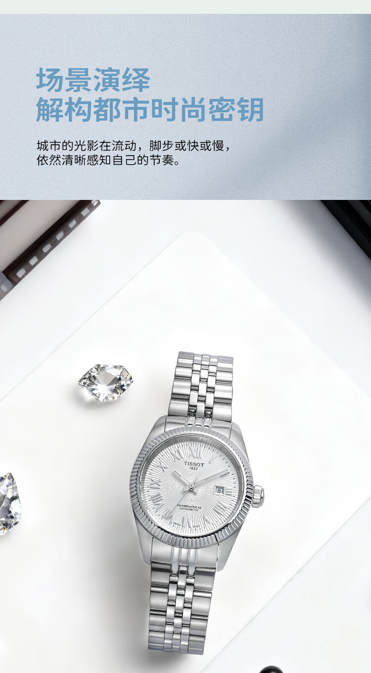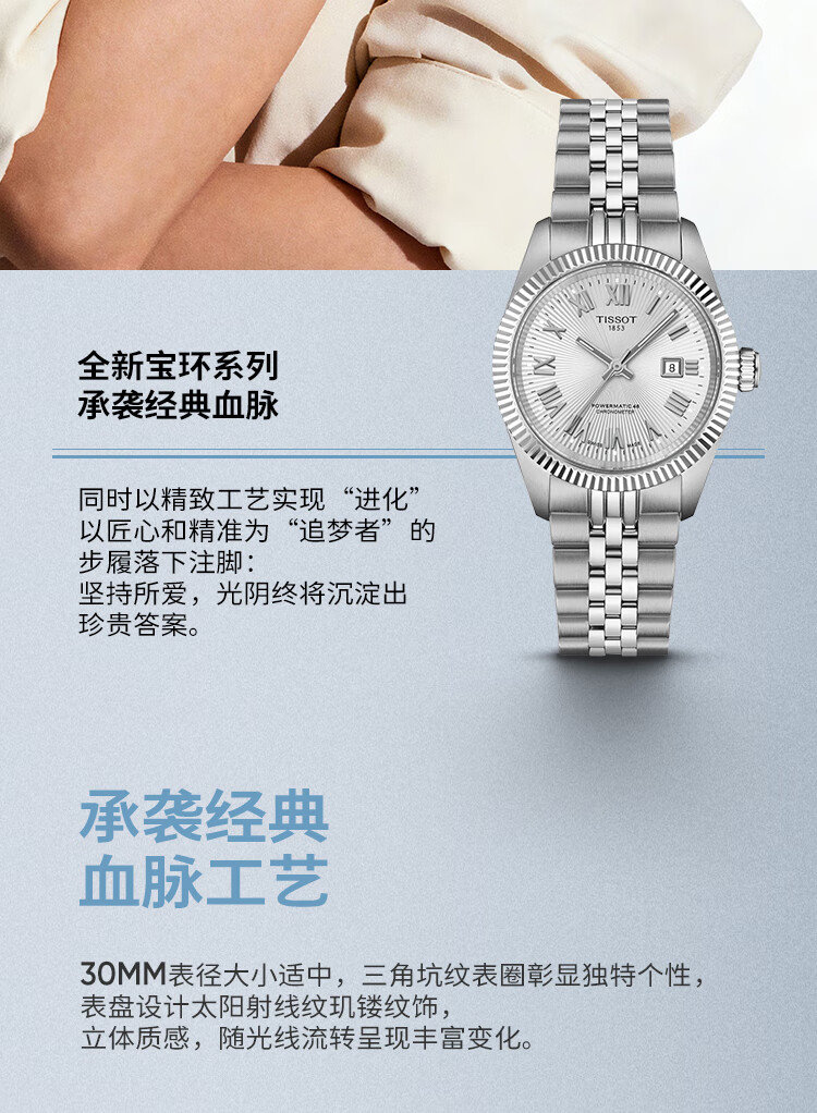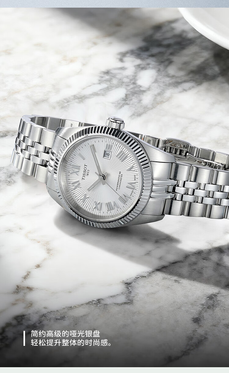 天梭(TISSOT)手表 全新宝环系列女表 天文台认证款瑞士机械女士钢带腕表商务表