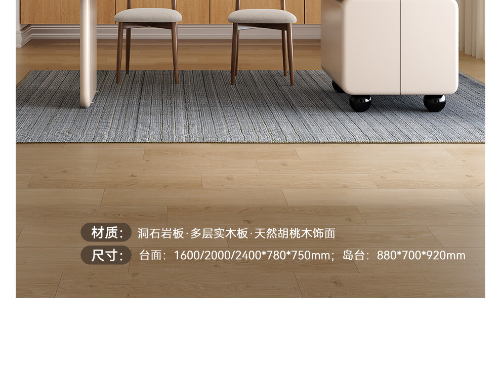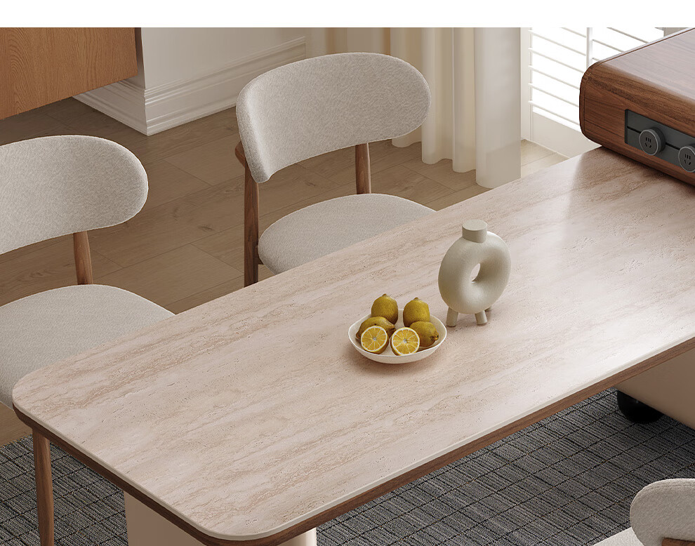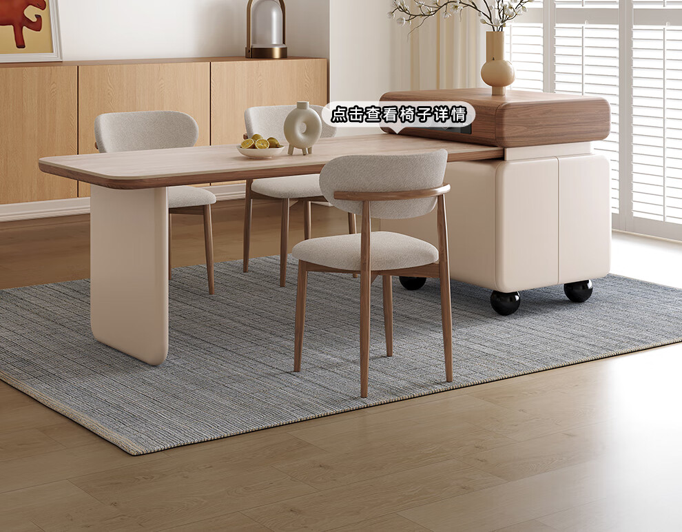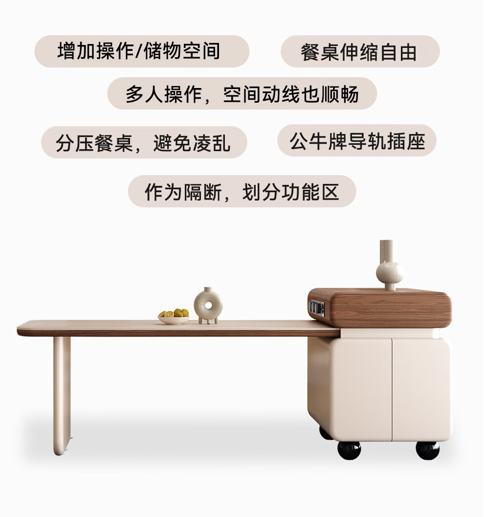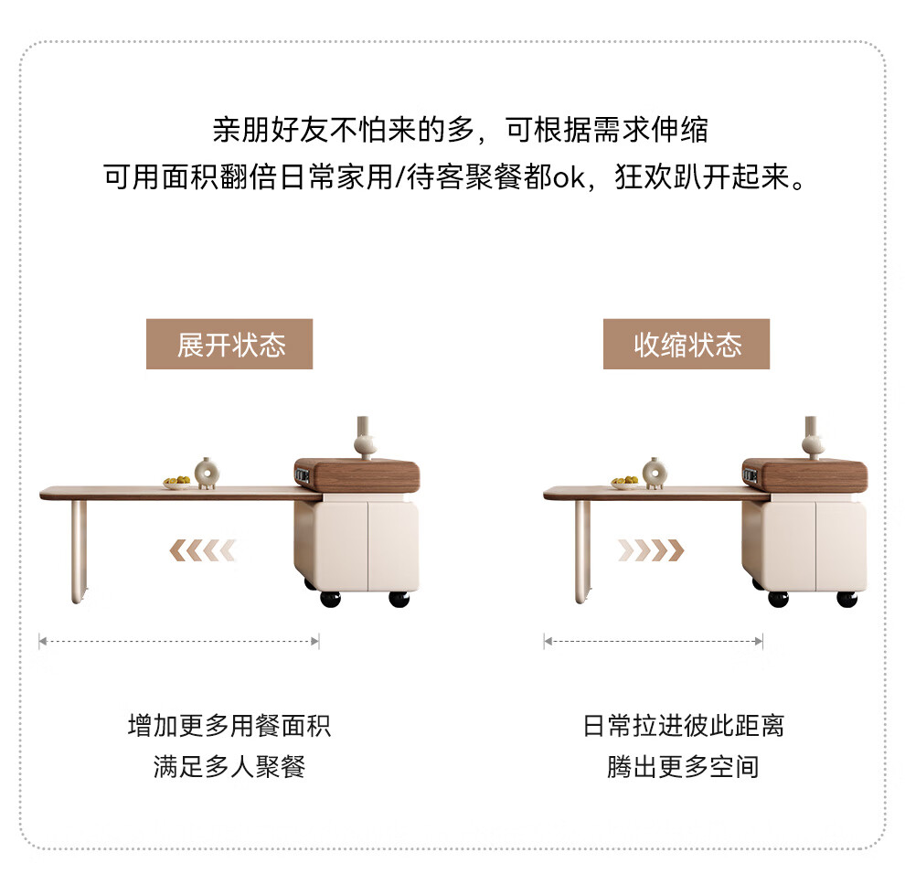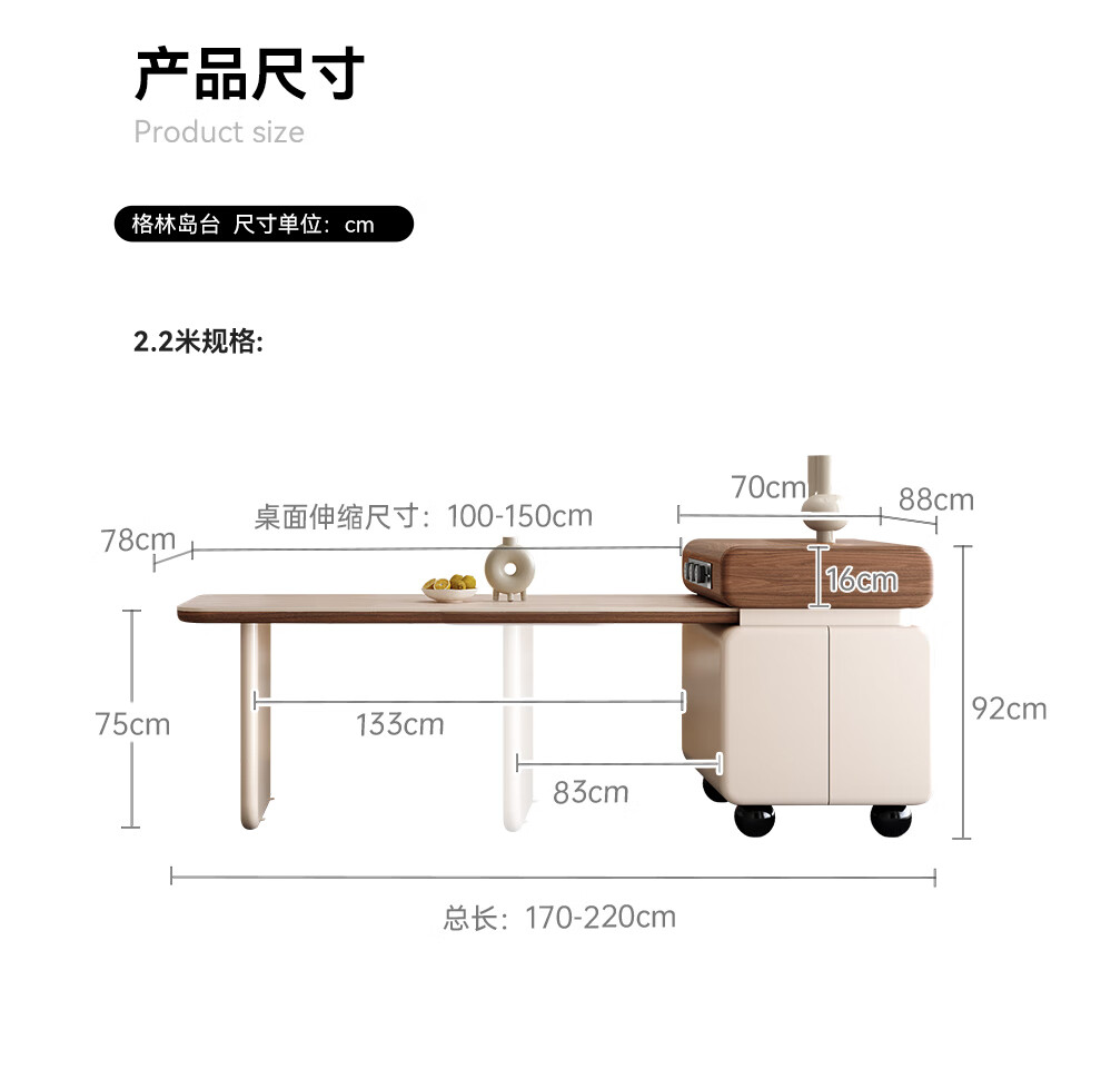 凡创佳品洞石岩板岛台餐桌一体可伸缩2025新款中古奶油风轻奢高级感饭桌 2.2m伸缩岛台餐桌(总长1.7-2.2m)