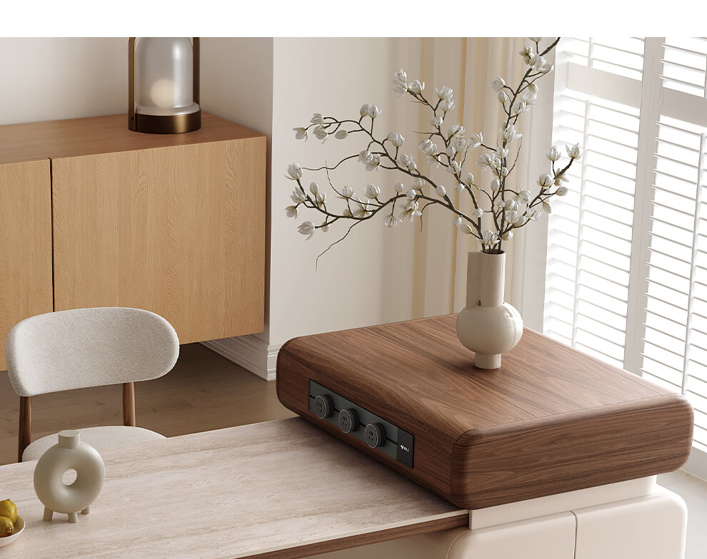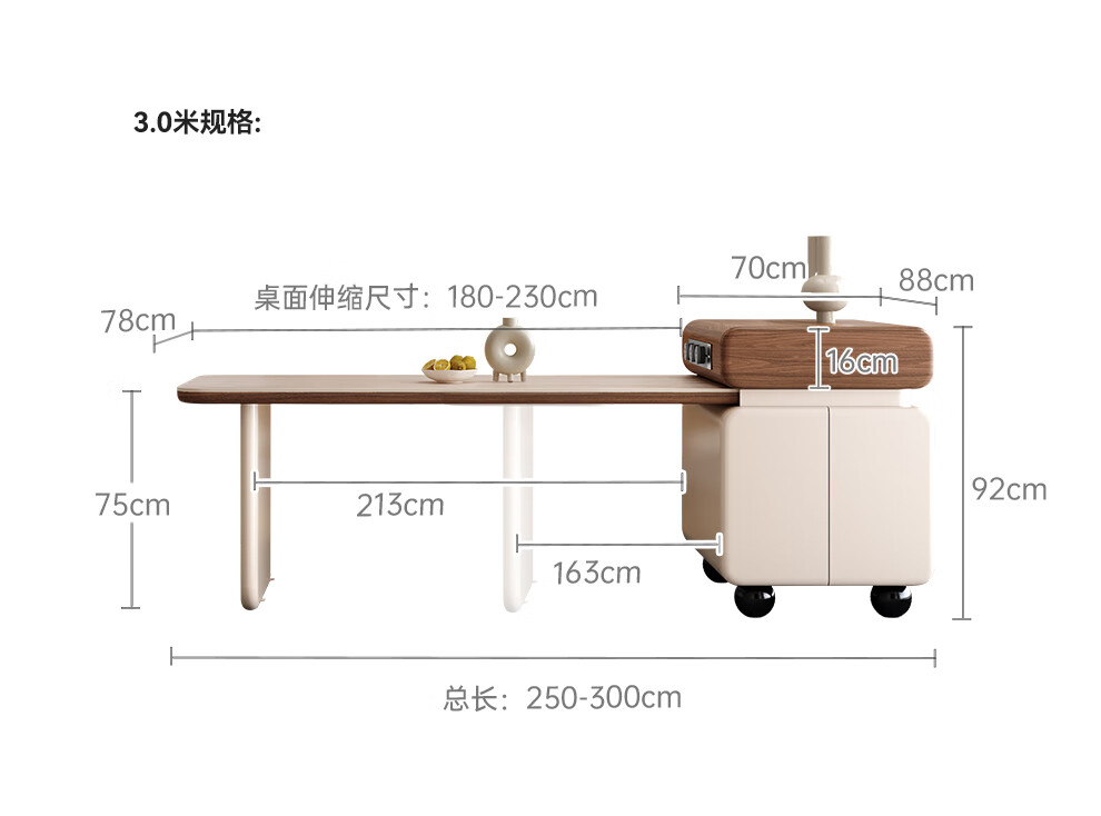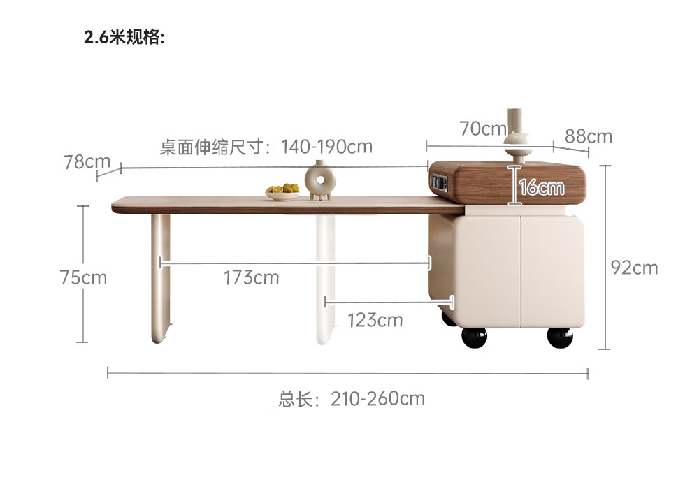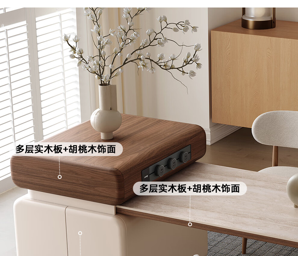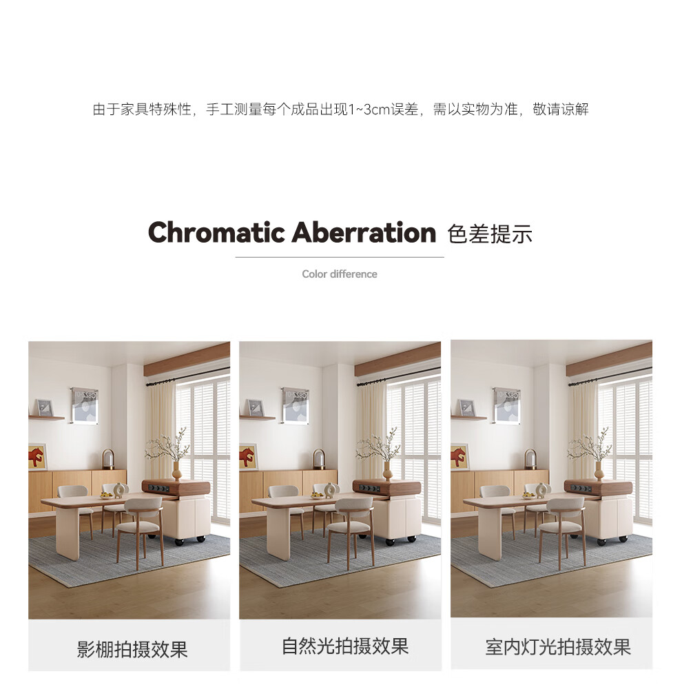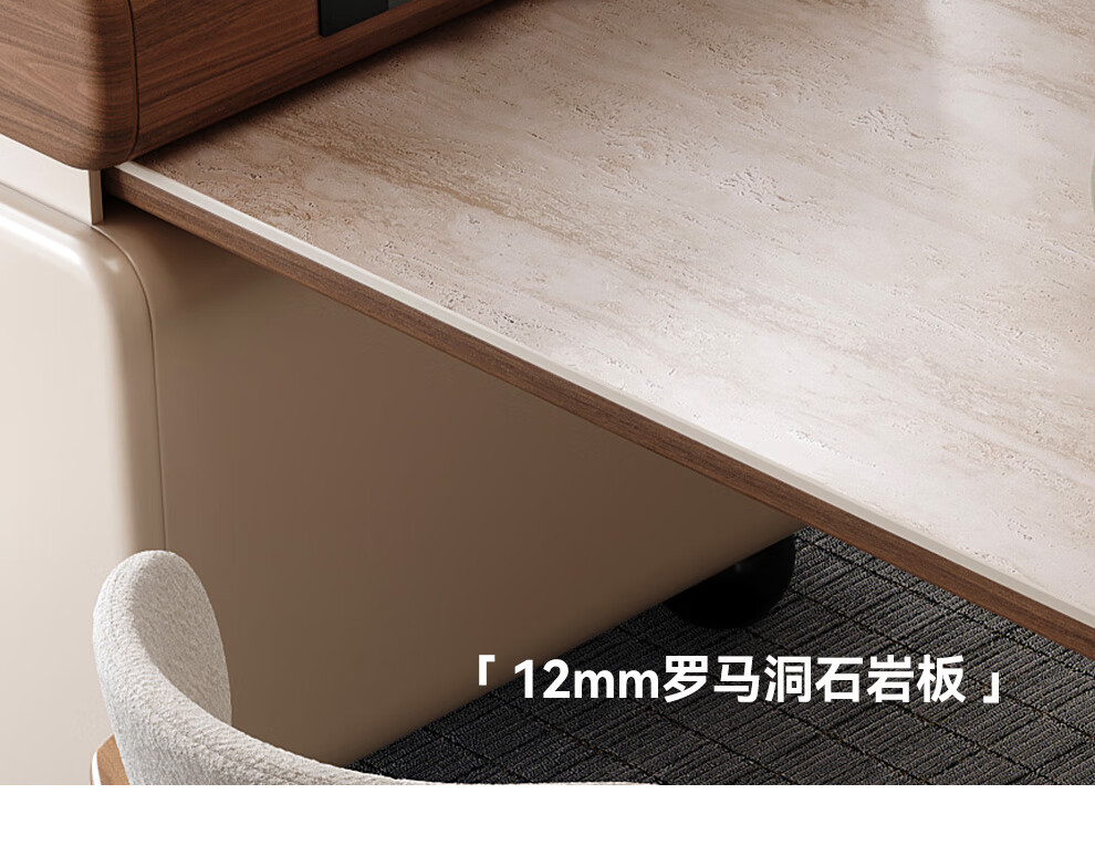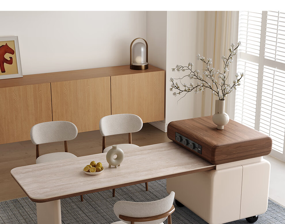凡创佳品洞石岩板岛台餐桌一体可伸缩2025新款中古奶油风轻奢高级感饭桌 2.2m伸缩岛台餐桌(总长1.7-2.2m)