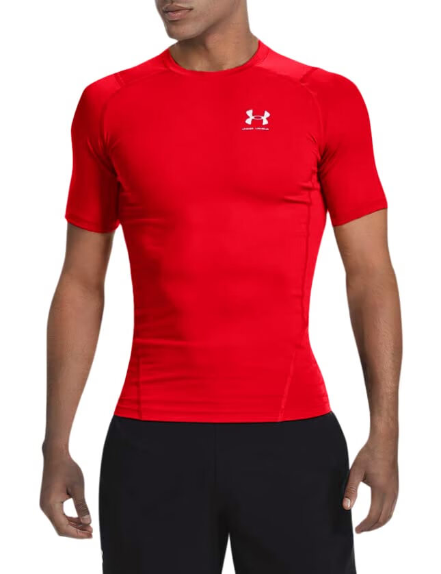 UNDER ARMOUR 男士HeatGear压缩短袖T恤 运动训练健身四季 Red (600)/White Medium