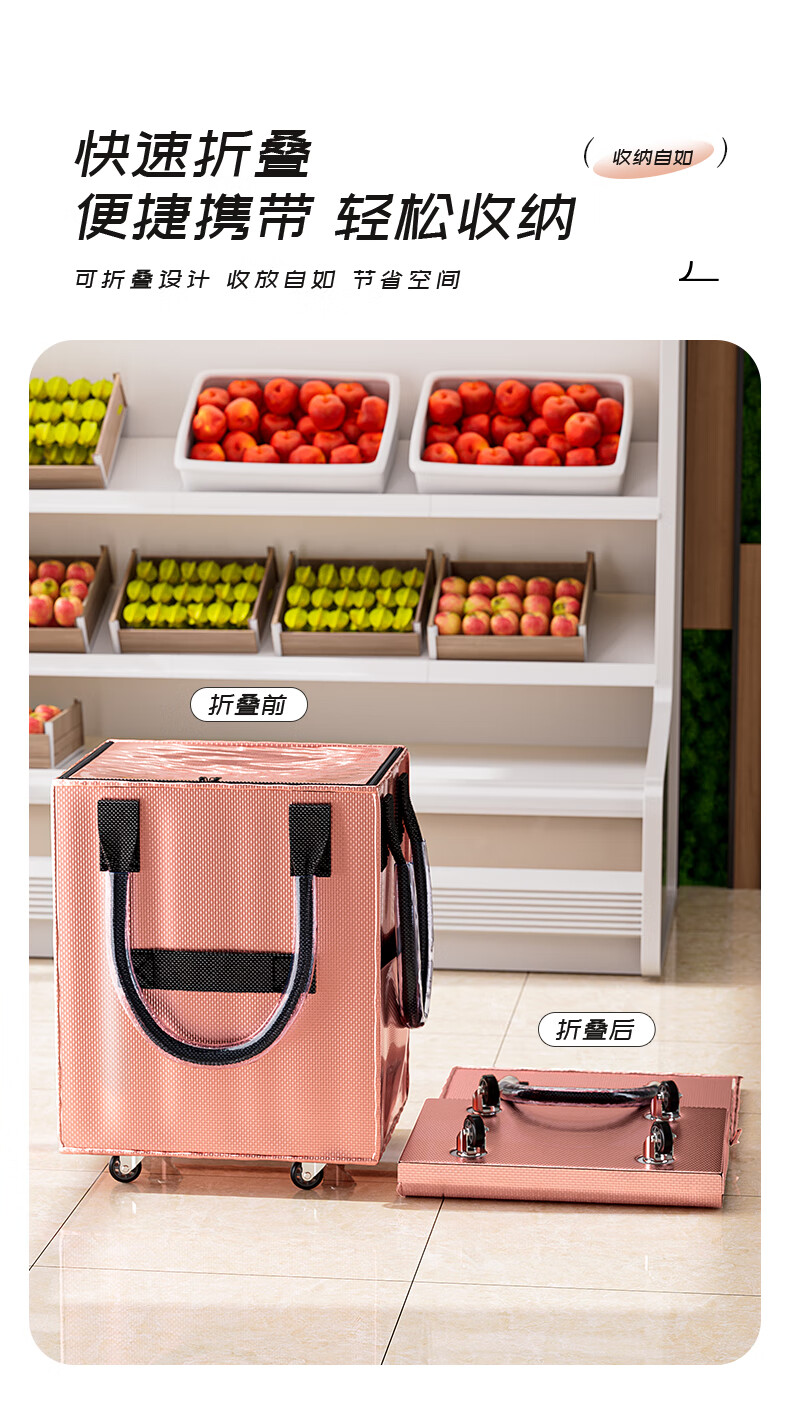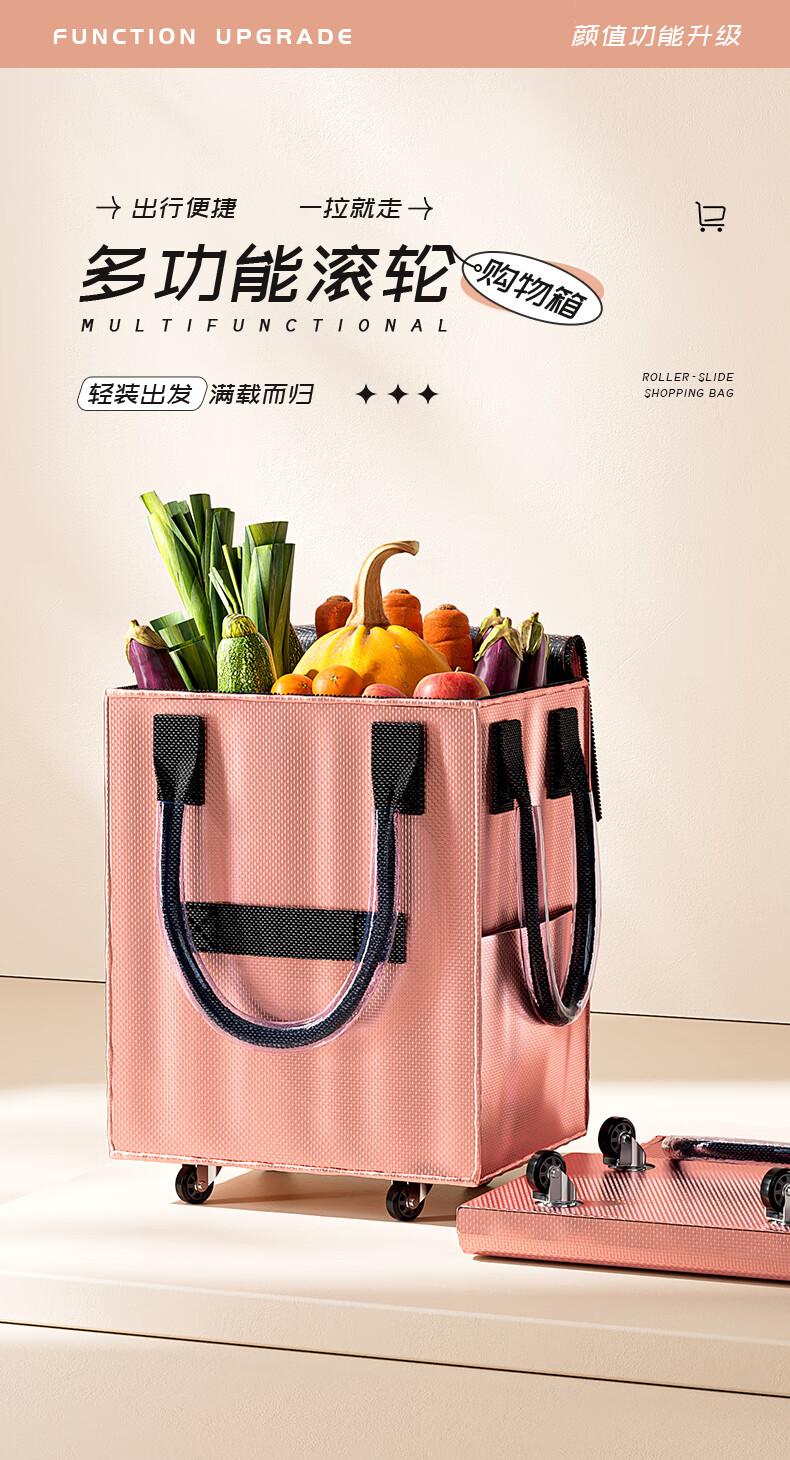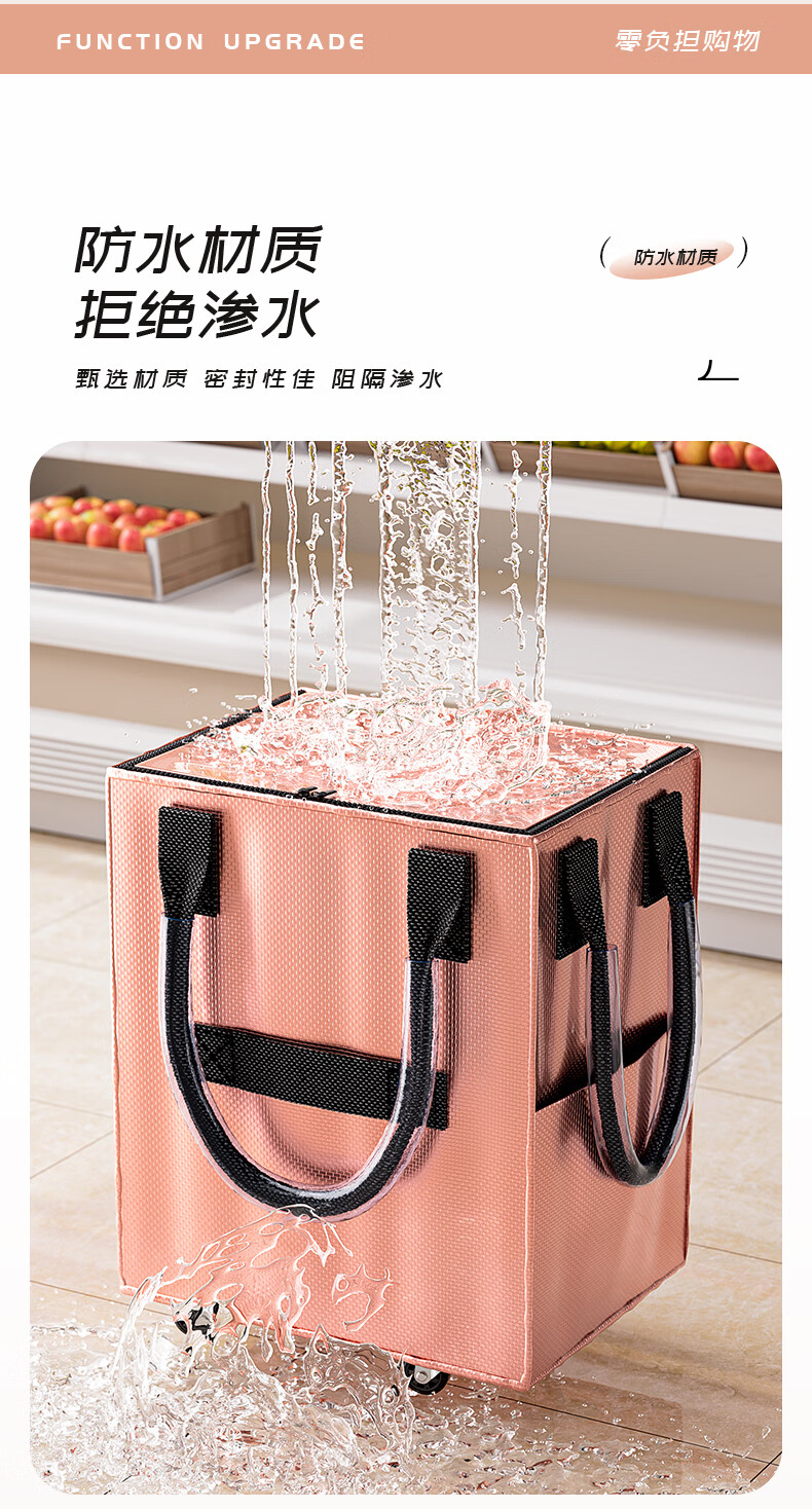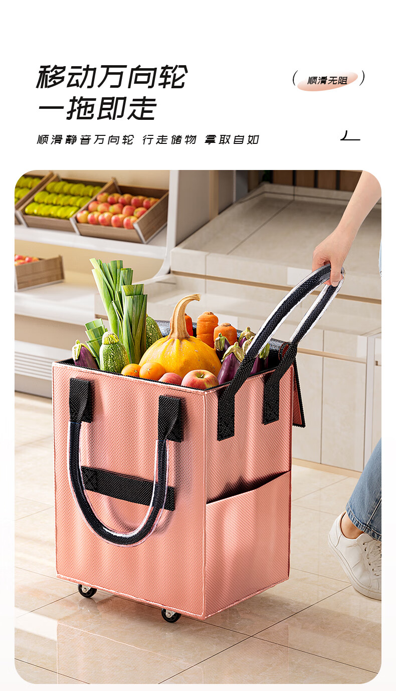 邦尼美家买菜车小拉车外出便携式手提购物收纳袋户外出差可折叠带轮行李箱 玫瑰金-带盖/提手【防污防水】 放心购(滚轮设计 轻松购物)