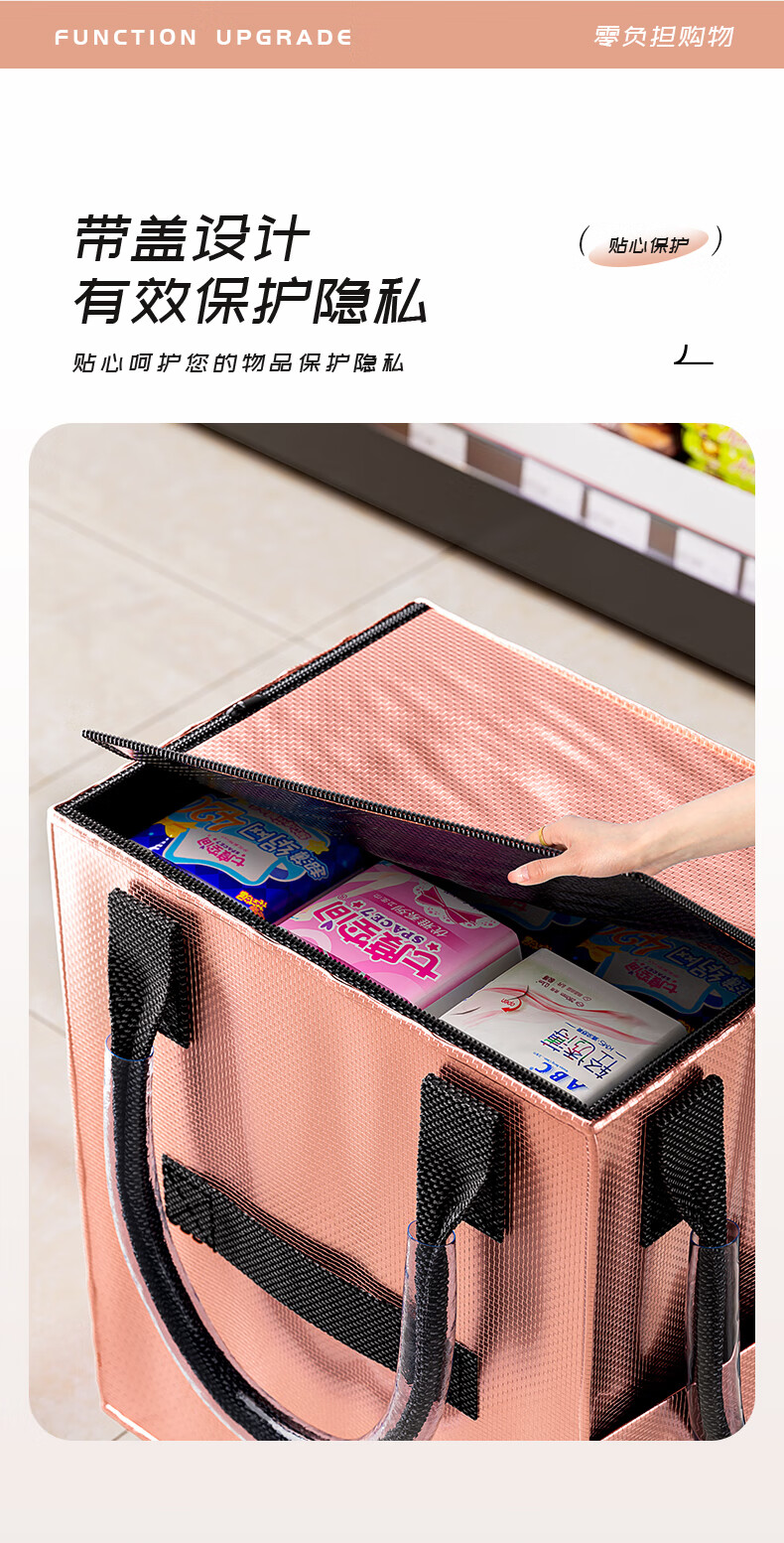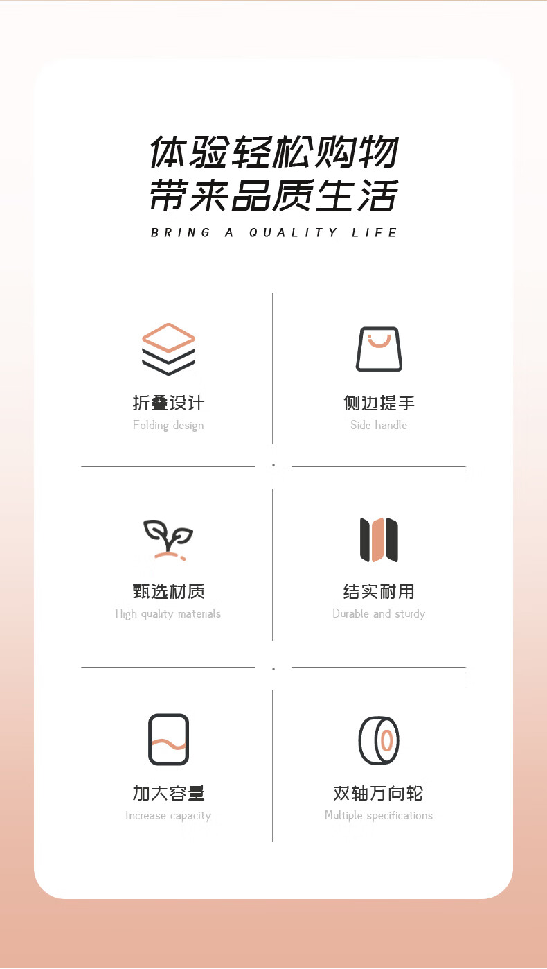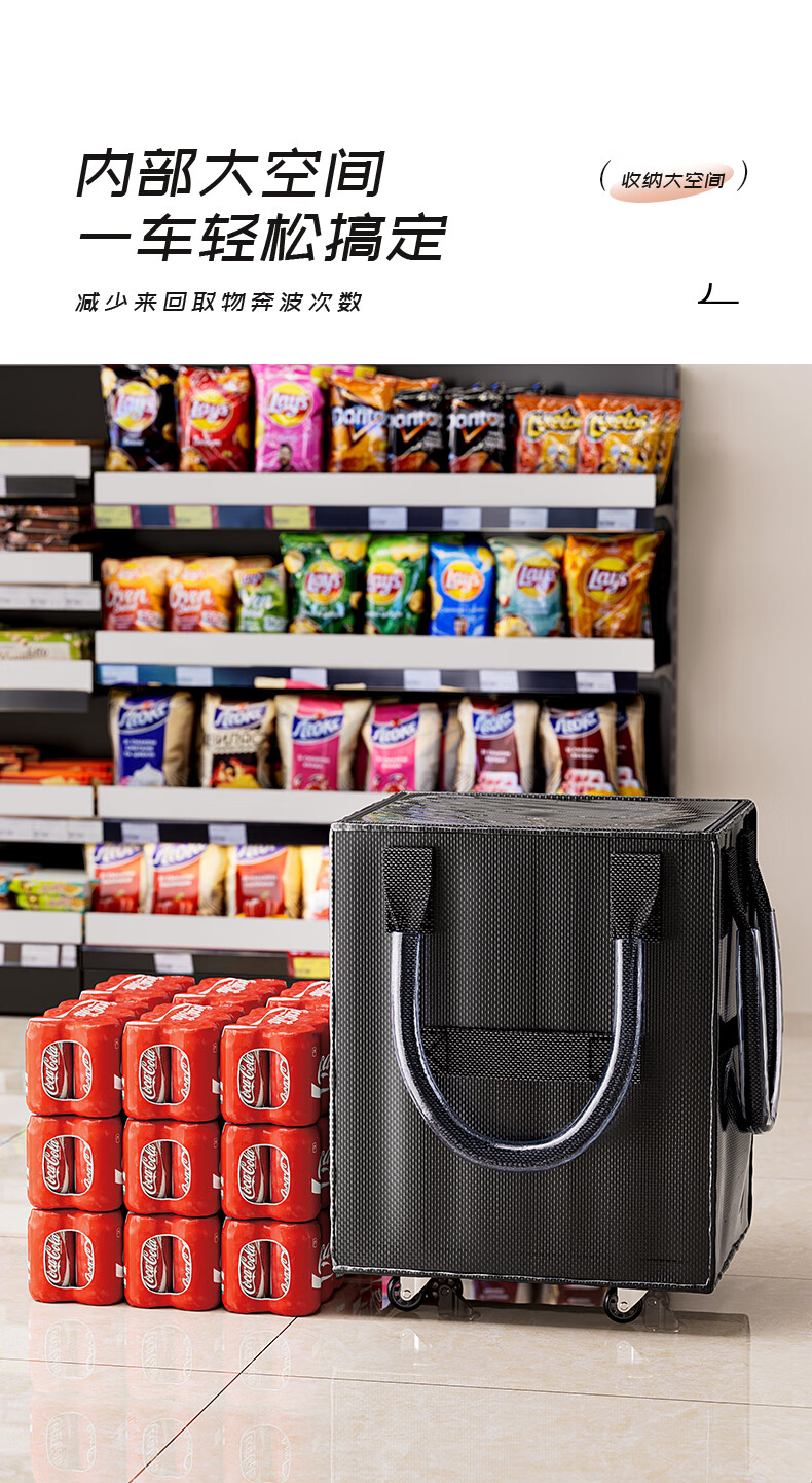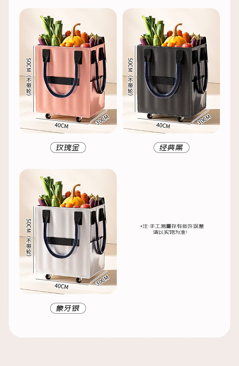 邦尼美家买菜车小拉车外出便携式手提购物收纳袋户外出差可折叠带轮行李箱 玫瑰金-带盖/提手【防污防水】 放心购(滚轮设计 轻松购物)
