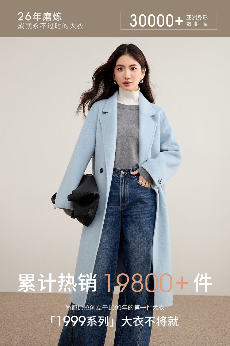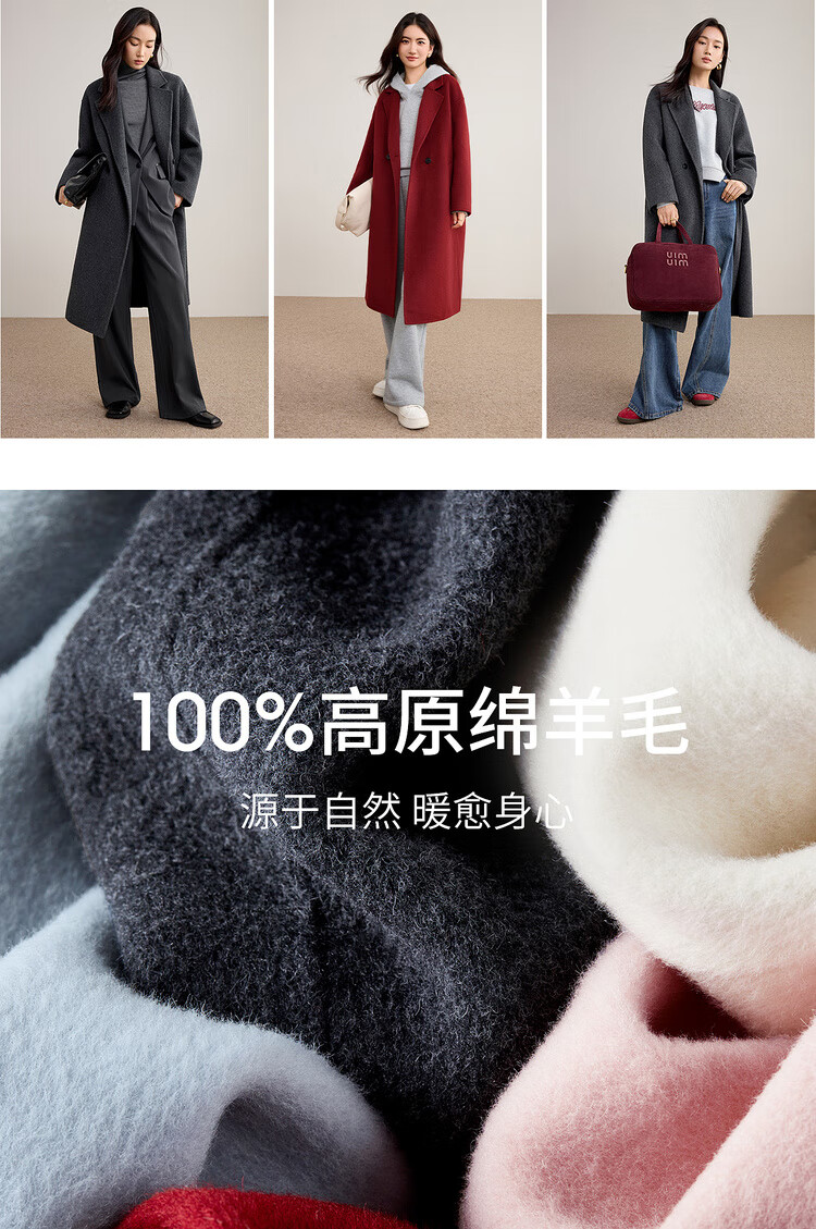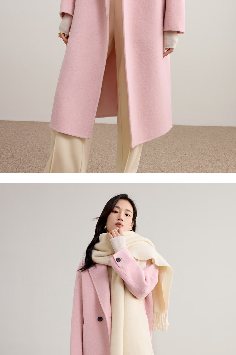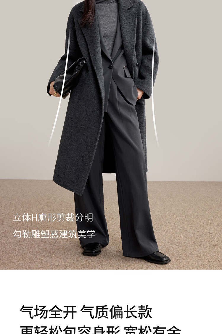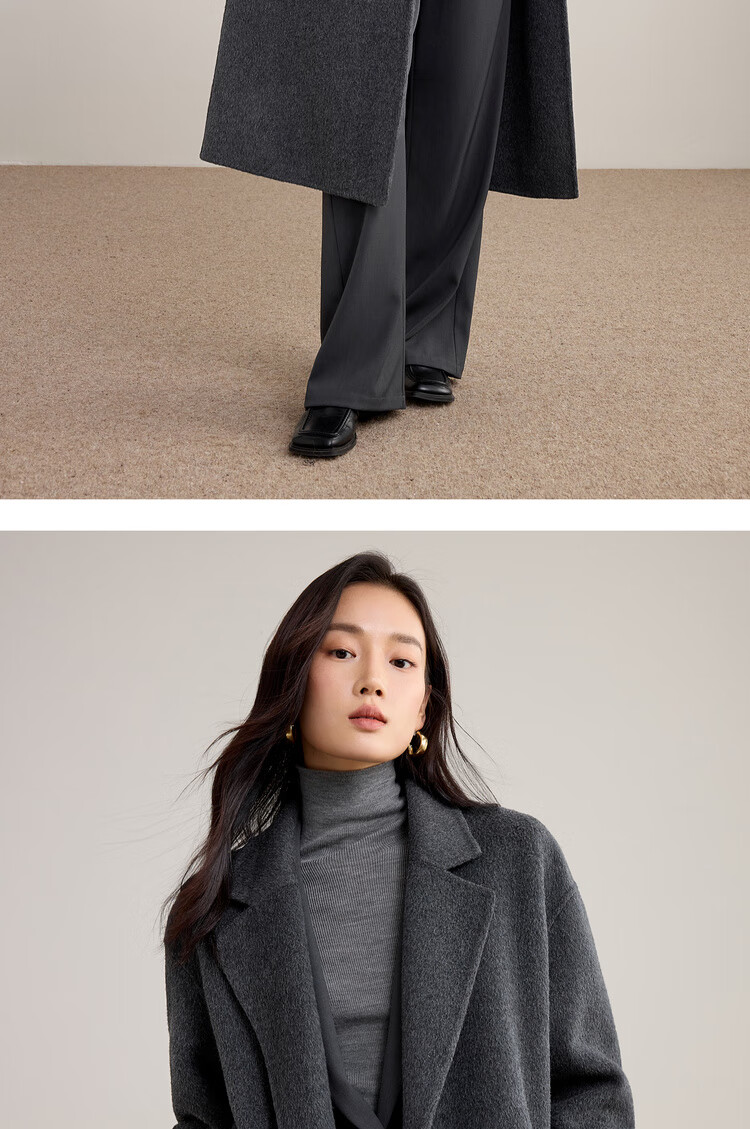 尚都比拉纯羊毛保暖毛呢大衣女冬季立裁西装领中长款外套小个子通勤大衣